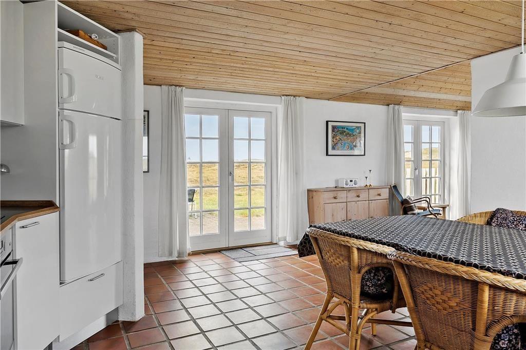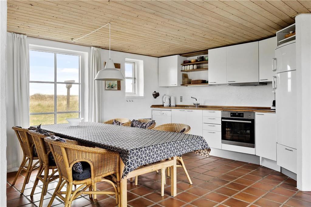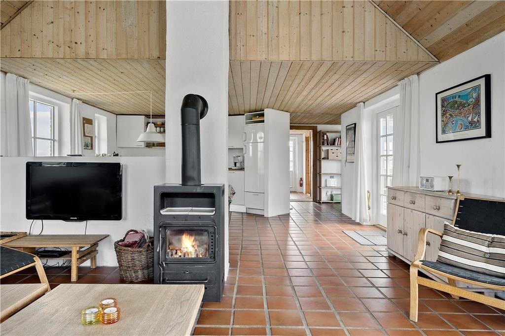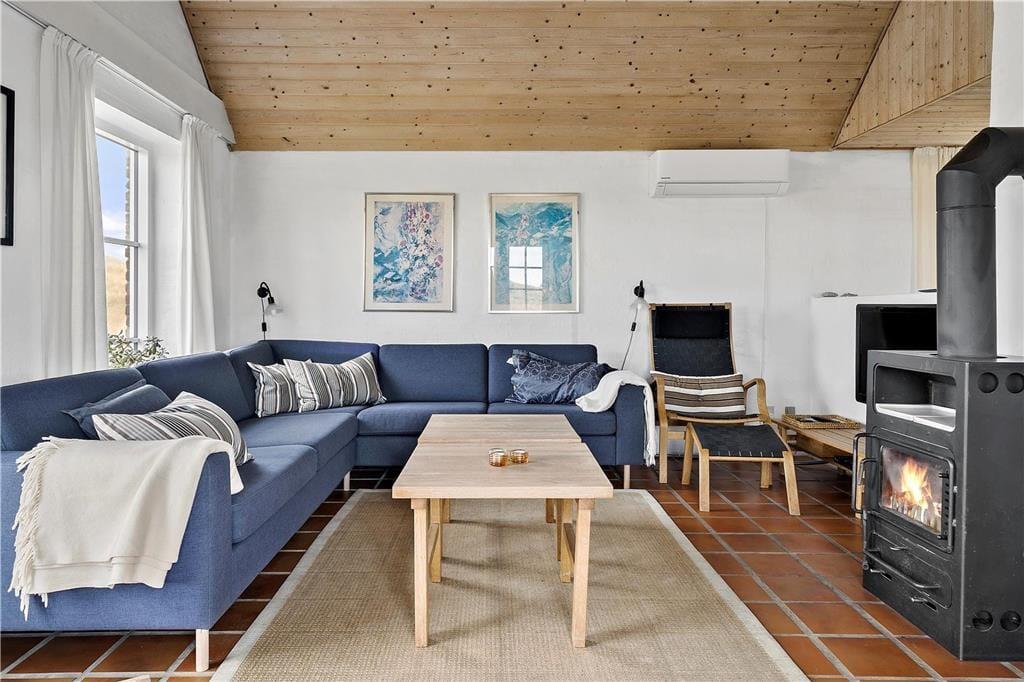 Sæt jer i den store stue og nyd den smukke udsigt til lyng, klitter og åben himmel, her kan I nyde det smukke landskab og se den smukkeste solnedgang. Det store køkken kalder på fælles madlavning for hele familien, og når det er tid til at lade maden simre kan I slå jer ned foran den smukke brændeovn og nyde den herlige varme og den hyggelige knitrende lyd der spreder sig i rummet. Trænger I til total afslapning kan I tænde op for den dejlige spa og nyde dens varme beroligende bobler, derefter kan I sætter jer ind i den gode sauna og nyde varmen.
