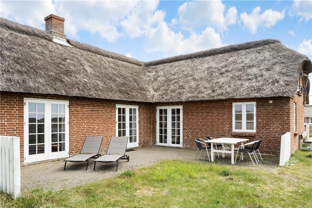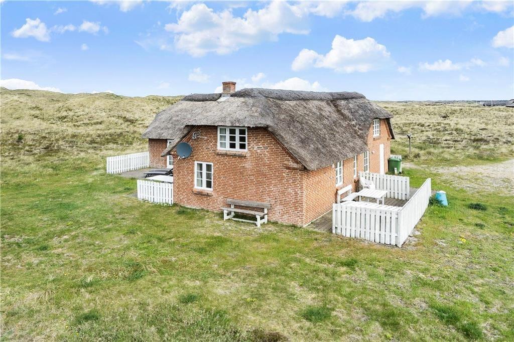 På første række midt i klitterne ligger dette skønne feriehus, og med den skønne og store naturgrund er der mange muligheder for hygge for hele familien, her kan man være sig selv og slappe af sammen med hele familien. På grunden er der opsat gynger og sandkasse til stor glæde for børnene, imens kan I slå jer ned på den store terrasse, eller tag aftensmaden med udenfor og lav den på den gode grill, og nyd de lange sommeraftener og se solen gå ned bag klitterne mod vest, og himlen der skifter farve fra klar blå til et væld af orangerøde nuancer.