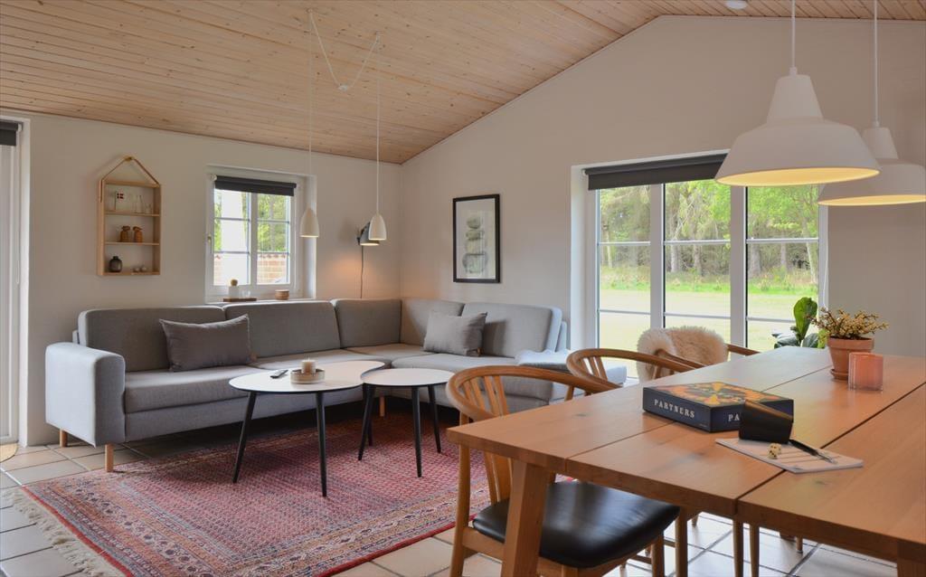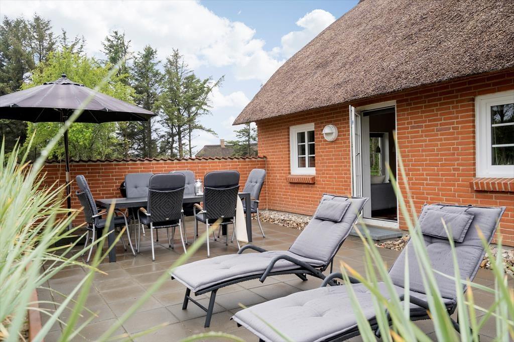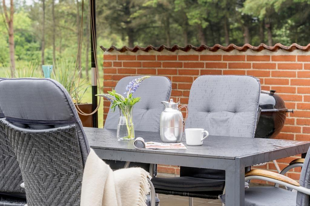 Feriehuset ligger på en store og delvist lukkede naturgrund, her kan I nyde tilværelsen i fred og ro. Den store grund indbyder til mange timer udendørs for hele familien, tag en omgang tag fat eller spil en omgang fodbold, og når I trænger til et velfortjent hvil så sæt jer på den delvist lukkede terrasse mod syd og nyd solens stråler i mange timer, her kan I sidde ved de lækre havemøbler eller solbade på de gode liggestole.