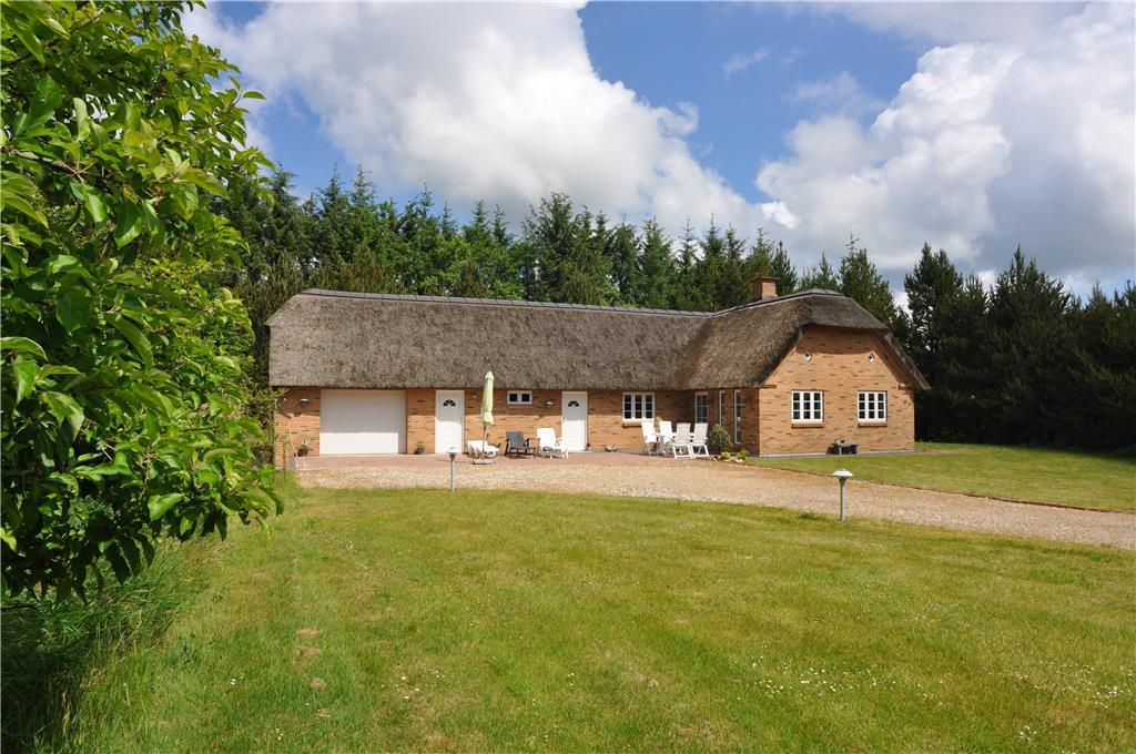 Huset ligger på en stor naturgrund, men bare rolig I finder også en stor græsplæne rundt omkring huset, her kan I boltre jer, om det så er med en fodboldkamp eller en omgang tag fat for hele familien. Sæt jer udenfor på den sydvendte terrasse og nyd solens stråler i mange timer, her kan I nyde et lækkert glas vin eller tage aftensmaden med udenfor og spise den under åben himmel. Slæng jer på de dejlige liggestole og nyd den dejlige sol der blidt varmer jeres hud alt imens I får en smuk sommerlig glød.