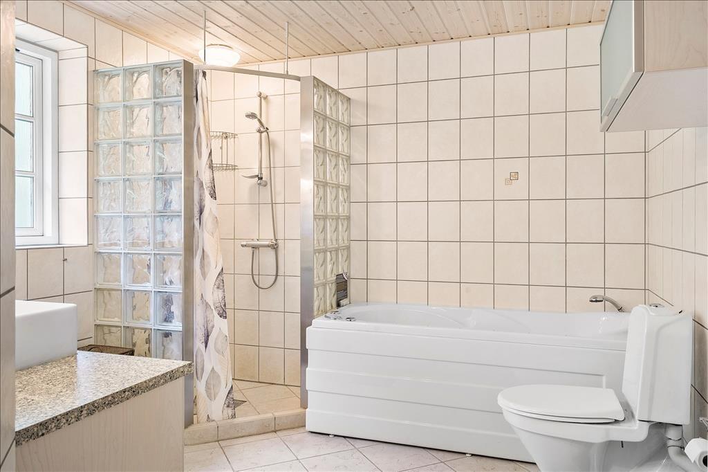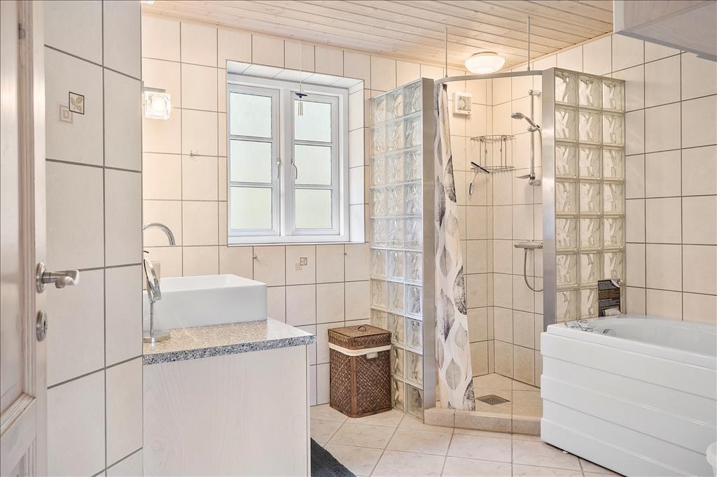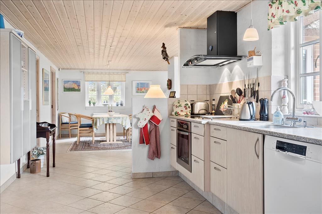 Lyst og røde nuancer er hvad der kendetegner dette hus, her får I et smukt lysindfald der blander sig med de røde nuancer og skaber en fantastisk feriestemning, her kan I koble helt fra og komme helt ned i gear efter livet i overhalingsbanen, nyd tiden med hinanden. Lav mad i det store og lyse køkken uden at være for langt væk fra familien, køkkenet ligger nemlig i åben forbindelse med både spiseafdeling og opholdsstue, så her kan I snakke på kryds og tværs af rum og aktiviteter. Tag en afslappende stund i den lækre spa og lad roen sænke sig over jer i takt med at varmen indfinder sig i jeres kroppe, derefter kan I passende sætte jer ind i den dejlige sauna og blive varmet helt igennem.