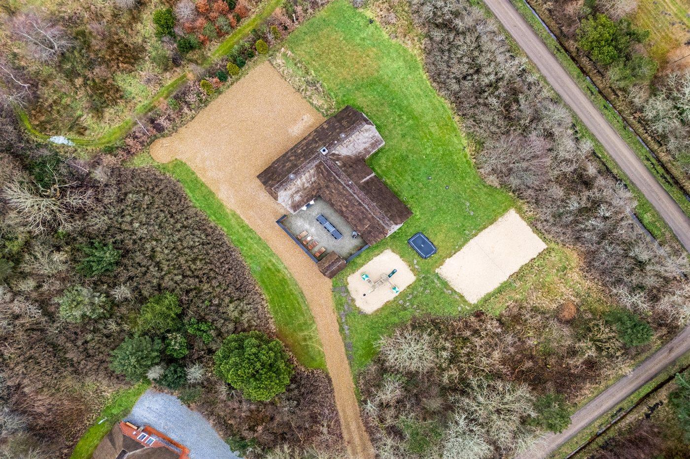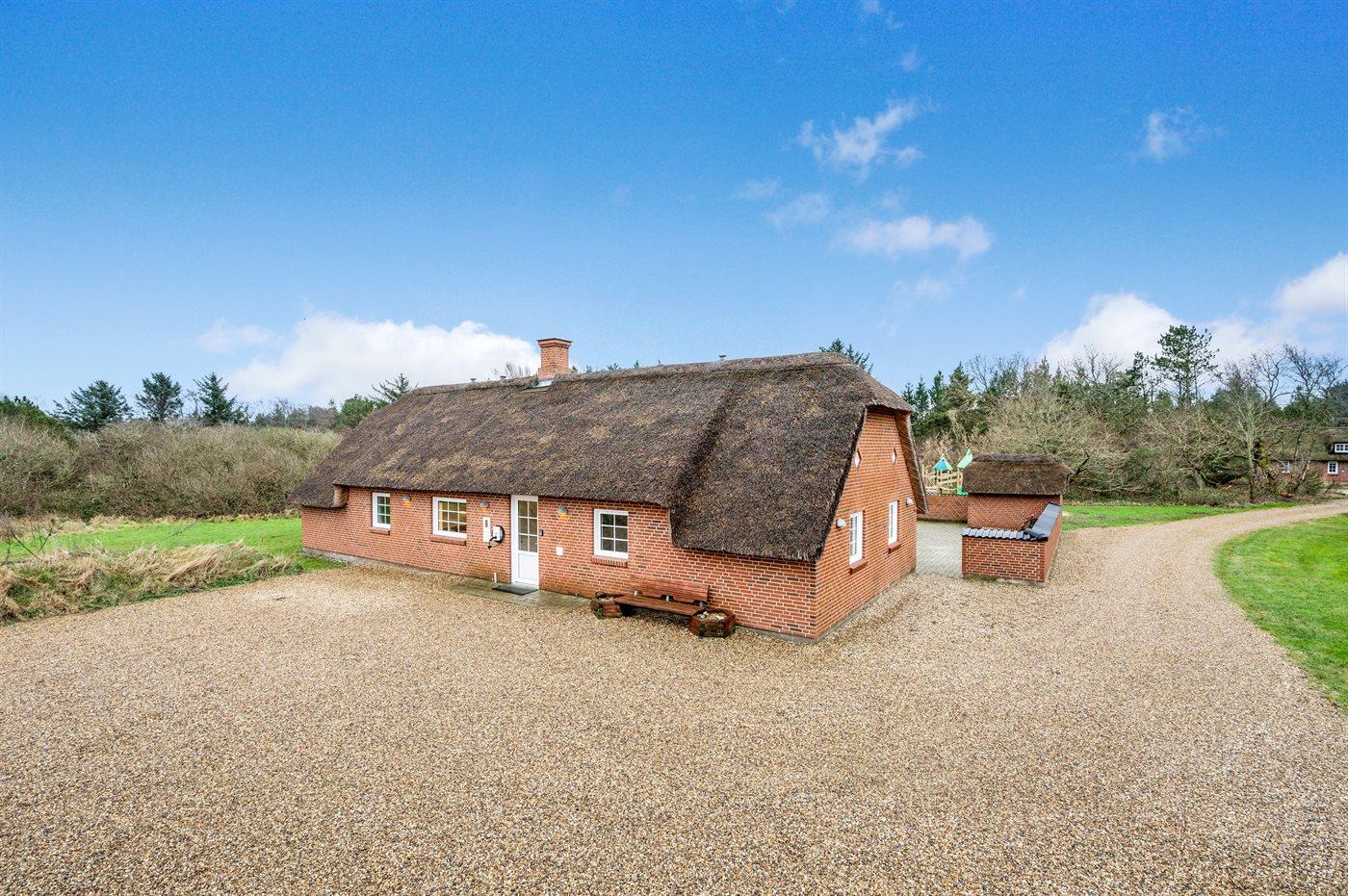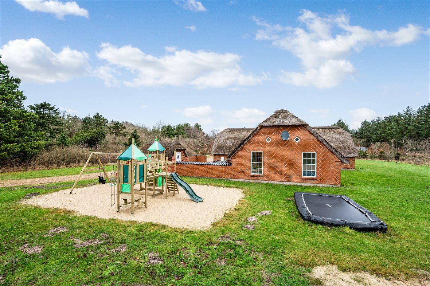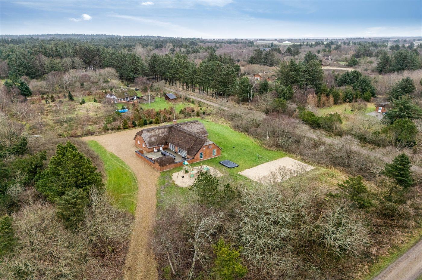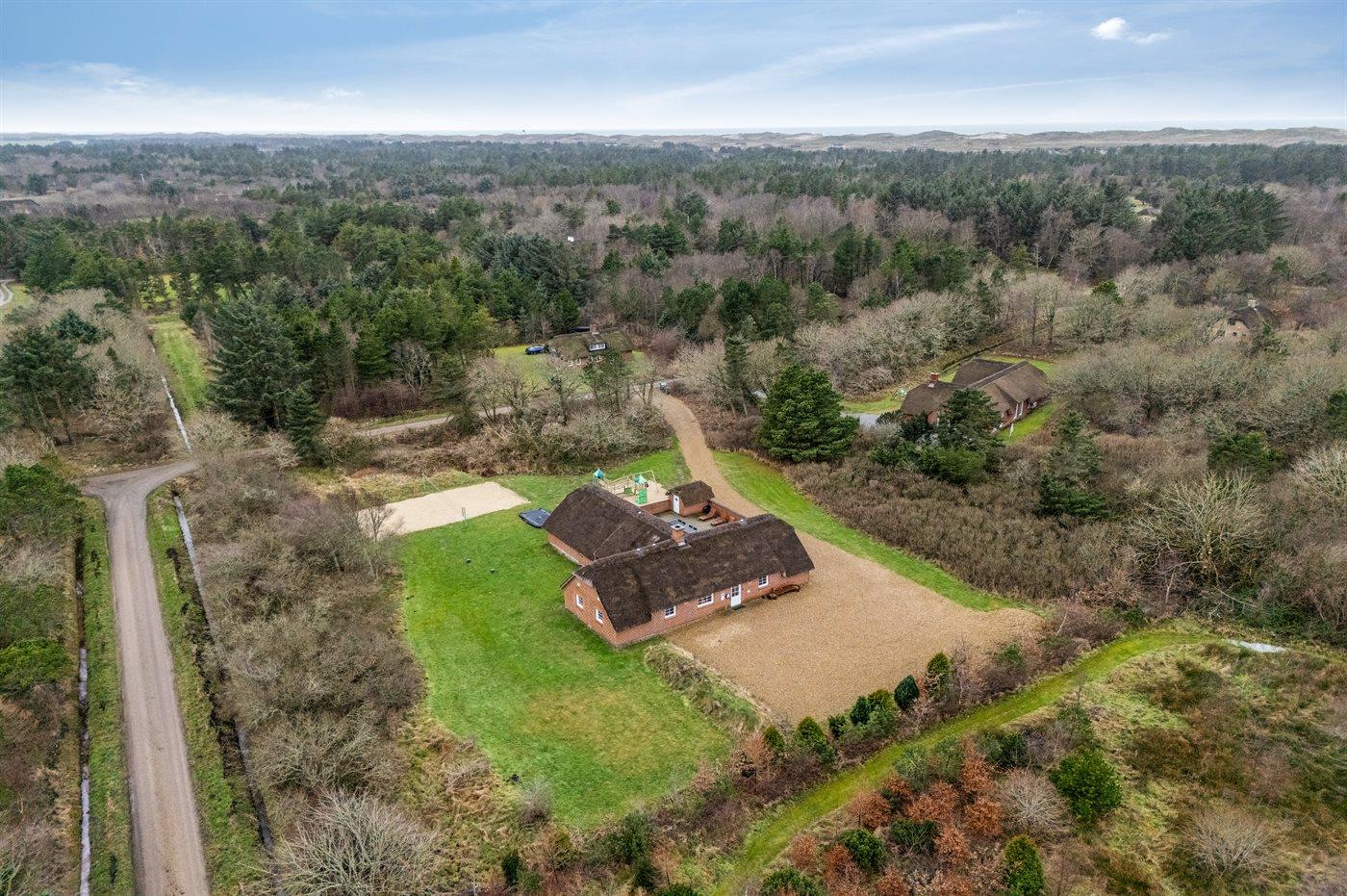Ferieboligen er beliggende på en 5018 m² stor naturgrund. Der er 1700 m til havet. Nærmeste forretning er beliggende i en afstand af 500 m. Til ferieboligen hører åbent terrasseareal. Gynge. Sandkasse. Trampolin. Legetårn. Rutchebane. Beachvolley. Der er installeret stik til opladning af elbil. Med 9 kW ladeeffekt. Parkering ved ferieboligen.