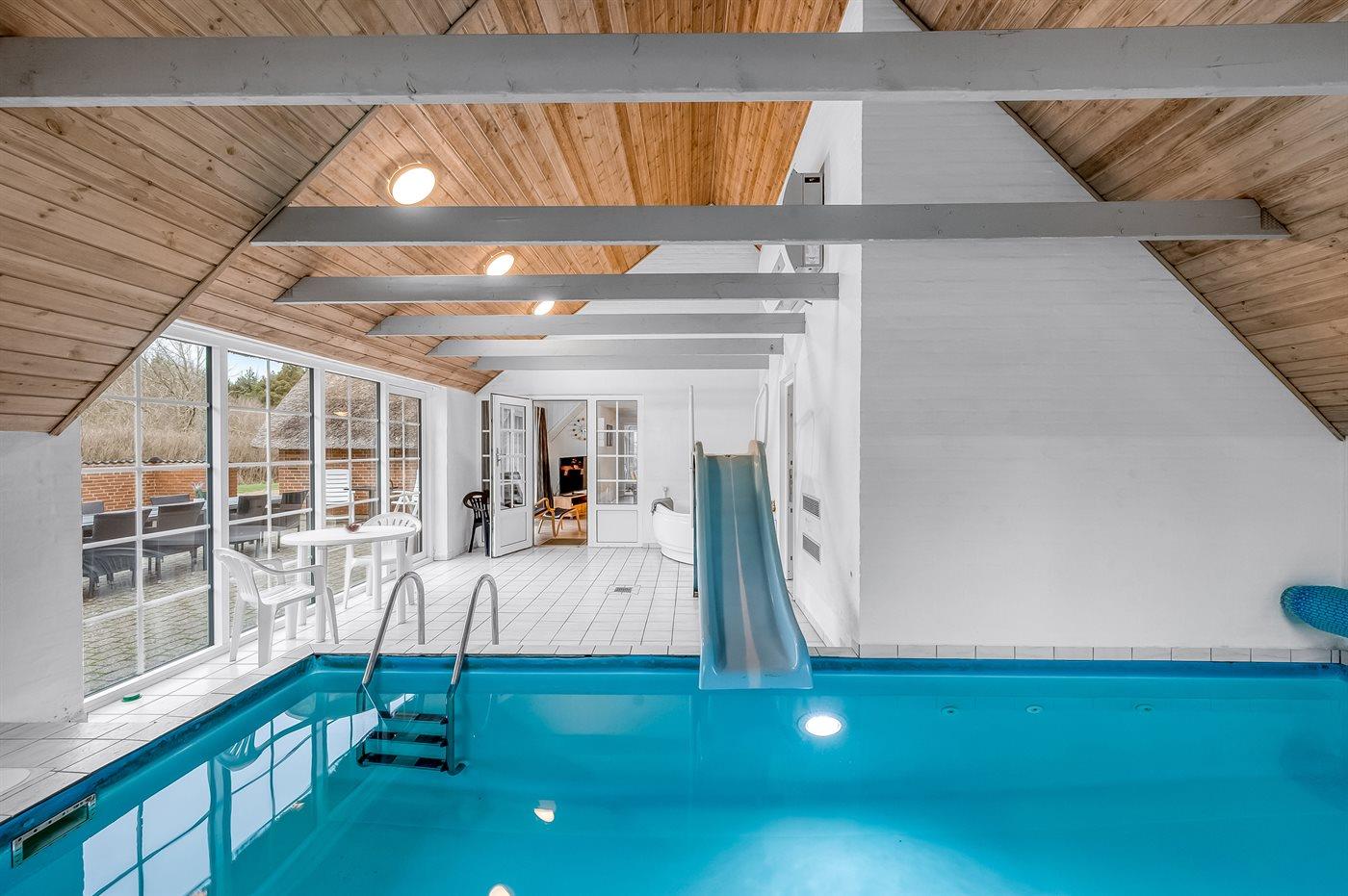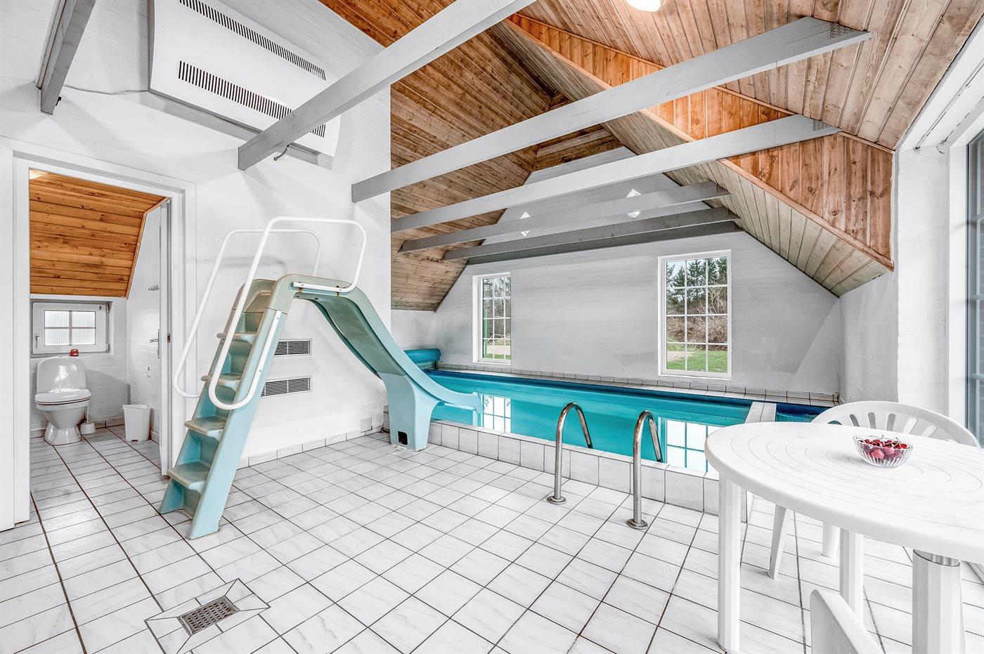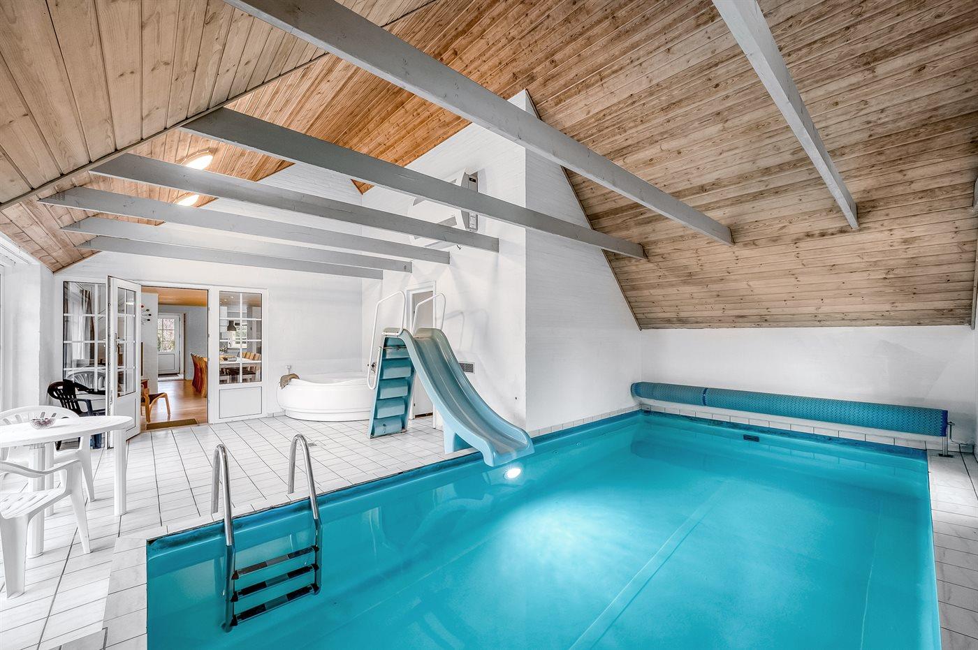 I den indendørs swimmingpool er der mulighed for leg og hyggeligt samvær. Swimmingpoolen måler op til 6 m i bredden, 9 m i længden og den er op til 1,25 m dyb. Vandet er mellem 24 og 28° C varmt. Der findes en vandrutsjebane. Til de små er der desuden børnepool. Der er gulvvarme i swimmingpoolområdet.