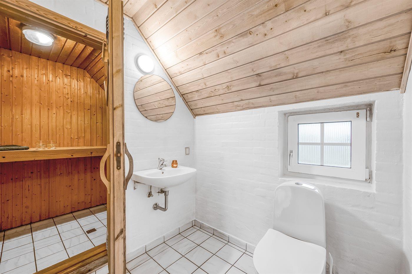 Der er 3 badeværelser med bruseniche og 3 toiletter. Der er gulvvarme på 3 badeværelser. I saunaen er der mulighed for afslapning.
