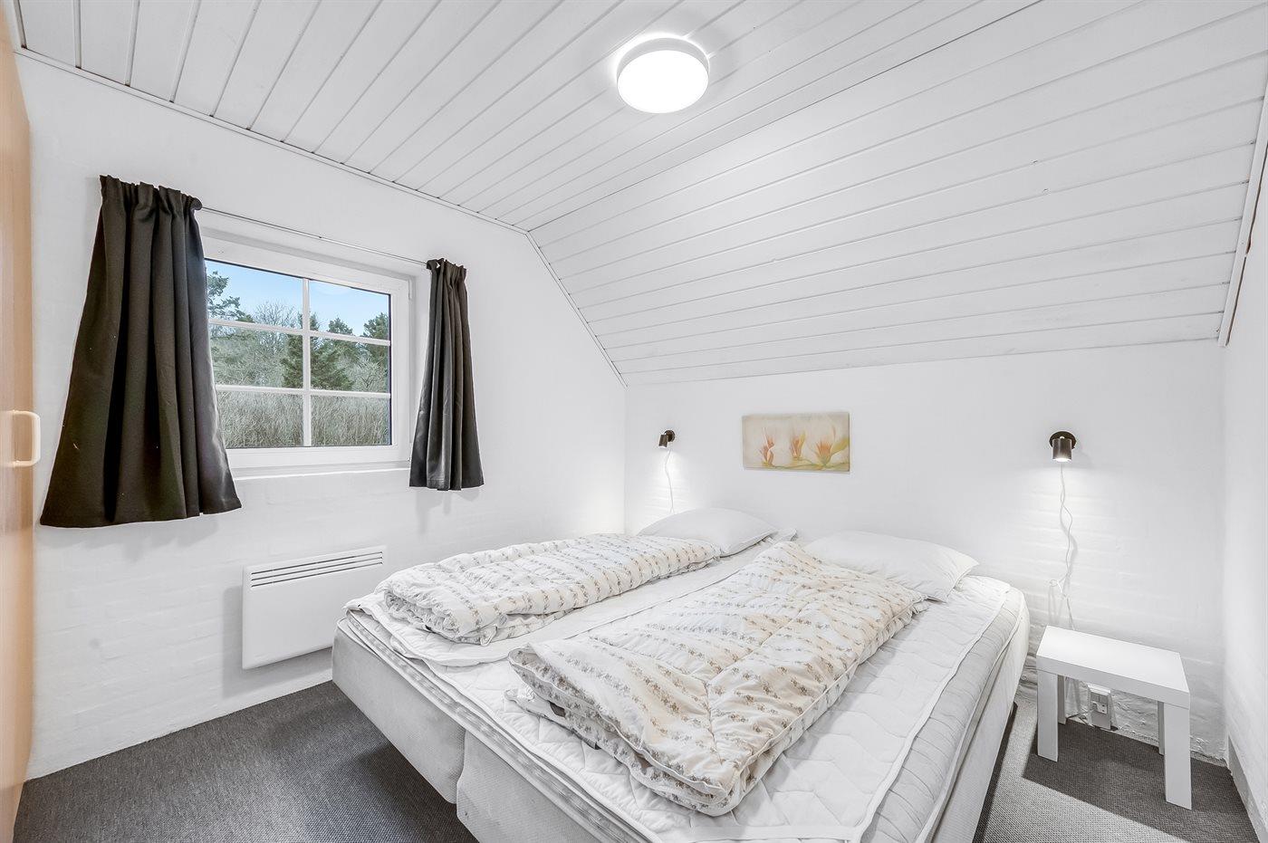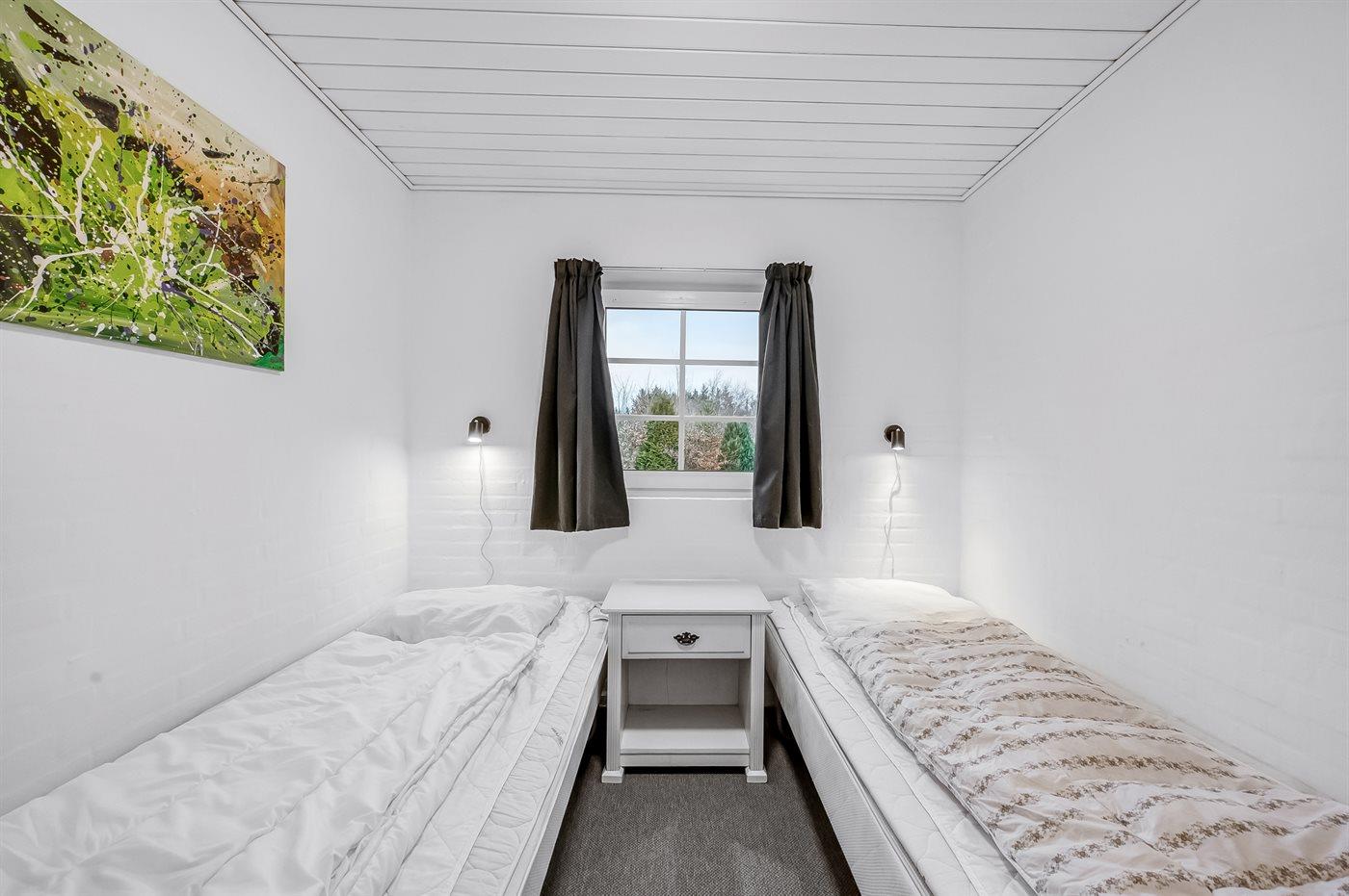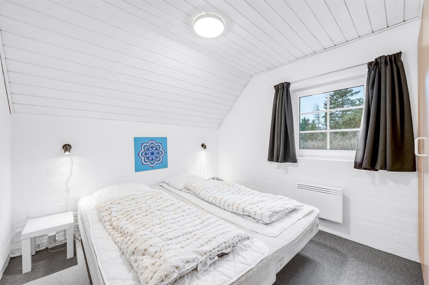 Der er i alt 6 soveværelser. Sovepladserne fordeler sig på: 8 sovepladser i dobbeltsenge. 4 sovepladser i enkeltsenge. Derudover er der 2 stk. barnesenge.