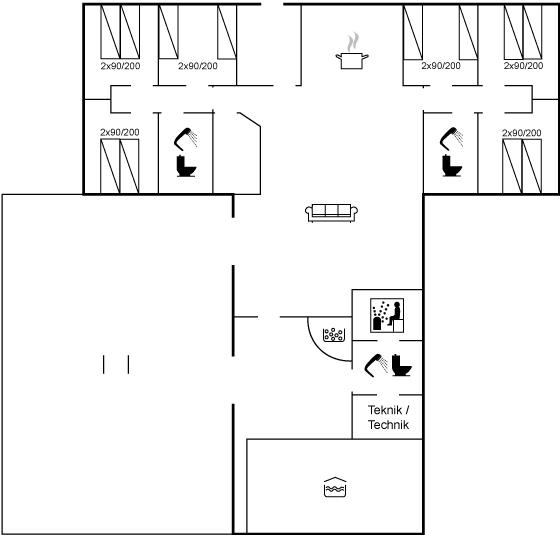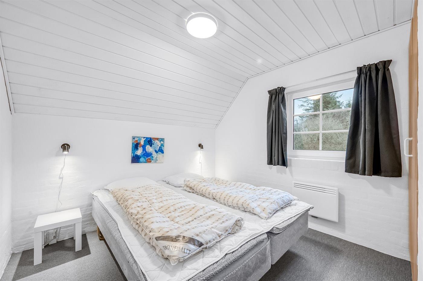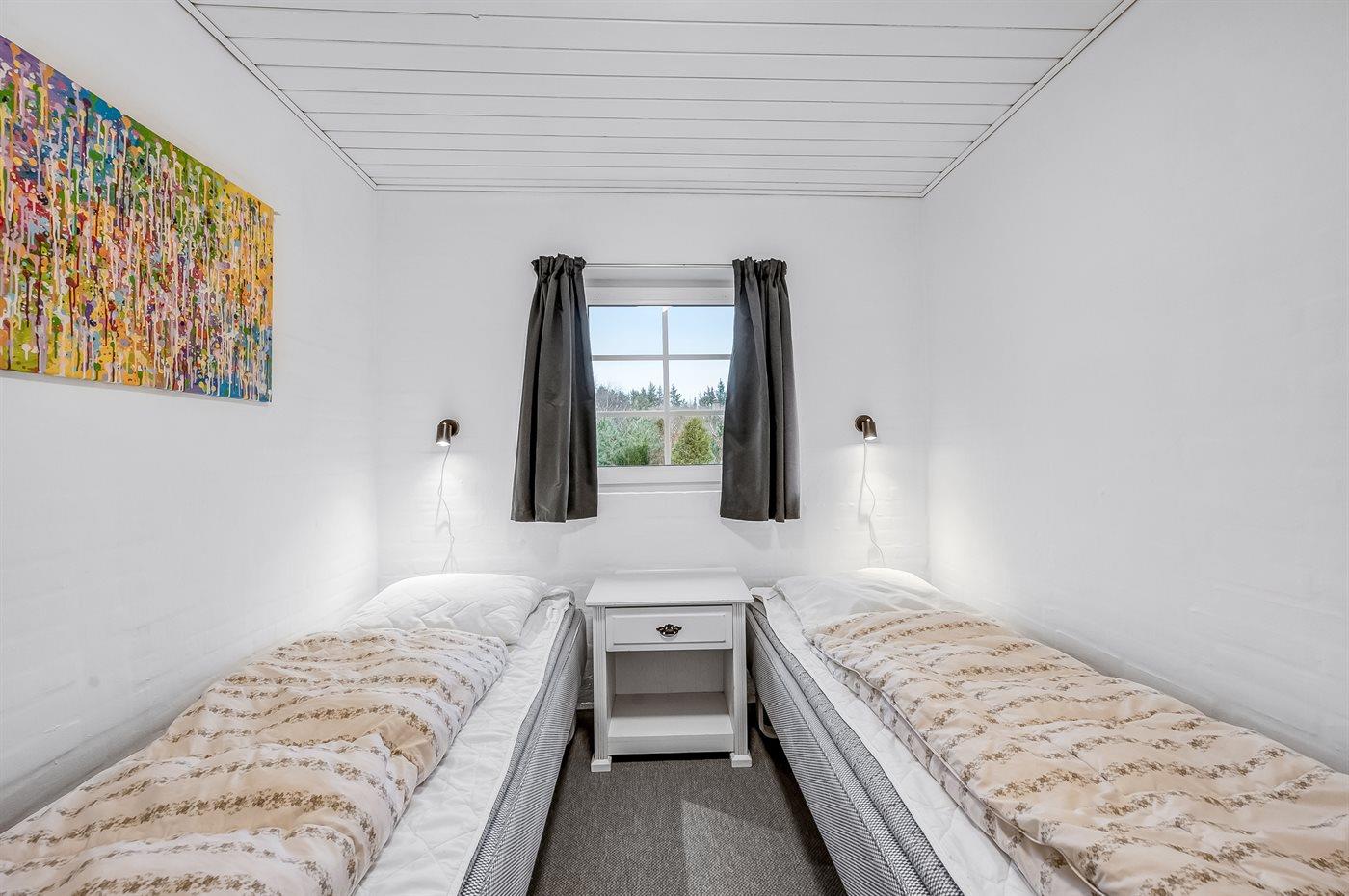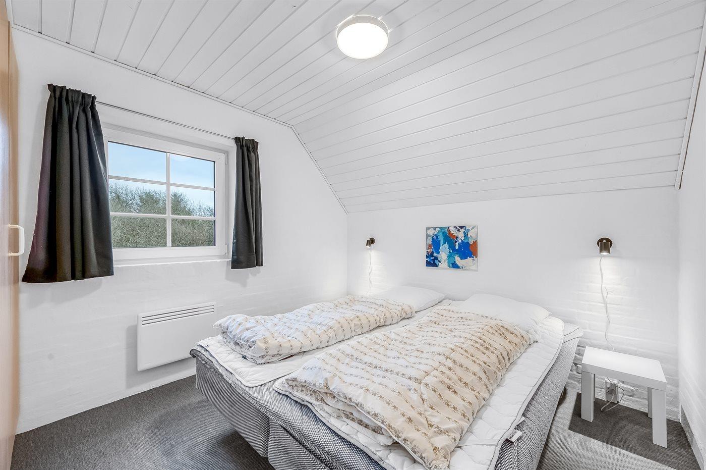 Der er i alt 6 soveværelser. Sovepladserne fordeler sig på: 8 sovepladser i dobbeltsenge. 4 sovepladser i enkeltsenge. Derudover er der 2 stk. barnesenge.