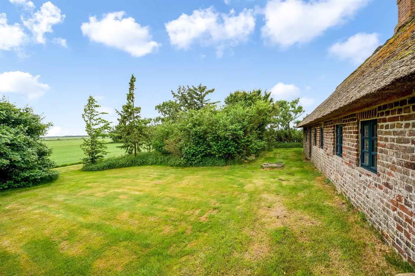 På landet, omgivet af frodige marker, finder du dette charmerende stråtækte bondehus, indhyllet i idyl. Huset byder velkommen til fire personer med sin rummelige og hyggelige atmosfære.