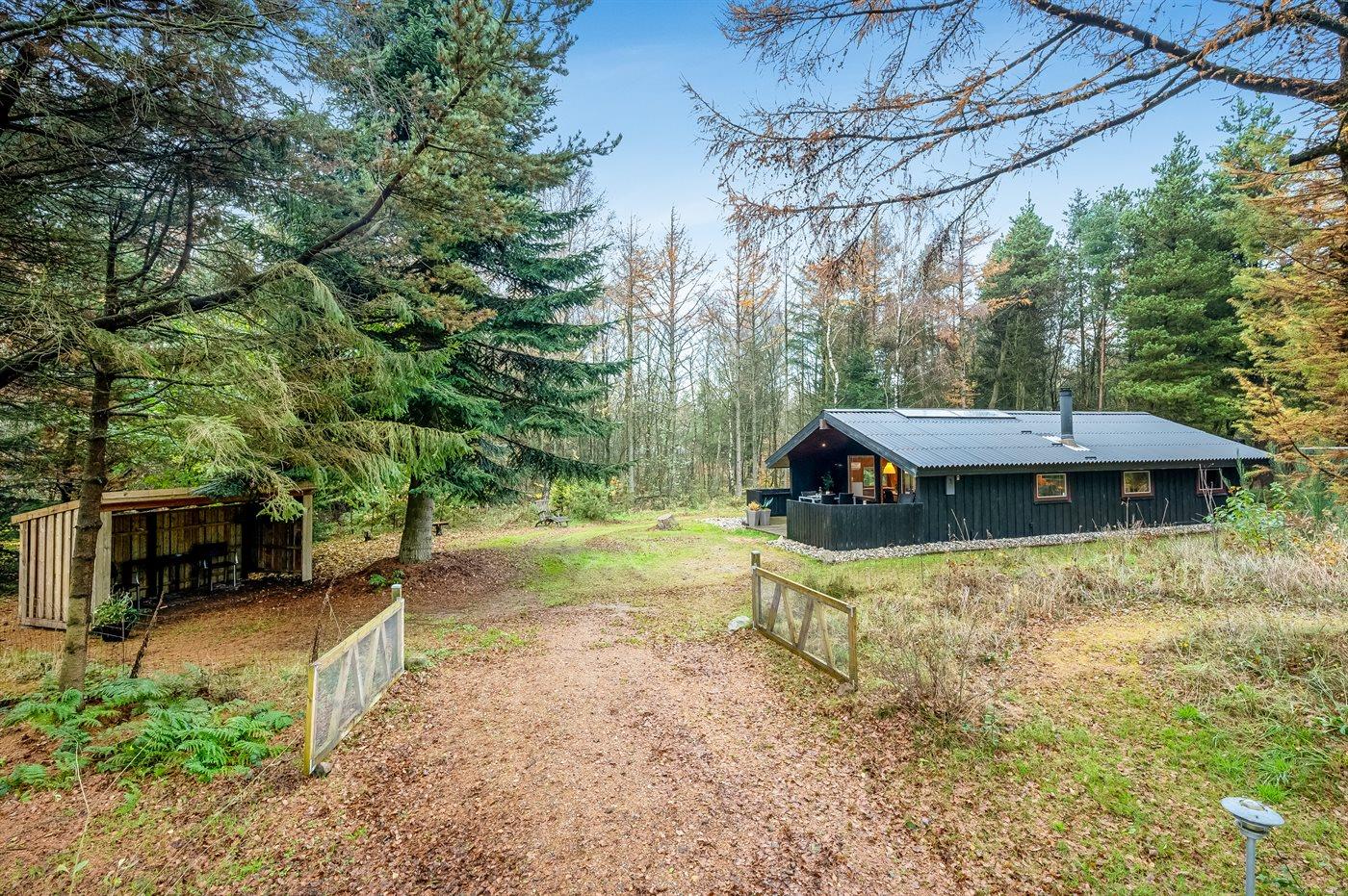 Ferieboligen er beliggende på en 2836 m² stor naturgrund. Grunden er indhegnet. Der er 7000 m til havet. Der er 650 m til fjorden. Nærmeste forretning er beliggende i en afstand af 8000 m. Til ferieboligen hører åbent terrasseareal. Desuden er der overdækket terrasse. Der er carport til rådighed. Parkering ved ferieboligen.