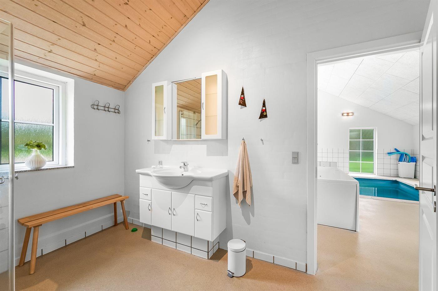 Rummeligt sommerhus med indendørs pool, spa og store udearealer tæt på strand og fjord i Vester Husby.