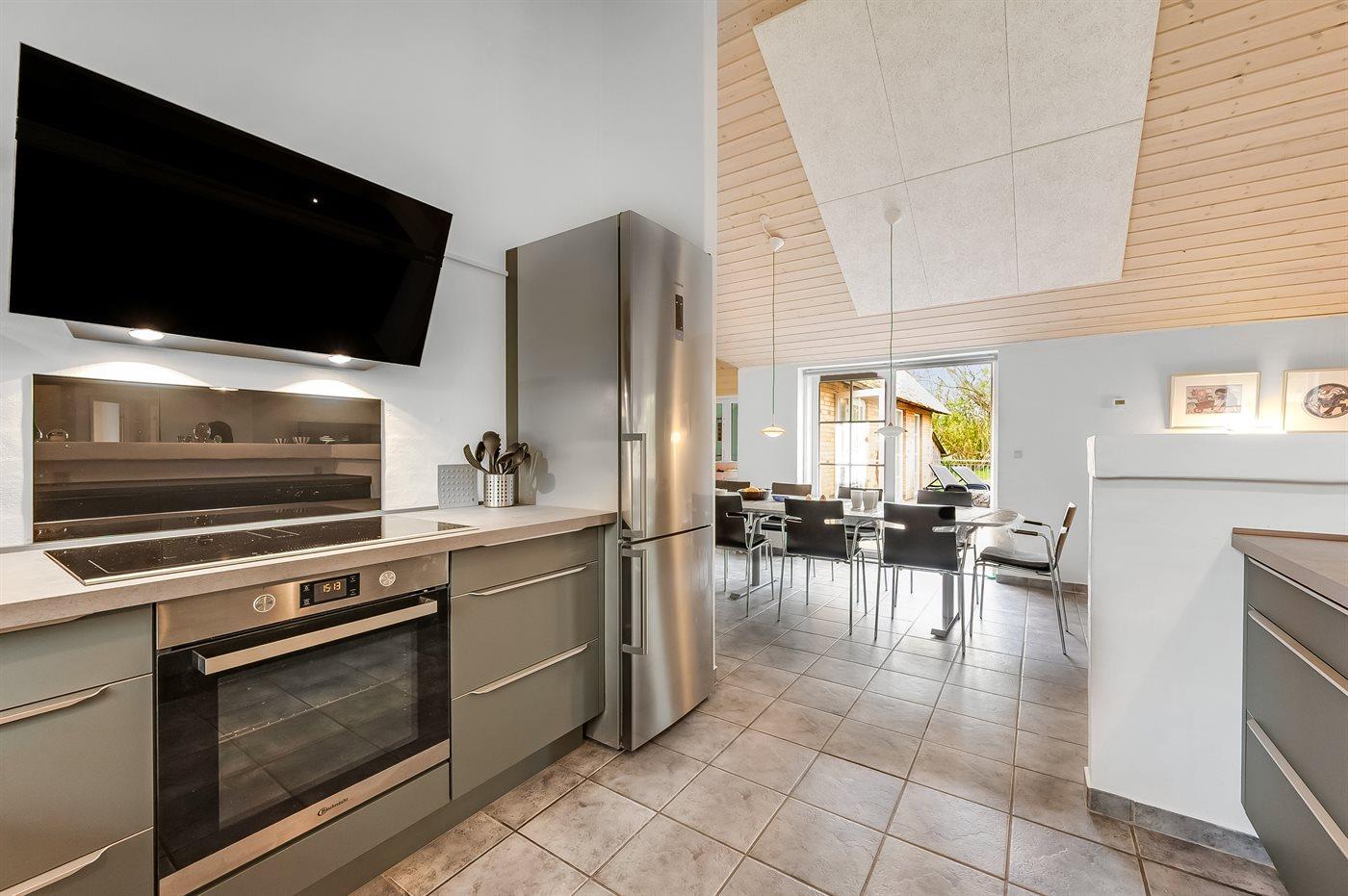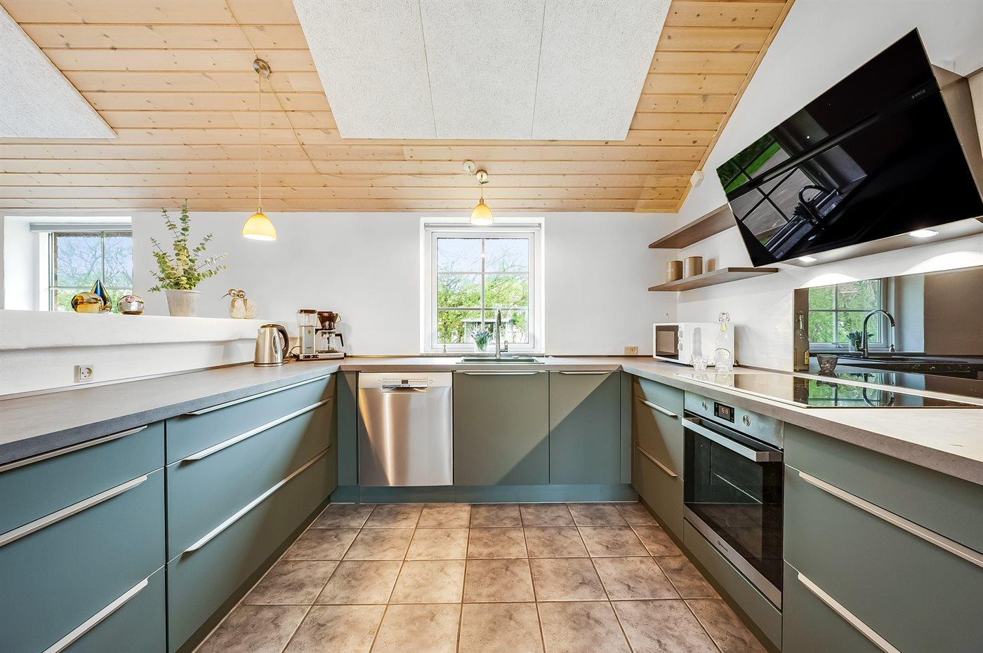 Køkkenet er udstyret med 1 køleskab. Der er 4 induktionskogeplader, varmluftovn, mikrobølgeovn samt opvaskemaskine.