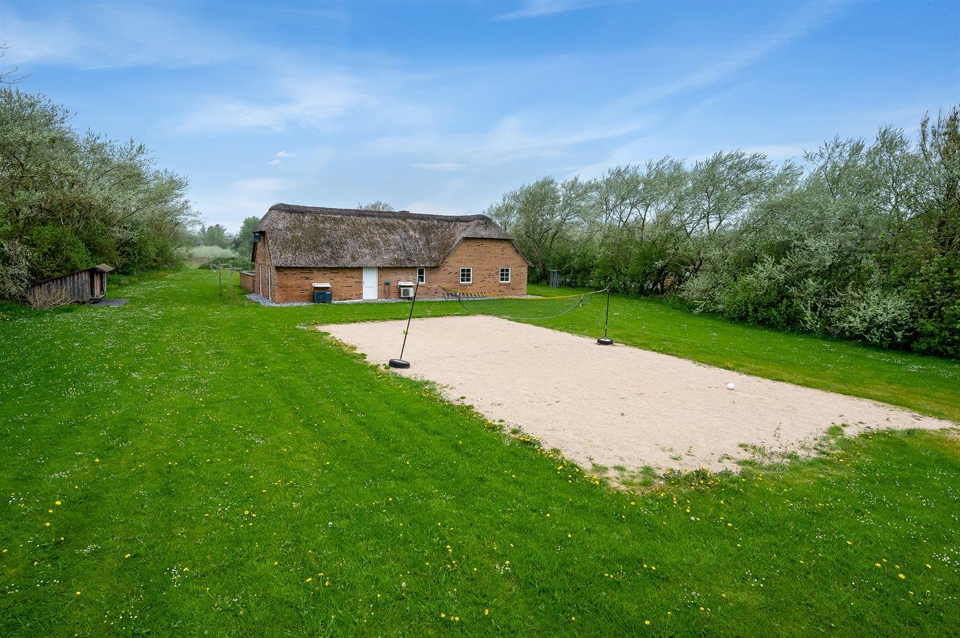 Skønt og rummeligt sommerhus beliggende på en meget stor grund, med god plads til boldspil og leg, nær såvel fjord, hav, strand, søer og klitplantage.