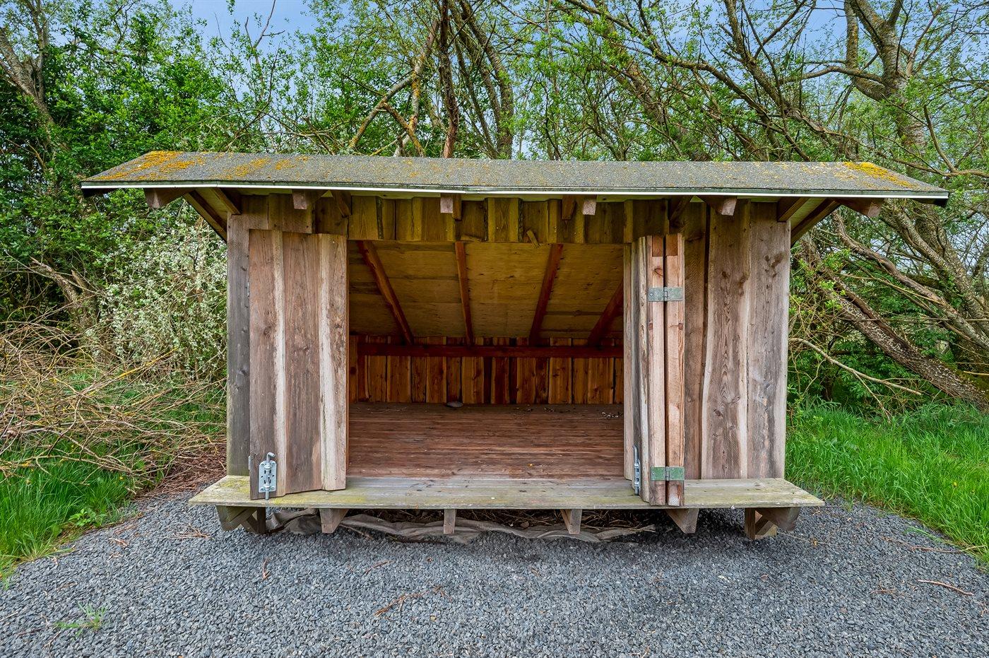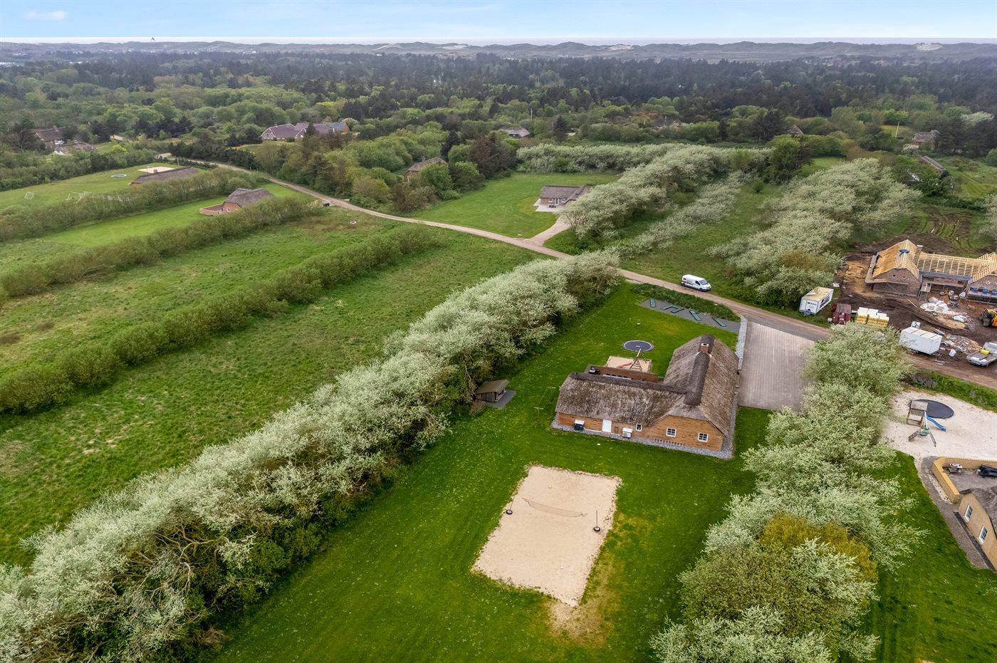 Ferieboligen er beliggende på en 5000 m² stor naturgrund. Der er 1600 m til havet. Der er 5000 m til fjorden. Nærmeste forretning er beliggende i en afstand af 1000 m. Der er en golfbane i en afstand af 18000 m. Til ferieboligen hører 50 m² terrasseareal. Gynge. Sandkasse. Trampolin. Fodboldmål. Parkering ved ferieboligen.