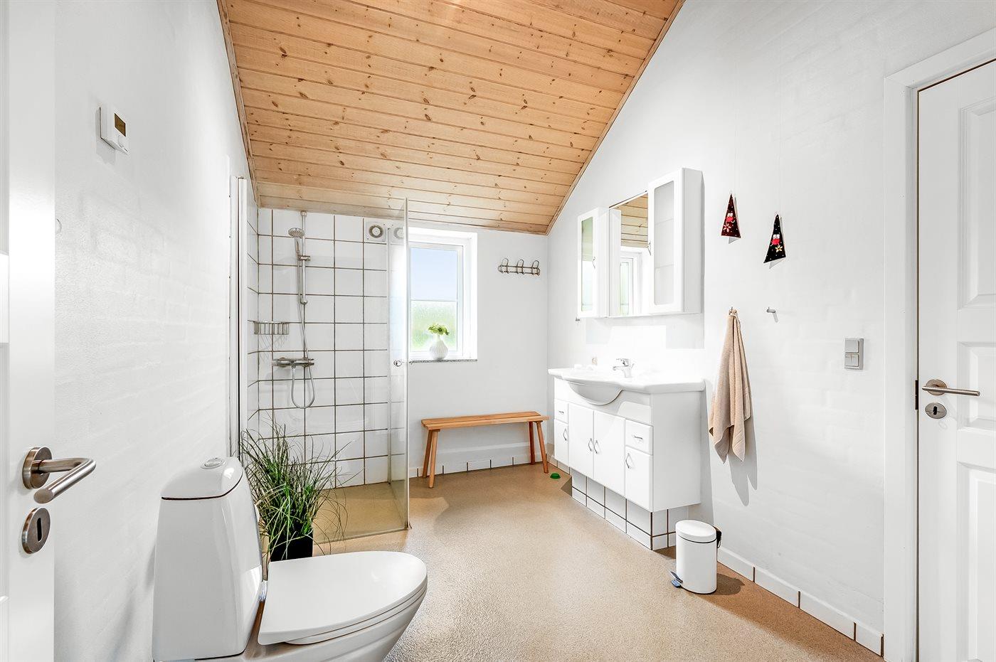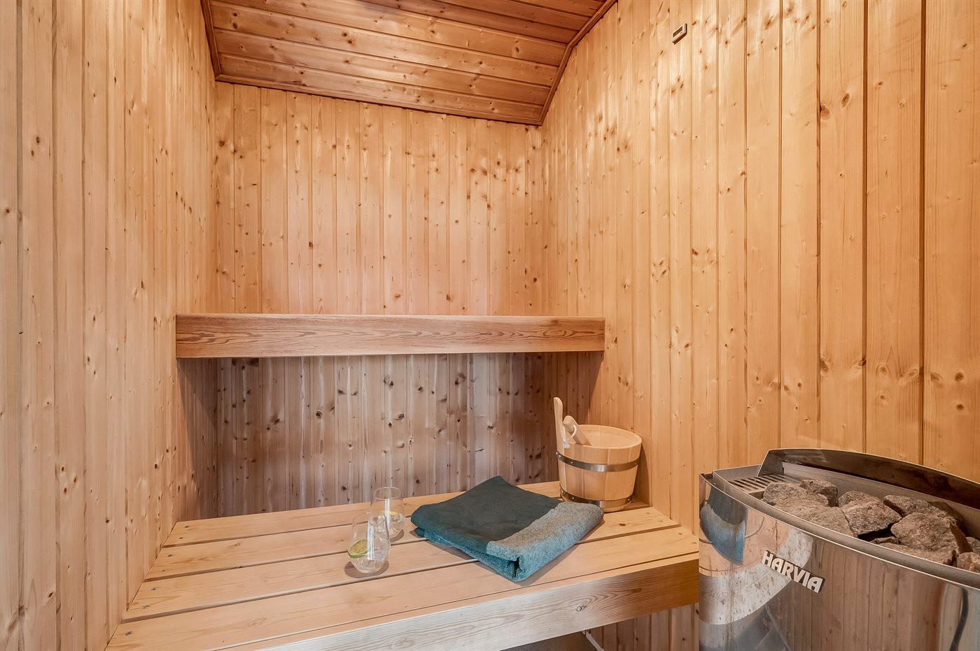 Der er 2 badeværelser med bruseniche og 2 toiletter. Der er gulvvarme på 2 badeværelser. I saunaen er der mulighed for afslapning.