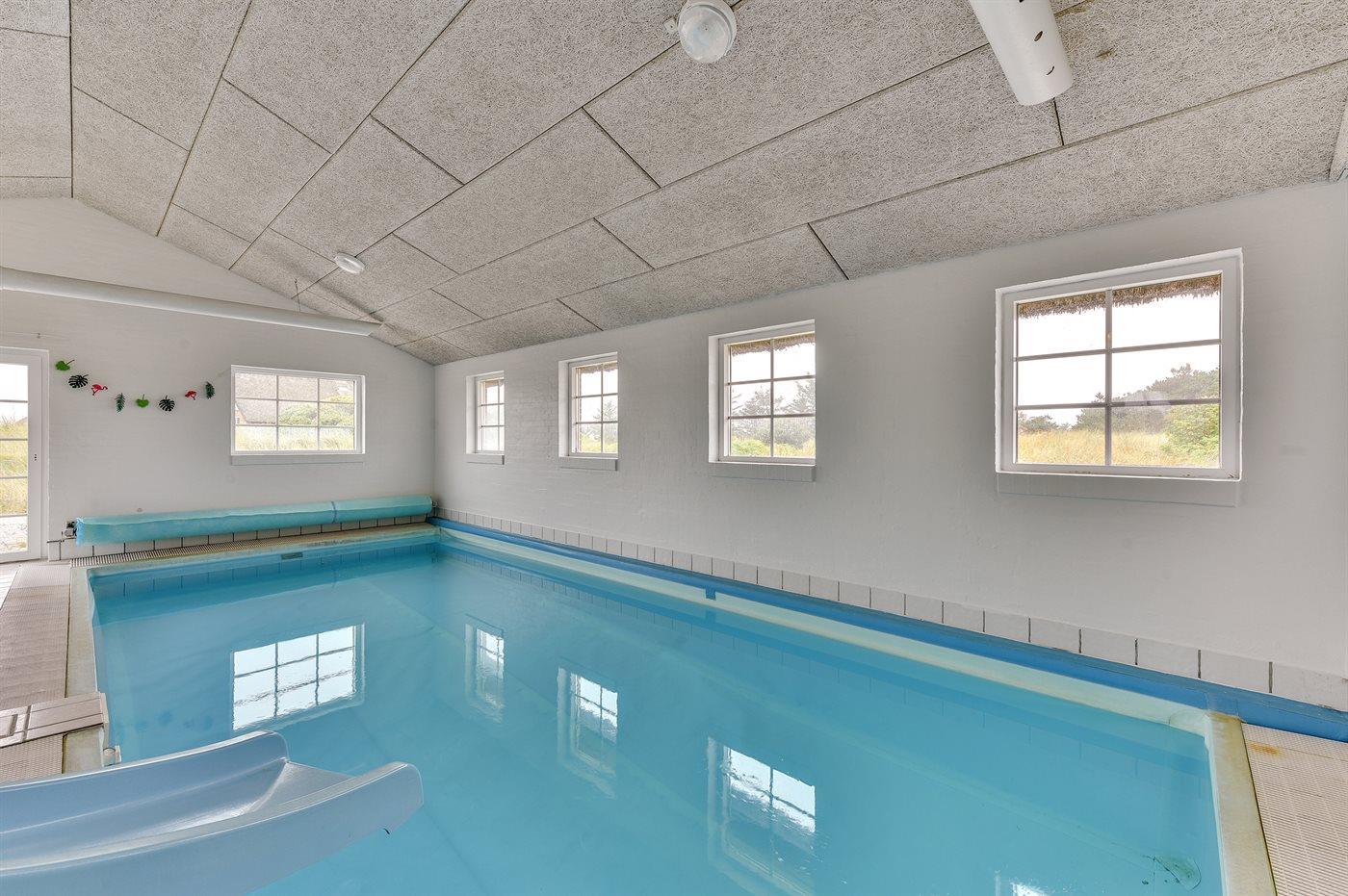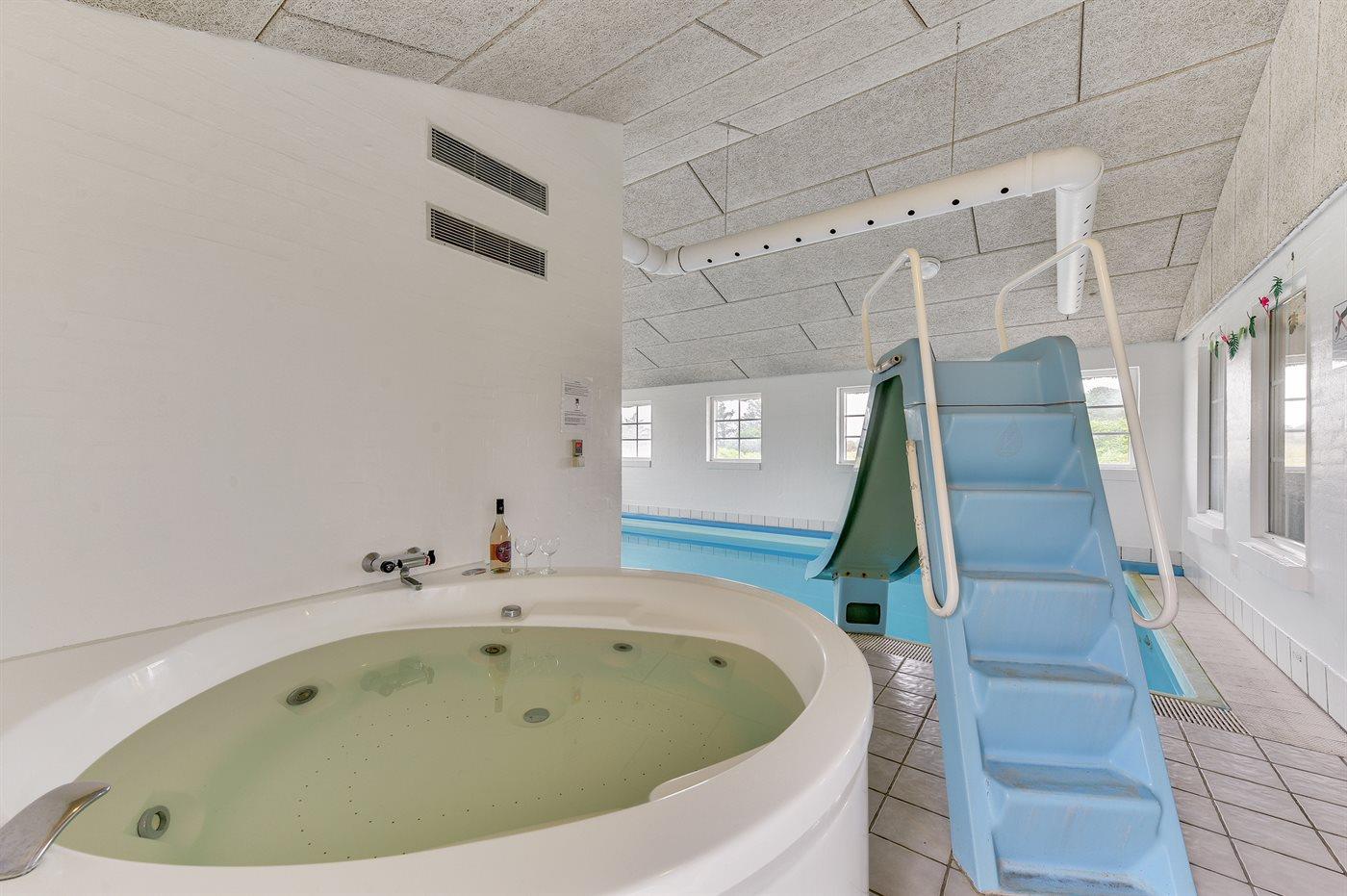 I den indendørs swimmingpool med vandrutsjebane er der mulighed for leg og hyggeligt samvær. Swimmingpoolen måler op til 3,2 m i bredden, 6,3 m i længden og den er op til 1,2 m dyb. Vandet er mellem 24 og 28° C varmt. Der er gulvvarme i swimmingpoolområdet.