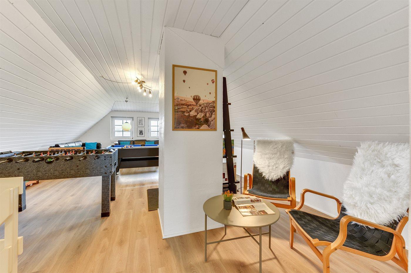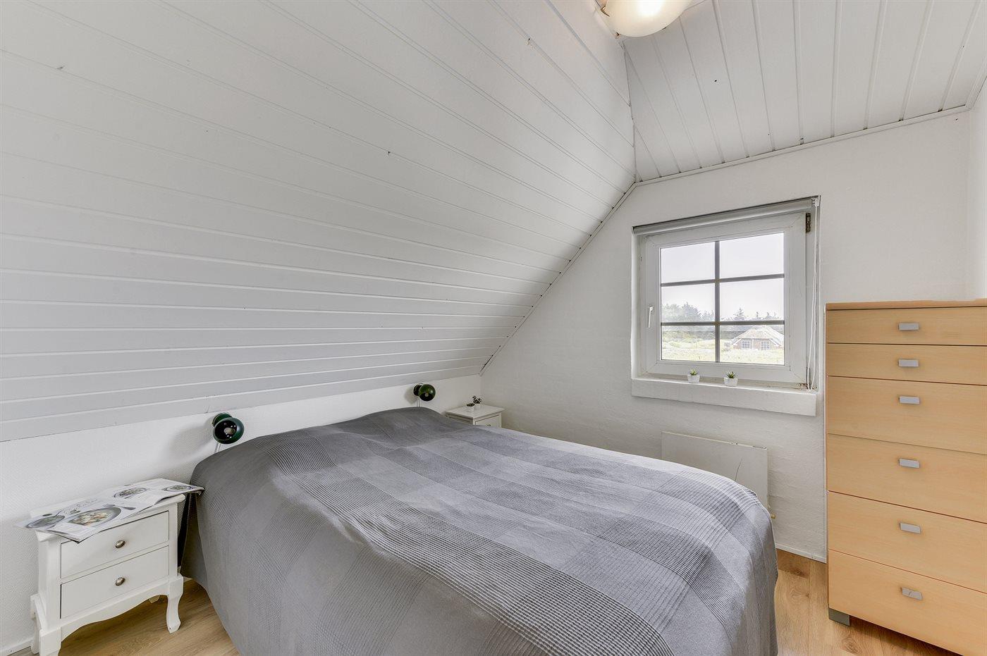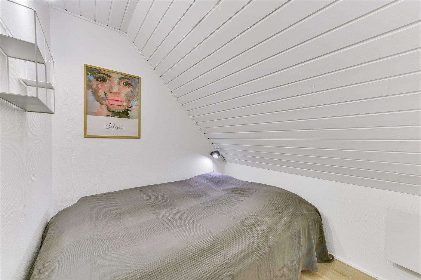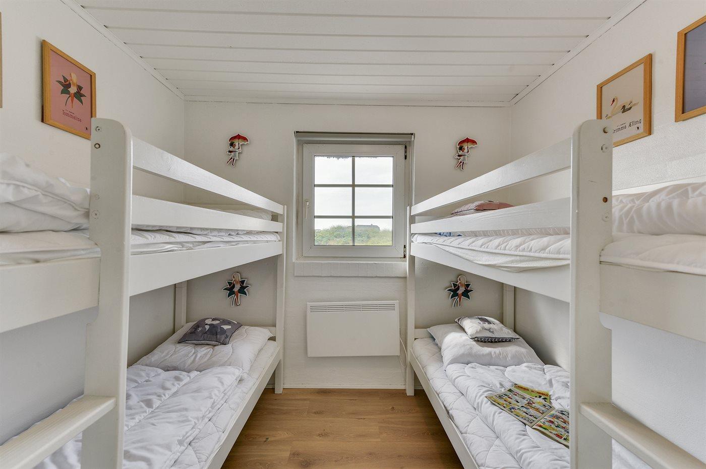 Der er i alt 6 soveværelser. Sovepladserne fordeler sig på: 10 sovepladser i dobbeltsenge. 4 sovepladser i køjesenge. Derudover er der 1 stk. barneseng.