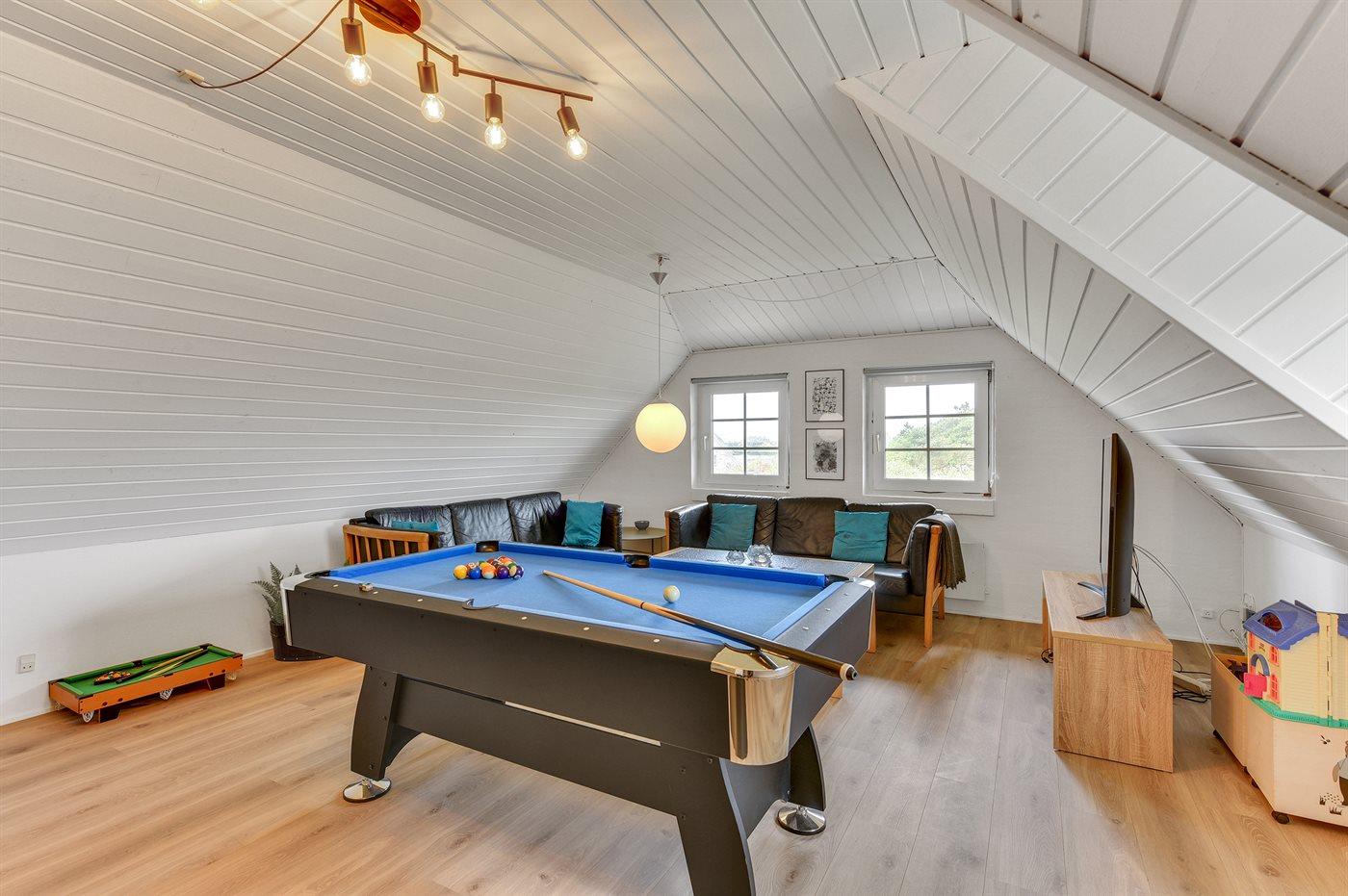 På en meget stor grund i rolige omgivelser, ikke langt fra Vesterhavet, ligger dette dejlige sommerhus med bl.a. swimmingpool og aktivitetsrum. Huset er bygget i 2 plan og råder over hele 6 soveværelser.
