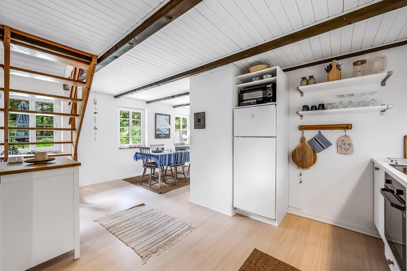 Køkkenet er udstyret med 1 køleskab. Der er 4 keramiske kogeplader, varmluftovn, mikrobølgeovn samt opvaskemaskine.