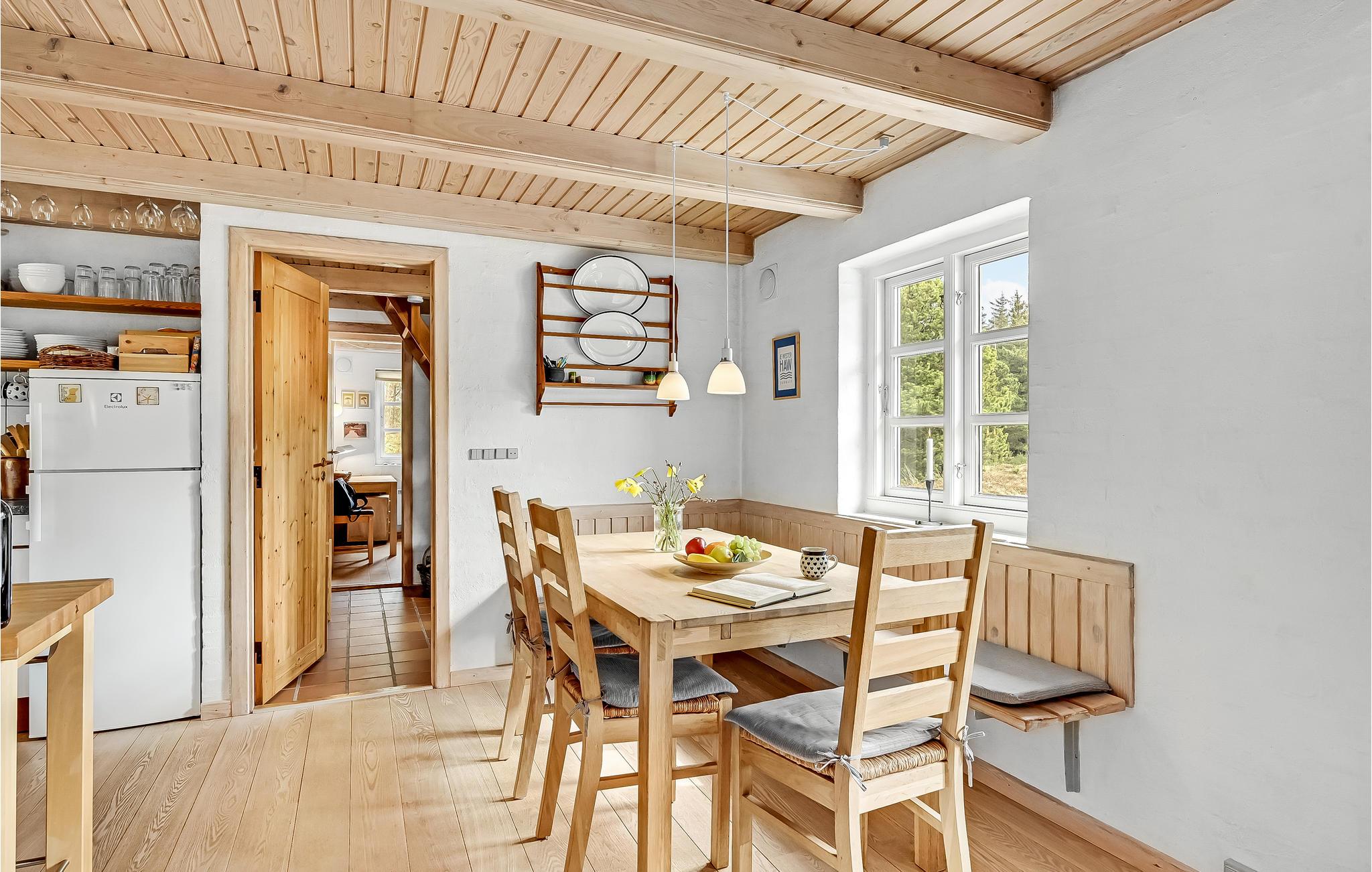 Der er lagt op til nogle skønne dage, hvor I får base i dette spændende hus, som er opført i stil med et klassisk, dansk landsted med stråtag. Indendørs venter en lys og charmerende bolig med moderne faciliteter og en brændeovn, så I kan tænde op på de kølige dage. I sommerhalvåret kan I træde ud på den åbne terrasse med grill og havemøbler og nyde de lyse nætter, mens I fordøjer dagens mange indtryk.