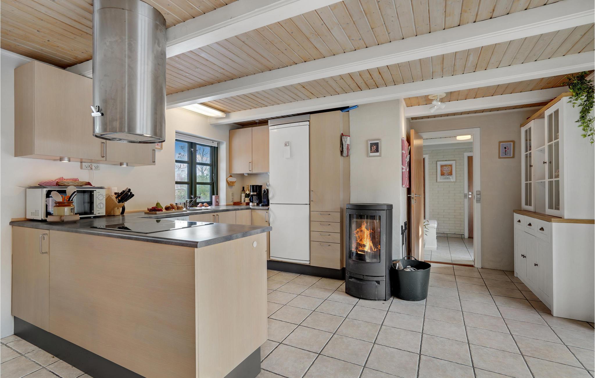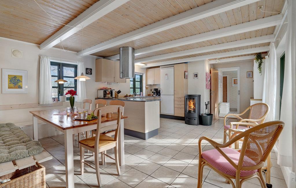 Boligen har et dejligt lys og et væld af flotte detaljer, der understreger husets historie. Nyd tiden ved måltiderne ved det lange spisebord og læn jer tilbage i den hyggelige stue efter en lang dag på farten. Hvis vinden bider udenfor, kan I tænde op i brændeovnen og hygge jer med brætspil i de hyggelige rammer.