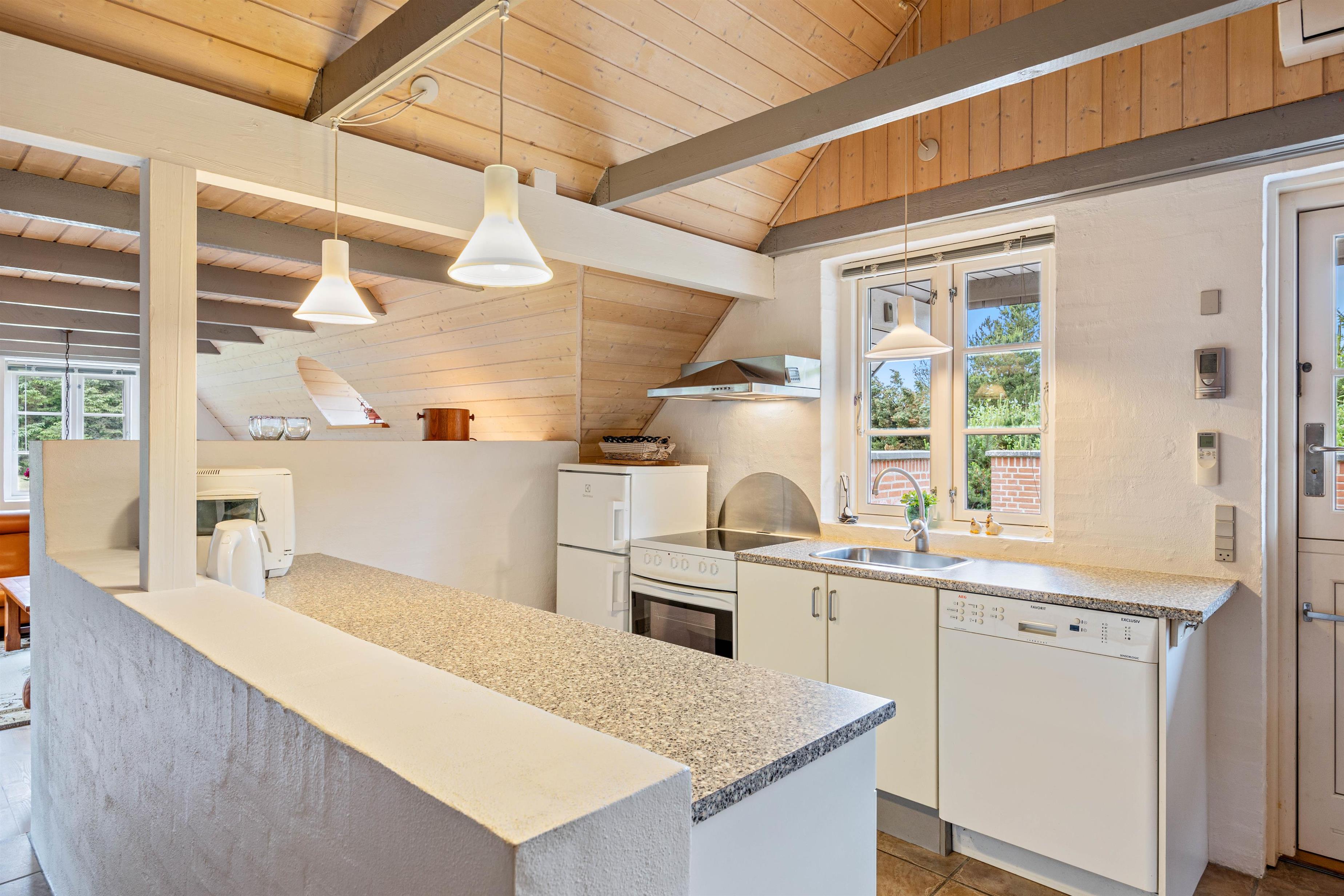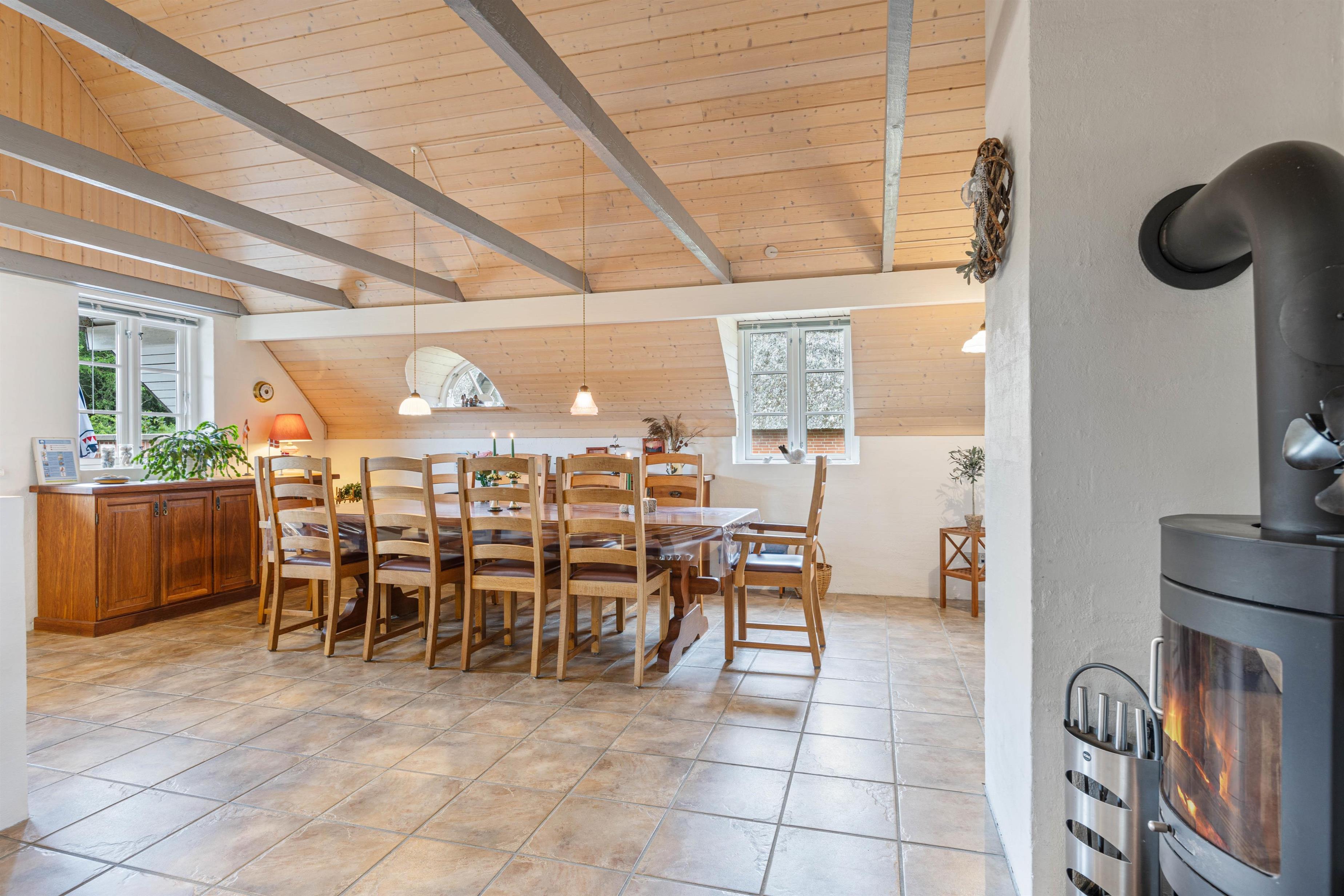 Når der for alvor skal hygges, kan I tænde op i husets centralt placerede brændeovn i det store alrum. Her kan I samles omkring et spil kort og nyde den knitrende lyd fra flammerne i baggrunden.