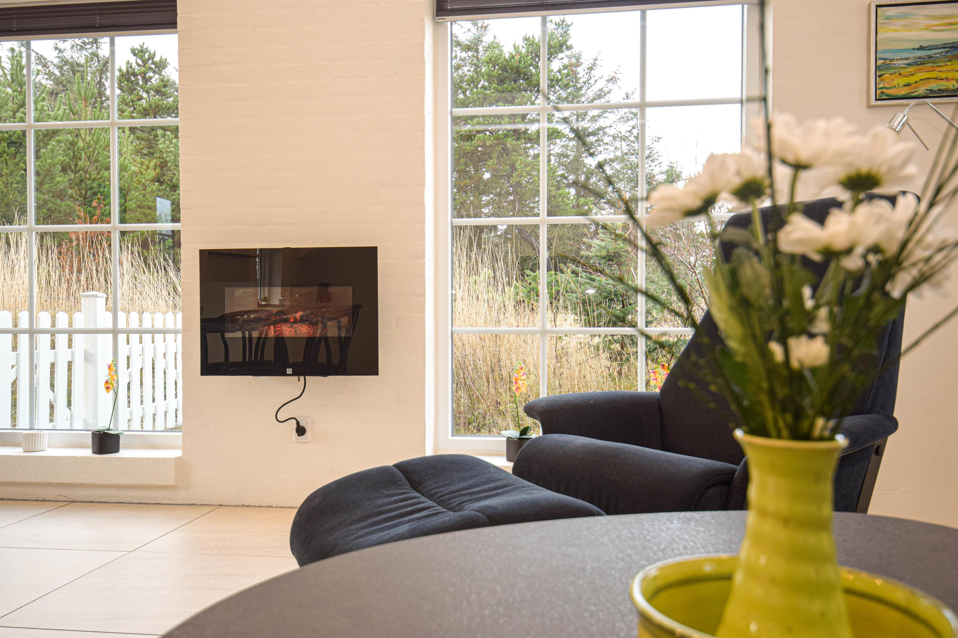 Den elektriske pejs spreder ekstra hygge på kølige dage, og i køkkenet er alt, hvad der behøves til en afslappet ferie.