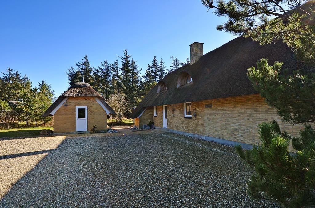 Et charmerende og rummeligt feriehus i klassisk vestjysk stil – med stråtag, spabad, brændeovn og masser af ro.