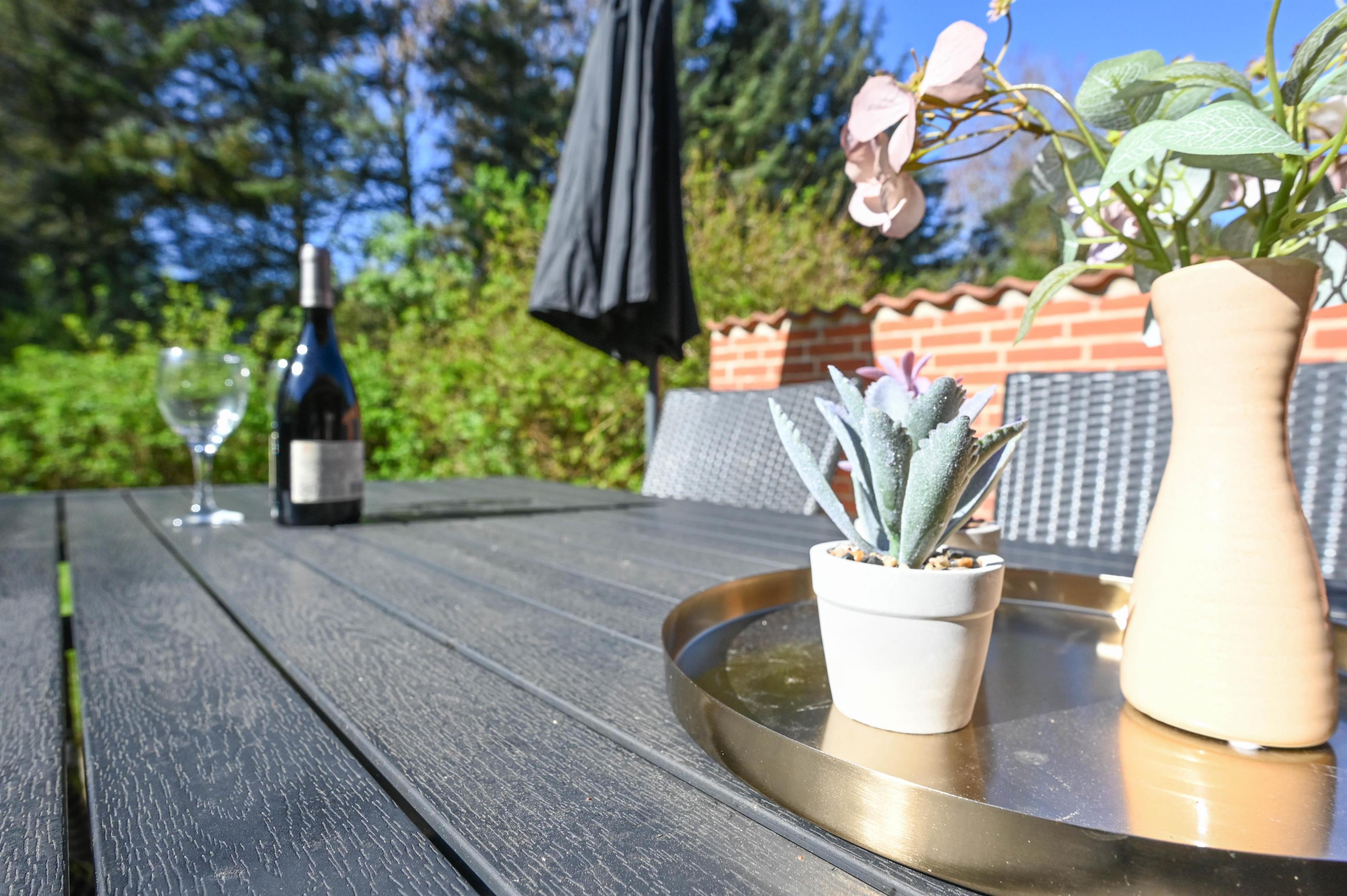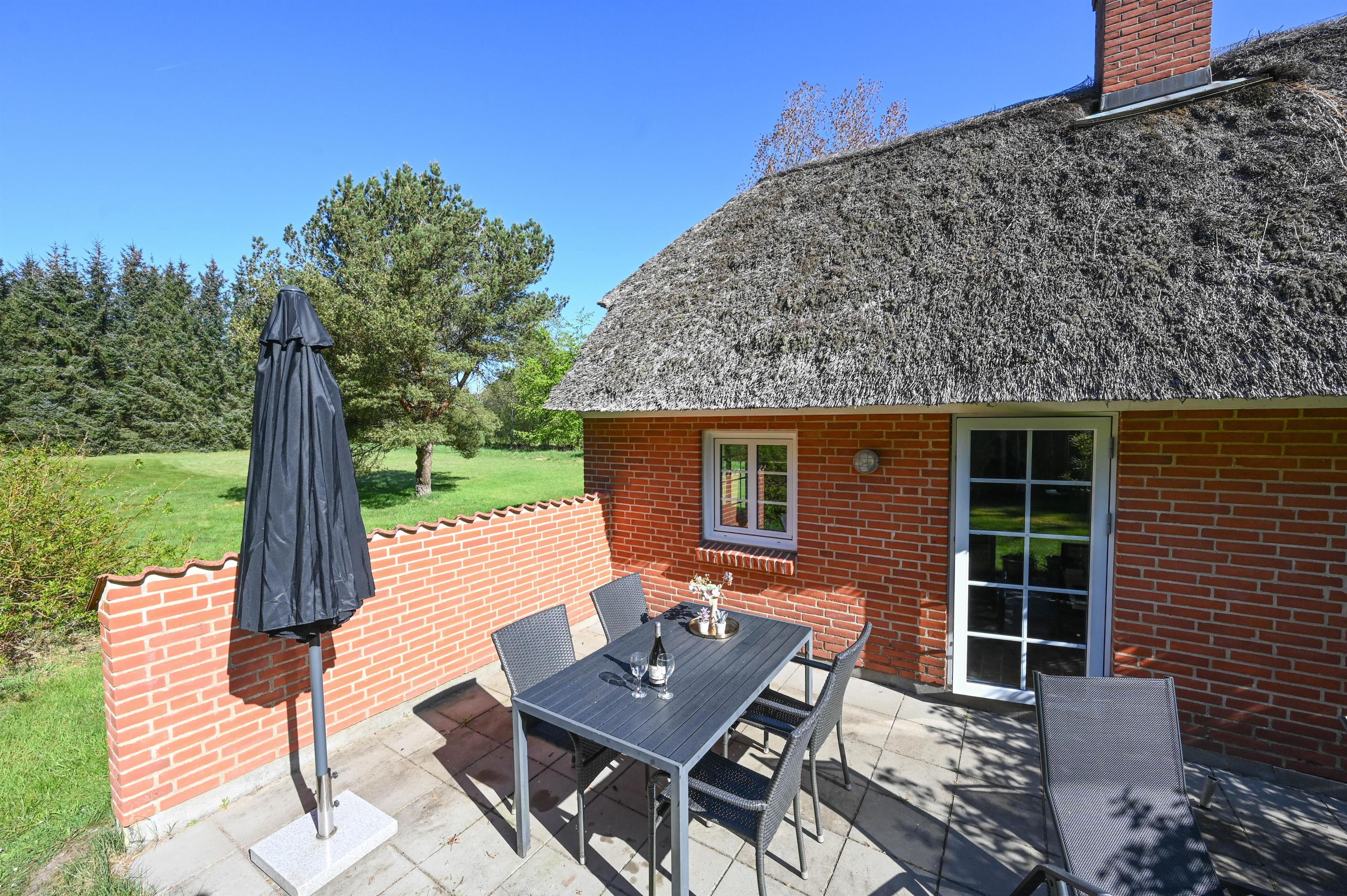 Her er der masser af plads til både afslapning og leg på den store græsplæne, og på terrassen kan du nyde solen, fuglefløjt og den friske vestenvind.