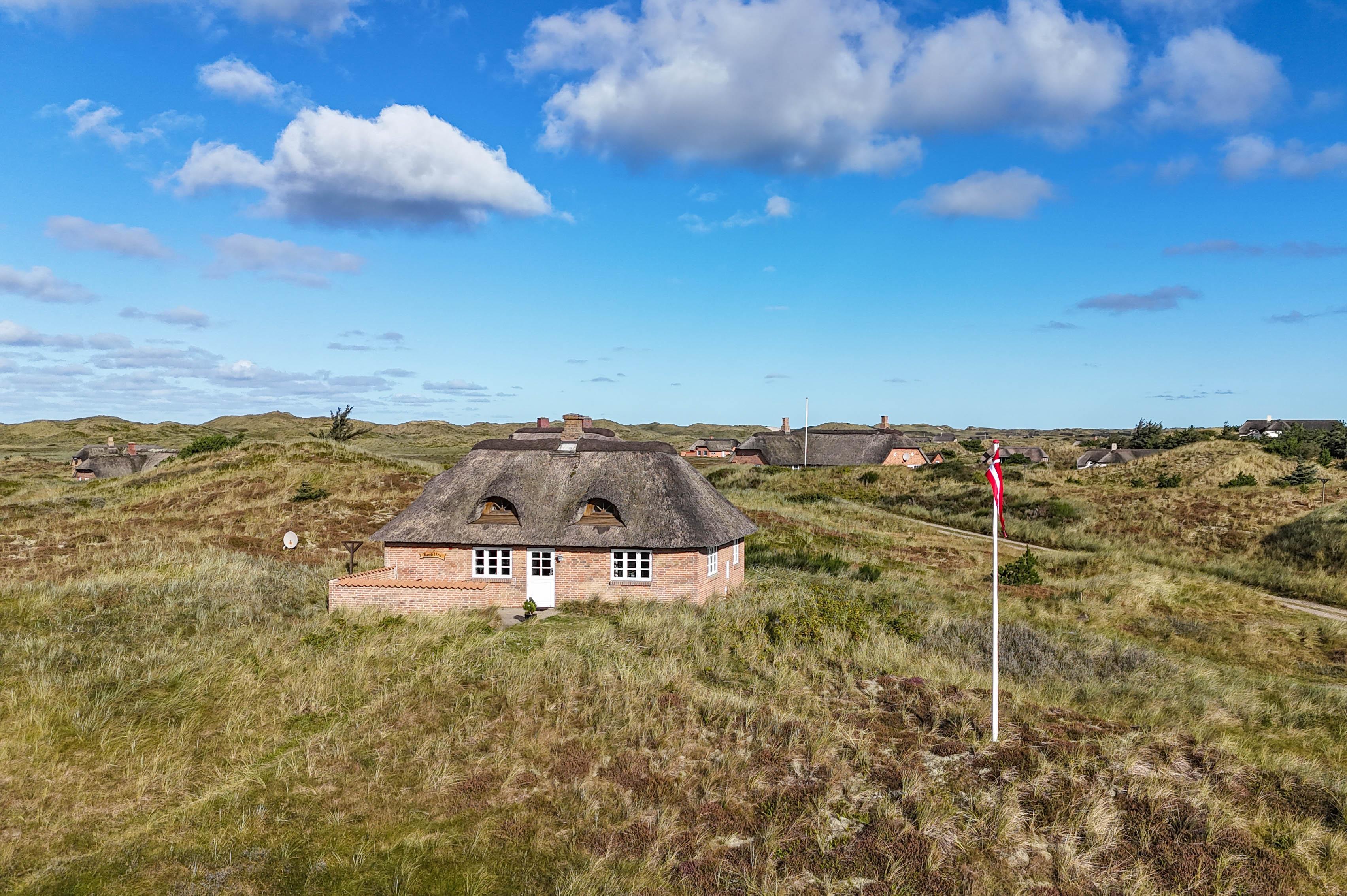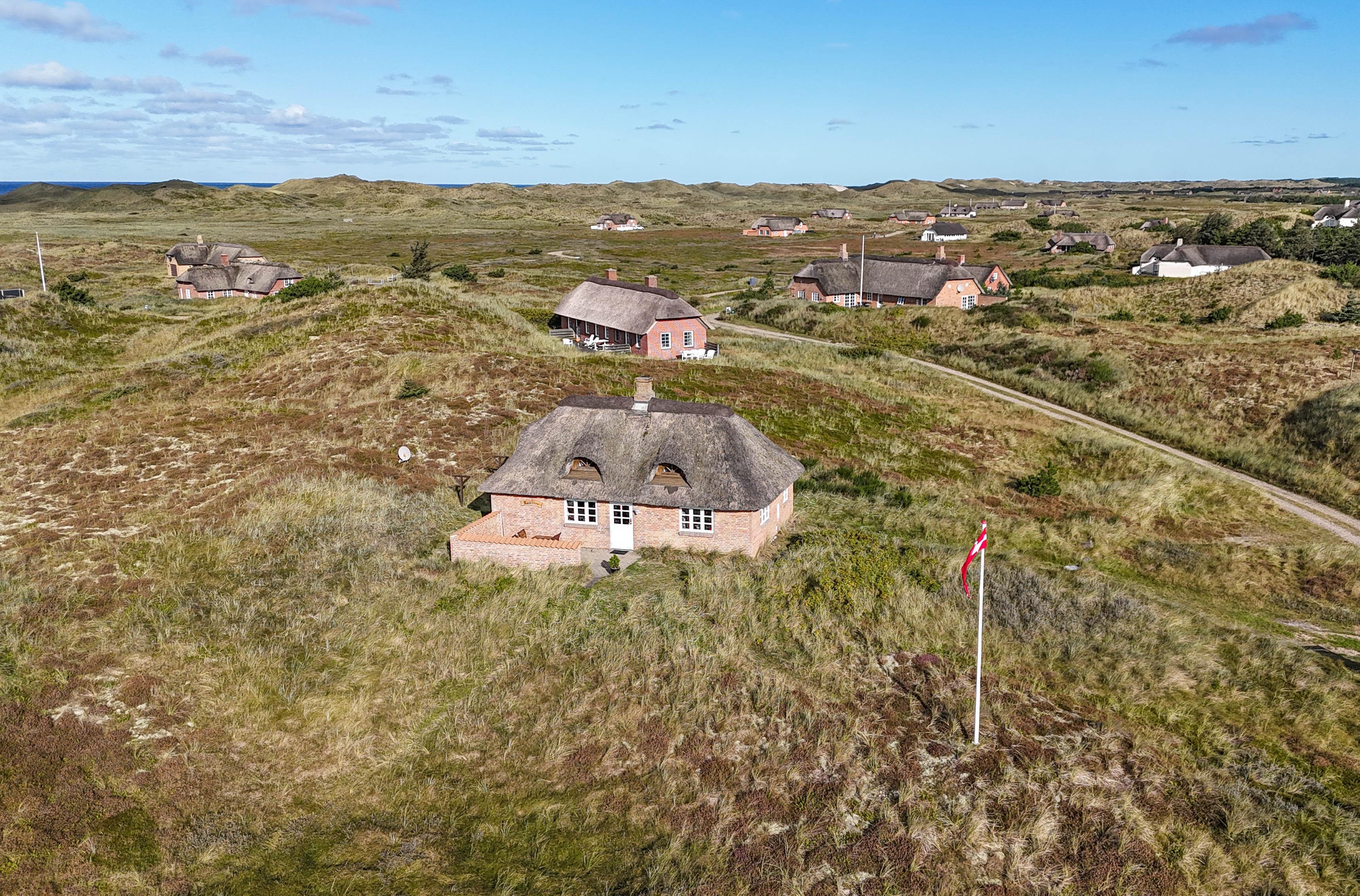 Huset ligger på en smuk 3.600 m² kuperet klitgrund, hvor I kan nyde udsigten over landskabet og finde læ blandt marehalm og klitter.