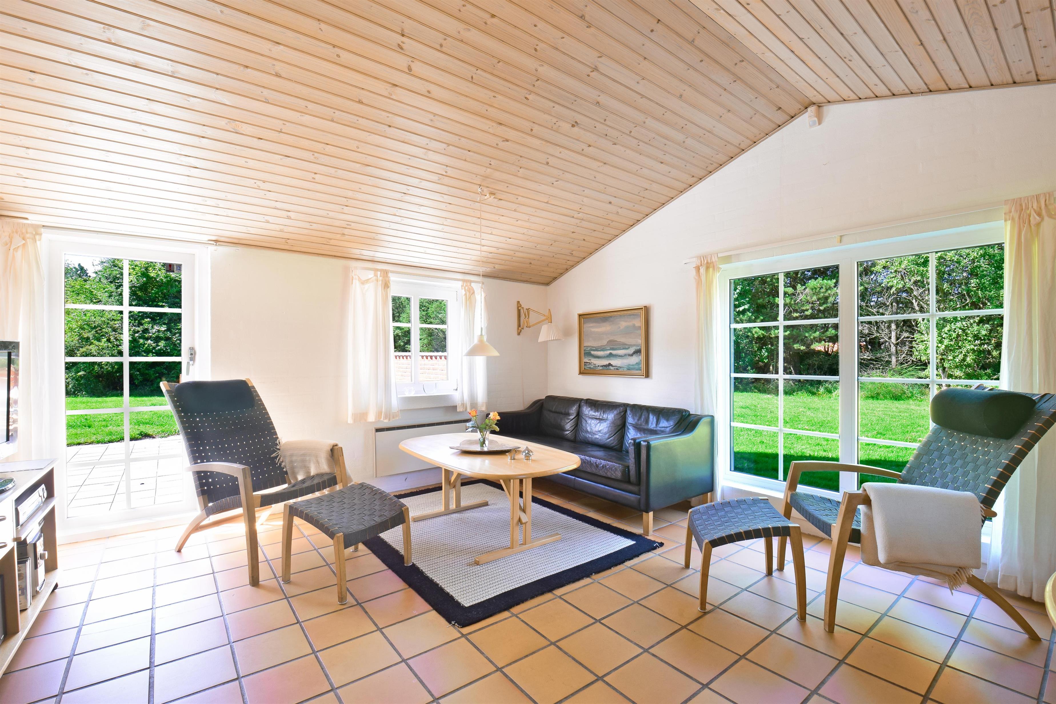 Fra stuen er der direkte udgang til den sydvendte terrasse, hvor solen kan nydes dagen igennem.