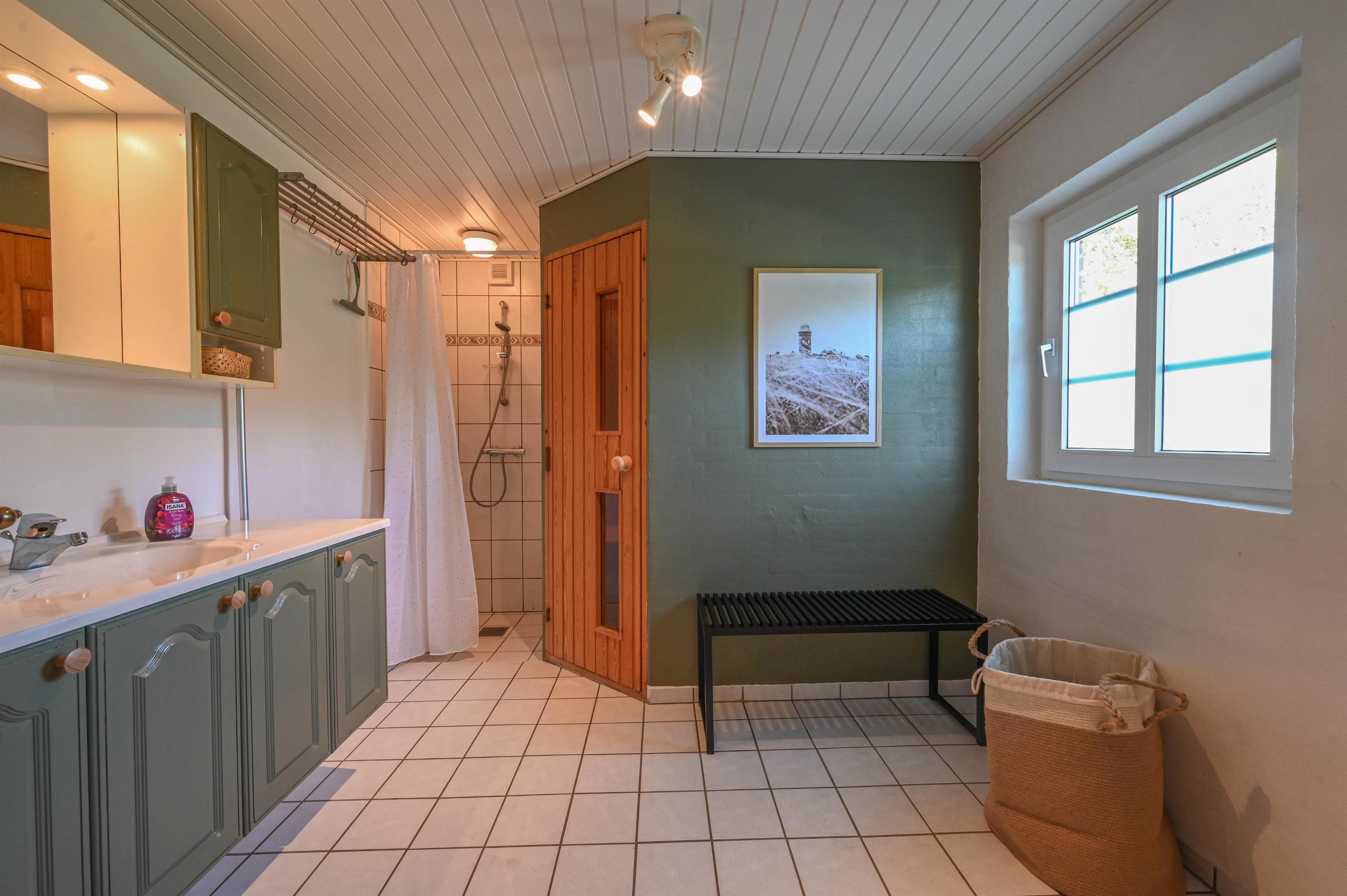 Huset er lyst og venligt indrettet med komfortable møbler, der indbyder til afslapning og samvær. Den store, flotte stue hænger naturligt sammen med det lyse, åbne køkken og den hyggelige spiseplads, hvor hele familien kan samles om gode måltider eller brætspil. Badeværelset er rummeligt og byder på sauna – perfekt til lidt ekstra velvære efter en lang dag i naturen.