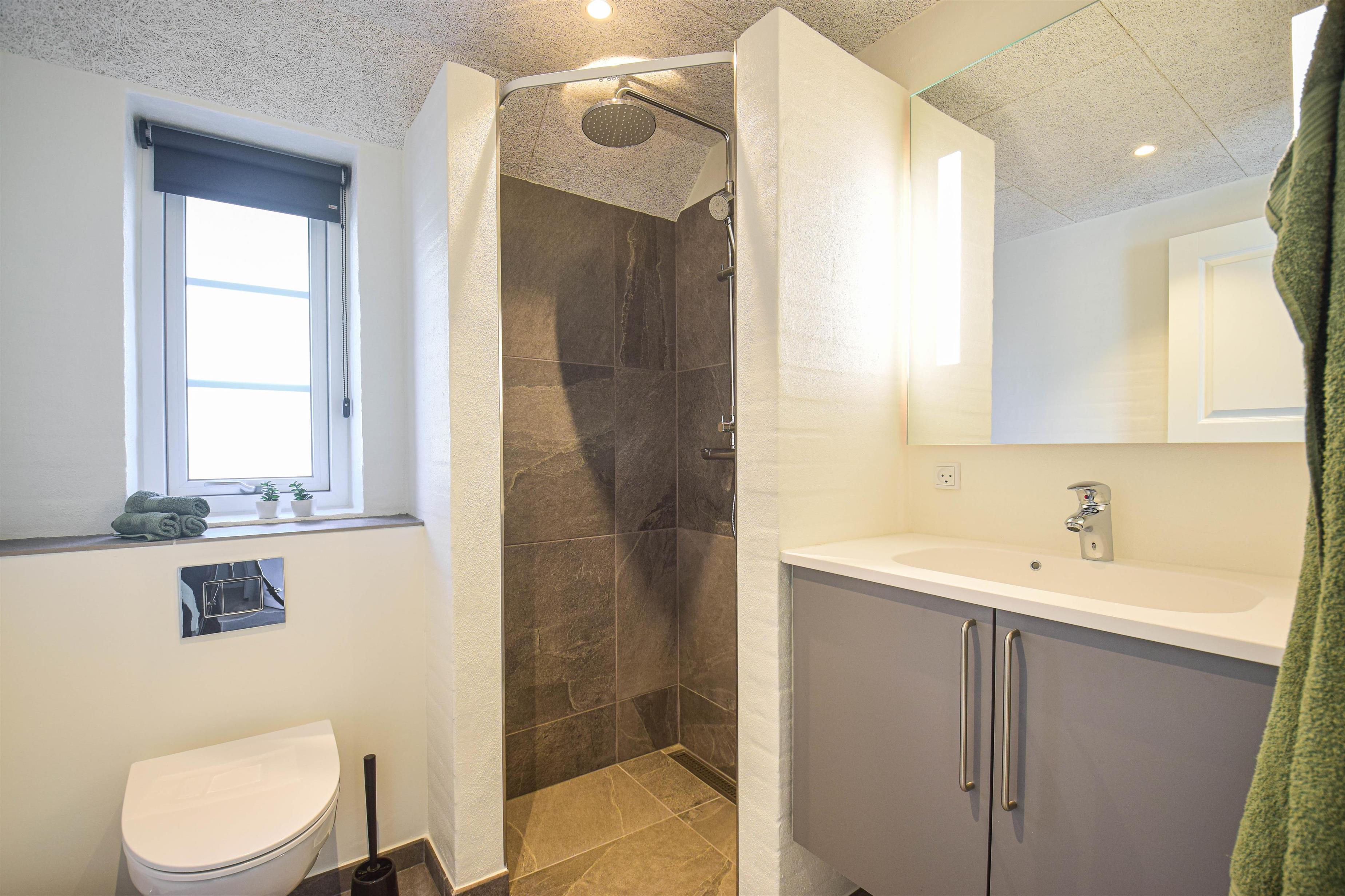 De 8 sovepladser fordeler sig på, 2 soveværelser, som er indrettet med dobbeltsenge, 2 soveværelser som er indrettet med to enkeltsenge. Huset har et stort badeværelse, med sauna, spa, brus. Derudover er der også et lille badeværelse med brus i huset. Der er gulvvarme i hele huset.