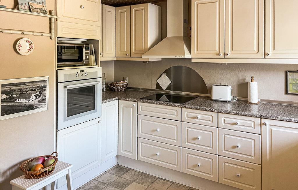 Dette rummelige og kærligt indrettede feriehus byder jer velkommen med en venlig atmosfære og masser af plads til harmoniske dage sammen med familien. Tryl lækre måltider frem, og sæt jer til rette i den åbne stue. Efter en lang dag i den friske havluft kan I tænde pejsen, bruge det store spisebord til en sjov spilleaften eller hygge jer i sofaen og se en spændende film.