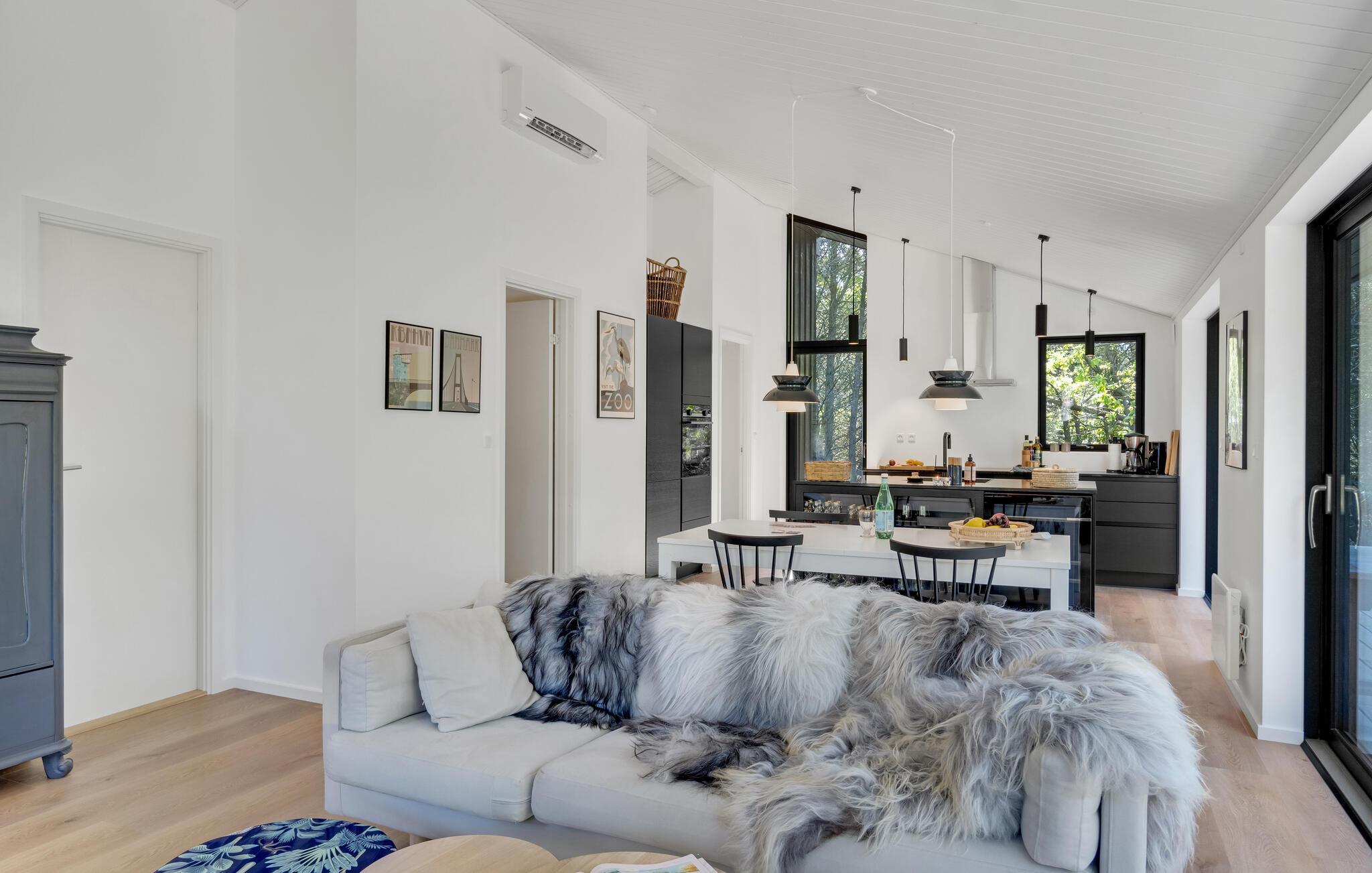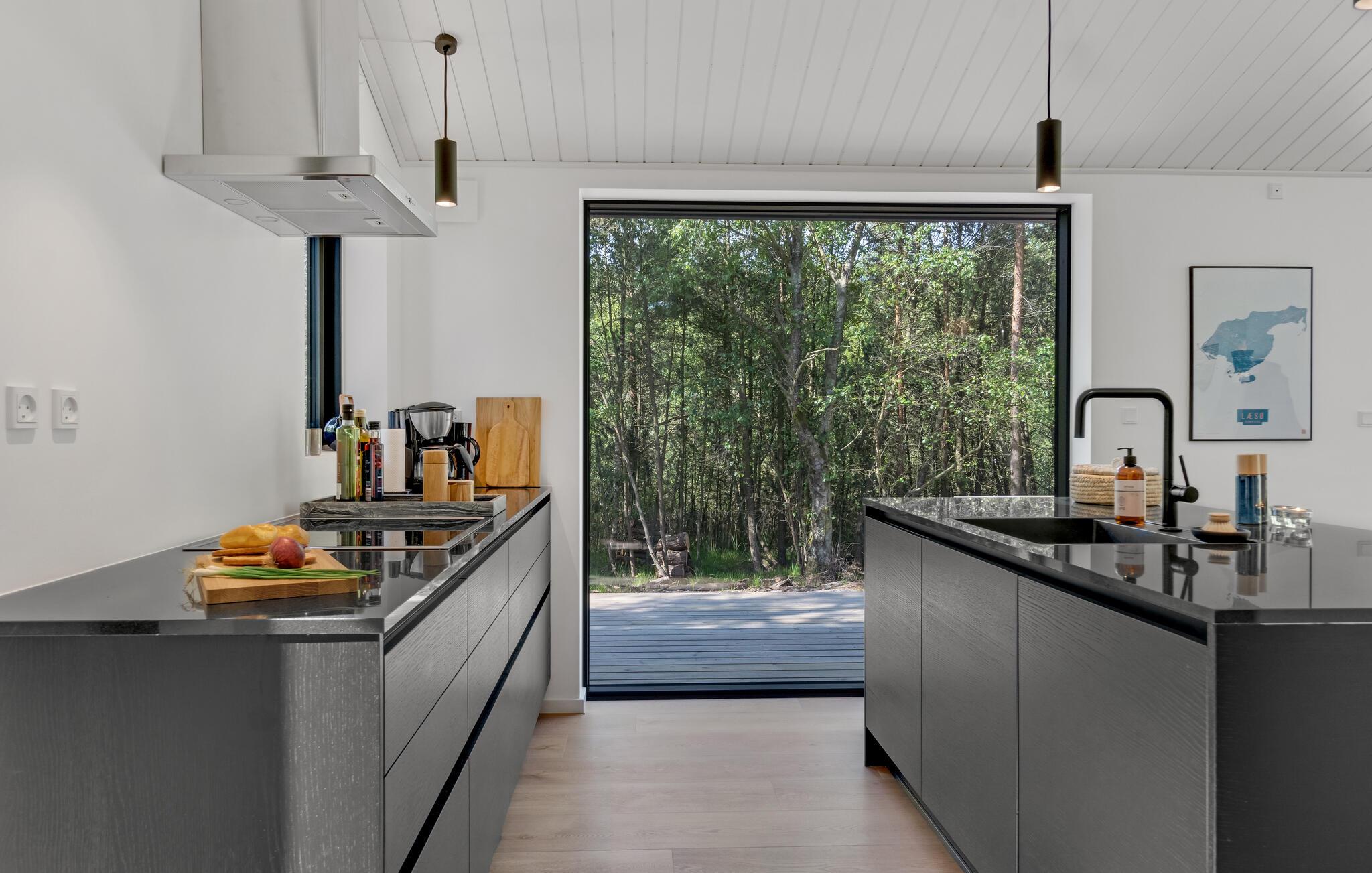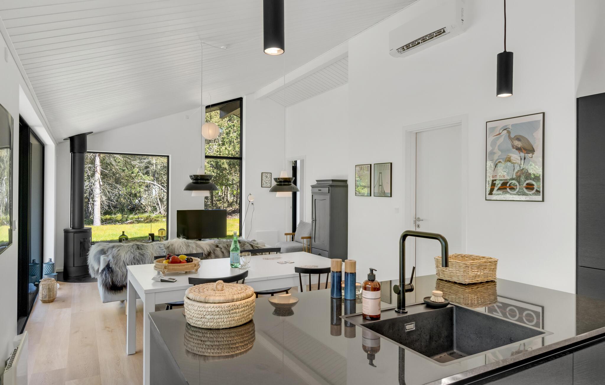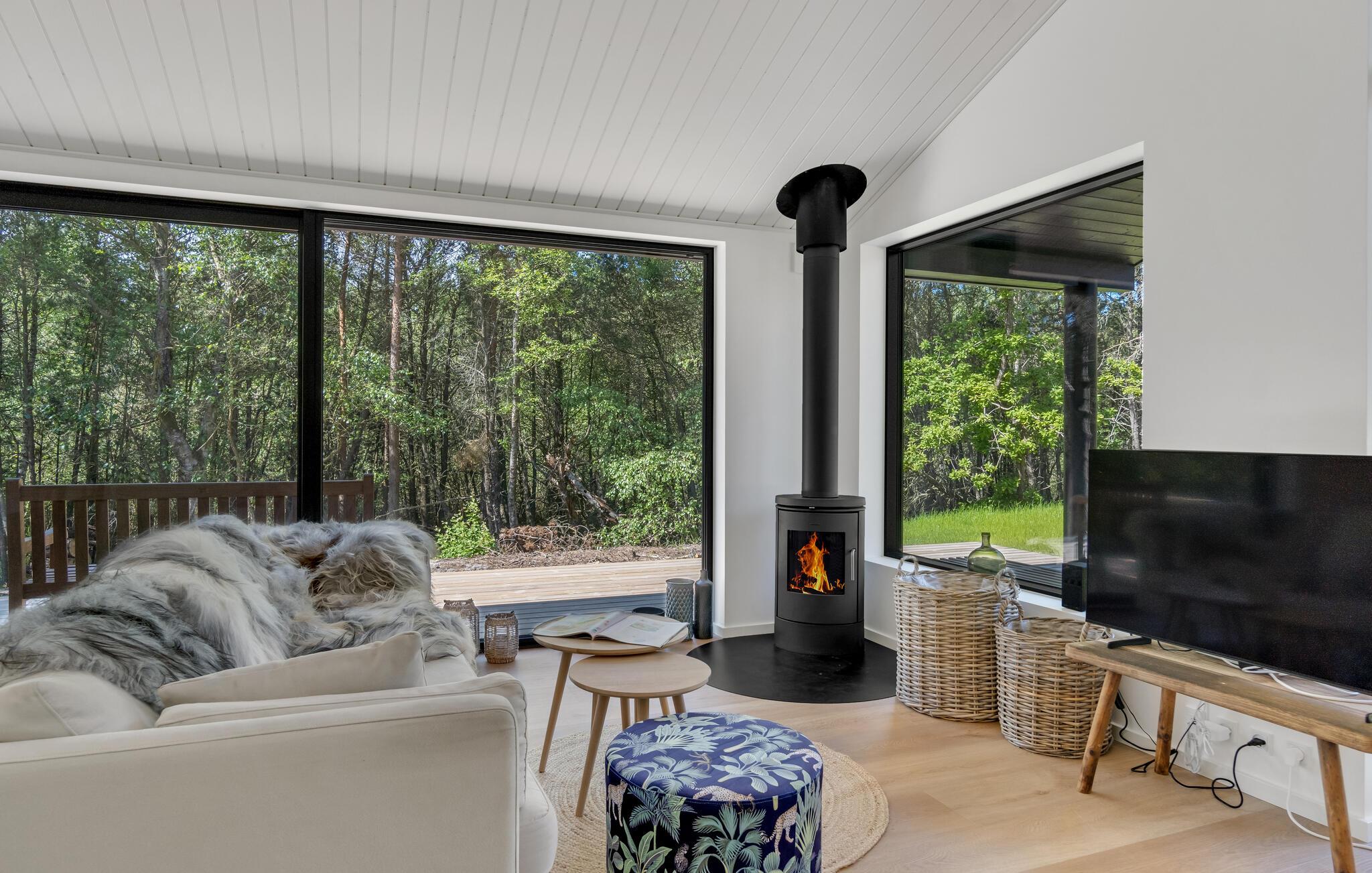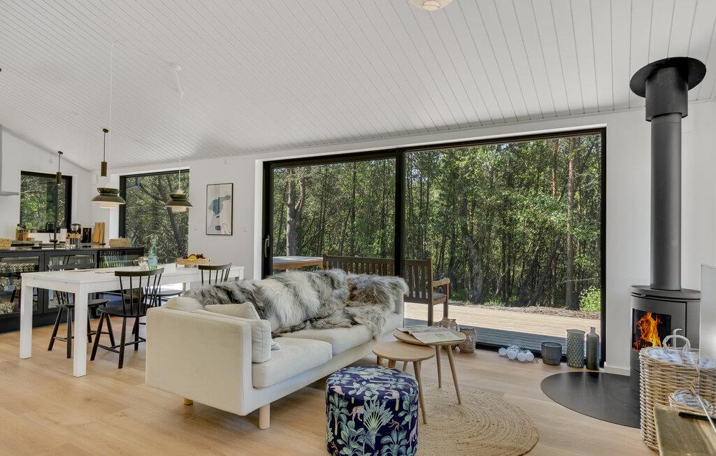 Moderne og idyllisk feriehus på Læsø med brændeovn, terrasse og natur tæt på.