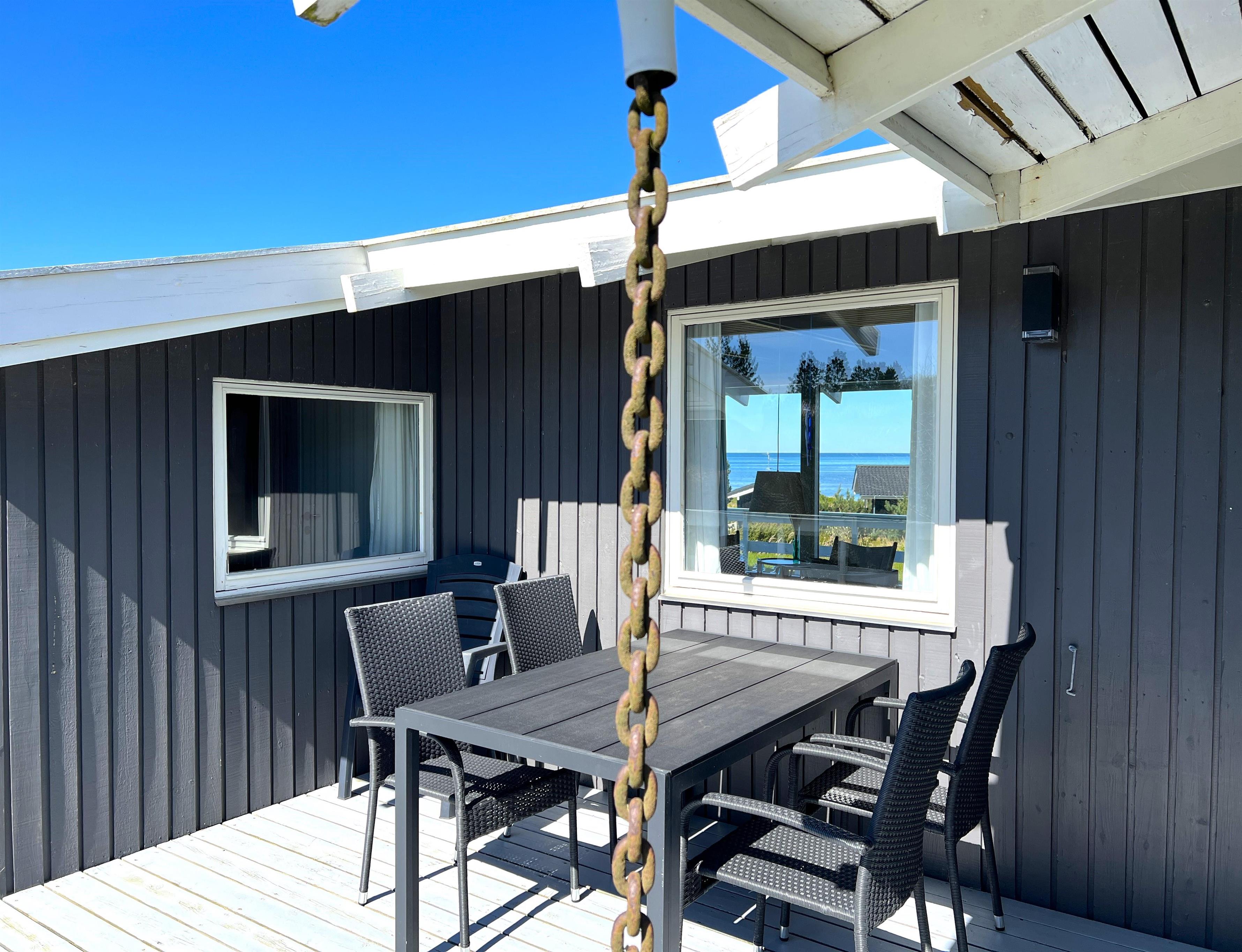 Et utroligt dejligt sommerhus med fantastisk havudsigt nord for Vesterø Havn på Gyvelvej. Husets unikke beliggenhed skaber rammerne for en ferie i særklasse. Selve huset har et dejligt stort fint indrettet køkken-alrum, hvor man straks fornemmer kærligheden til Læsø og den helt rigtige sommerhusatmosfære. Udover det store alrum er der tre soveværelser, et med dobbeltseng, et med to enkeltsenge og et med en sovesofa. Der er et pænt badeværelse med brus. Fra den store stue er der fuld havudsigt og udgang til en af husets mange træterrasser. Terrassen i forlængelse af stuen er overdækket, og her kan man nyde de sene, smukke solnedgange og udsigten til Nordre Rønner. Omkring huset er der flere dejlige solkroge med læ og havudsigt og mange forskellige havemøbler til rådighed. Der er fem minutters gang til en af Læsøs bedste badestrande og til Vesterø Havns hyggelige havnemiljø med fiskehandler, restauranter, dagligvarebutikker og shopping.