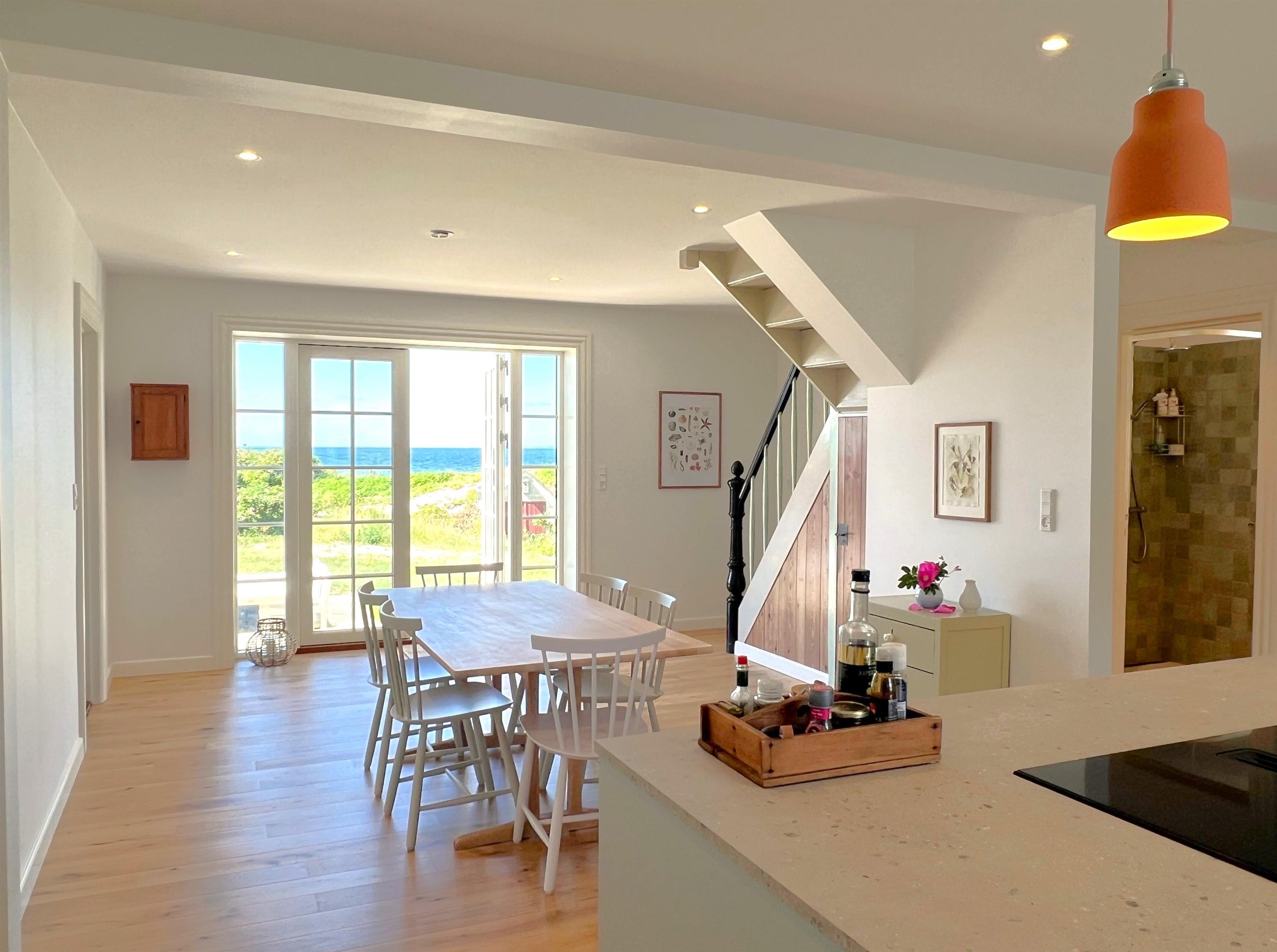 Der er anlagt ny terrasse mod havet, der gør det muligt at nyde solen og udsigten det meste af dagen - solnedgangen over havet er simpelthen magisk fra terrassen og et fantastisk sted at afslutte en skøn, oplevelsesrig feriedag på Læsø.