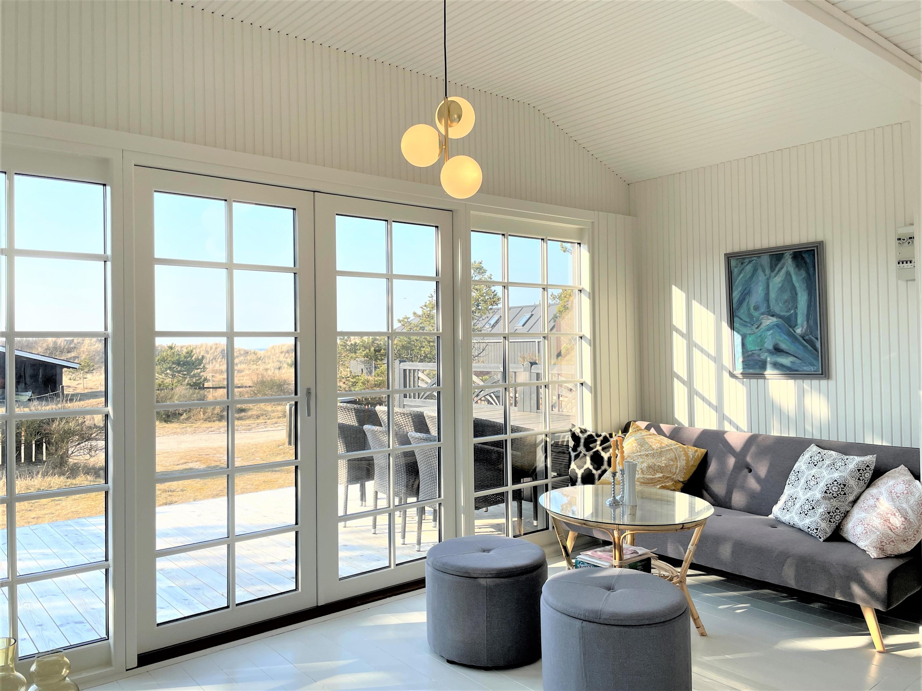 Her kan du både tage på en dejlig sommerferie tæt på Kattegats bølger, eller nyde en vinterferie i læ bag klitterne med sofahygge og varme fra brændeovnen.