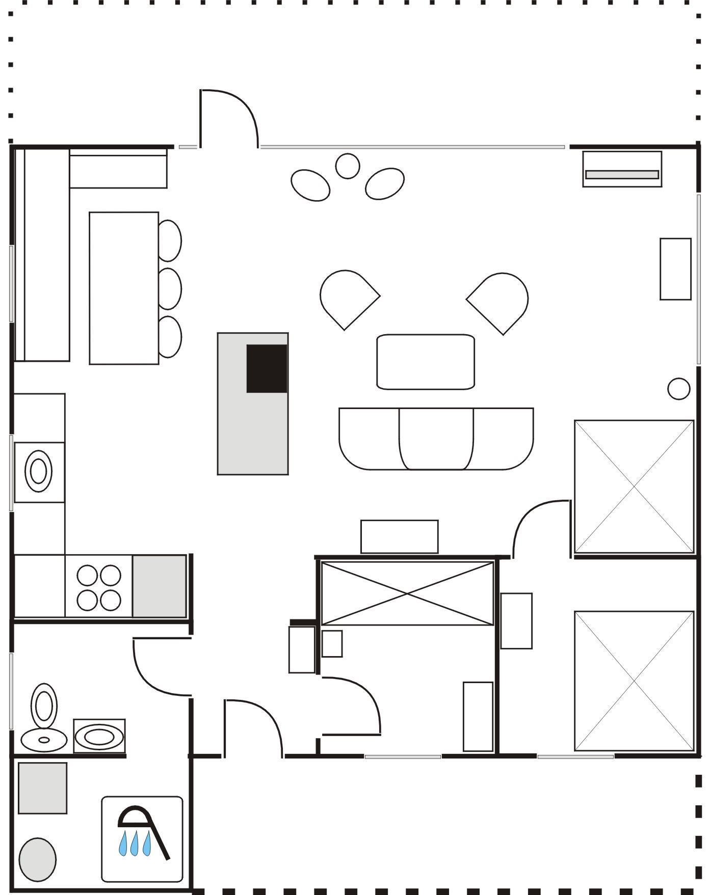 Der er i alt 6 sovepladser fordelt på en dobbeltseng i kammeret, 1 køjeseng i værelset og en dobbeltseng i stuerummet, der alternativt kan laves til 2 enkeltsenge eller day-bed, hvorfra man med fordel nyder morgenkaffen, udsigten og pejsen.