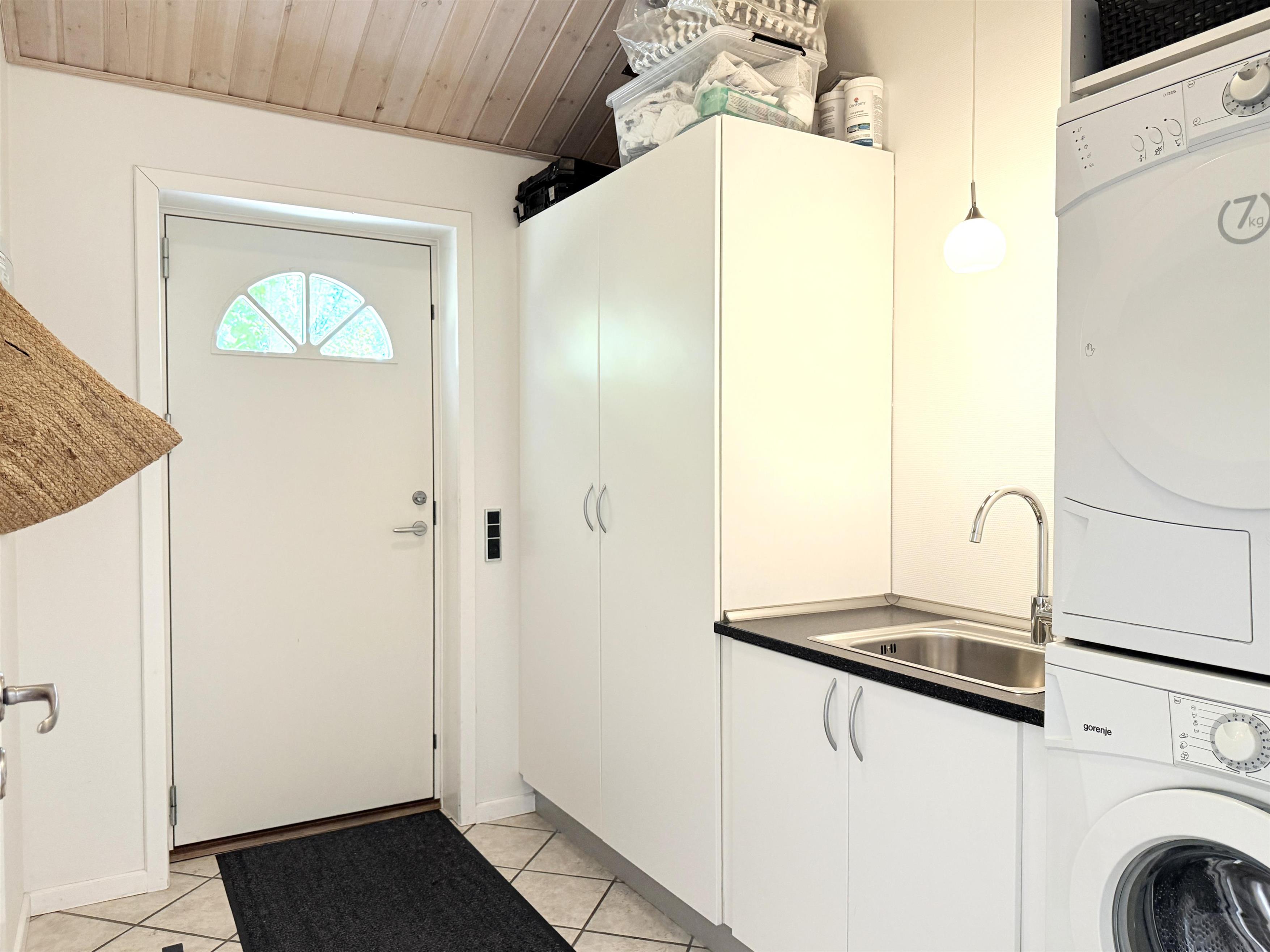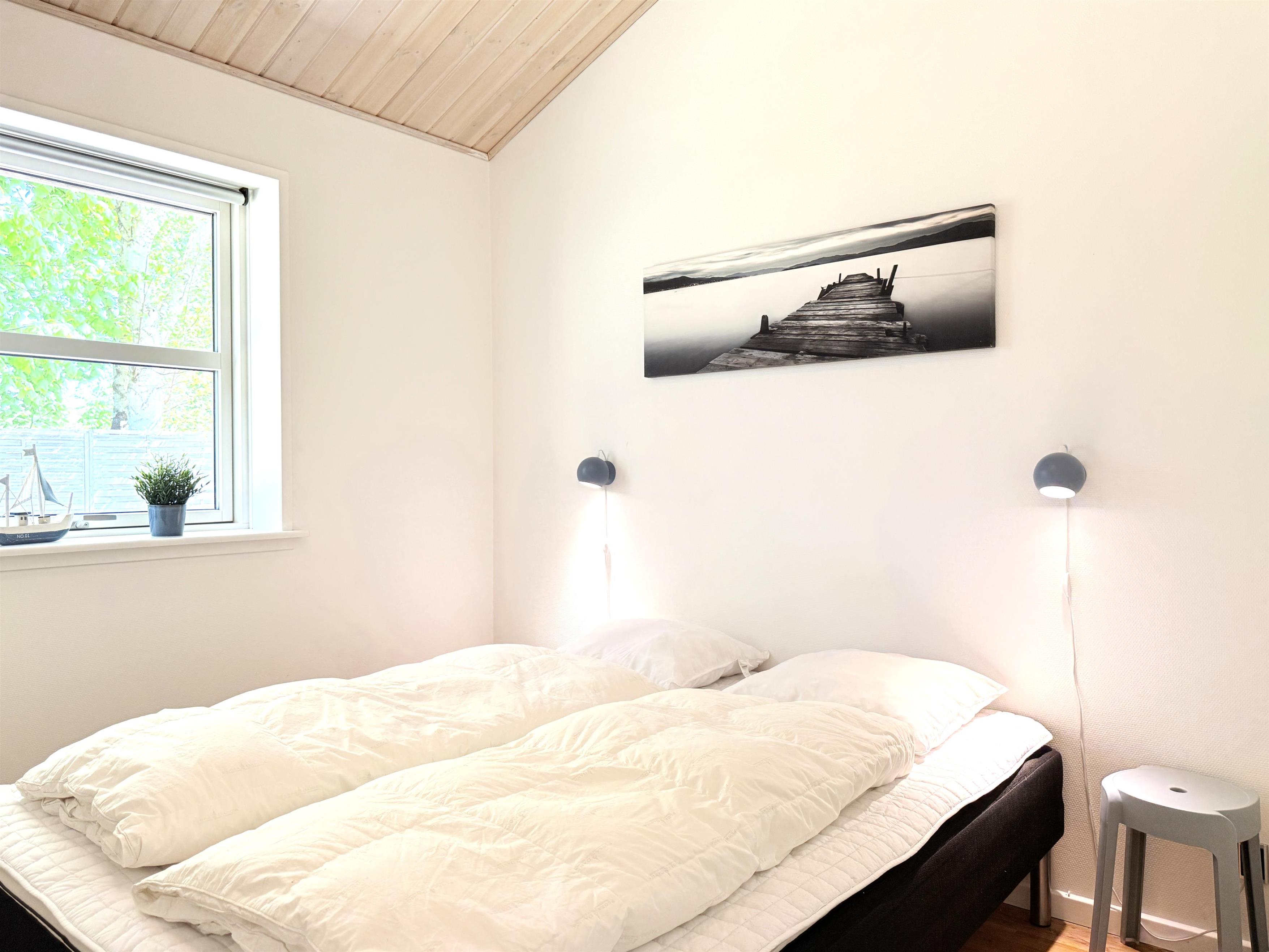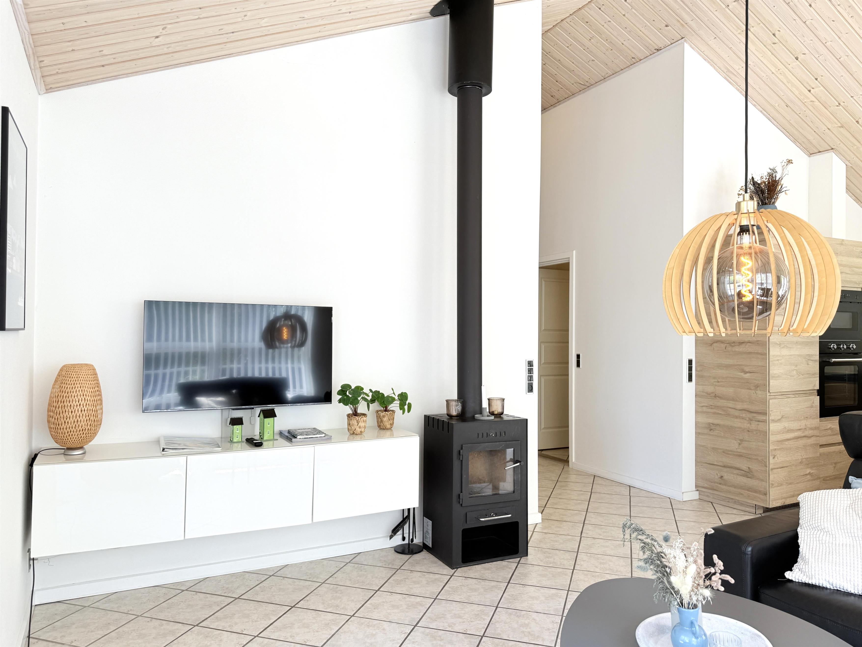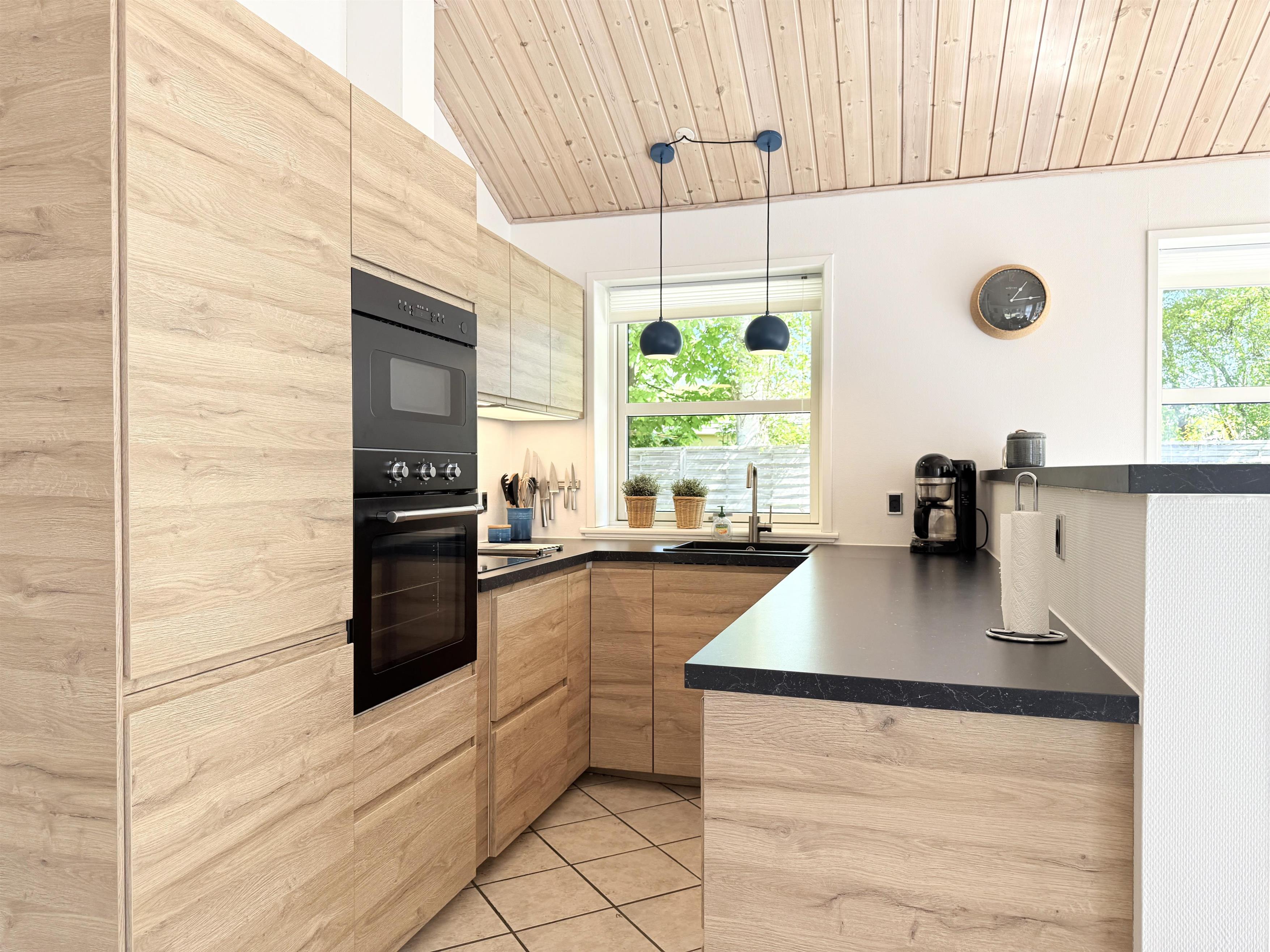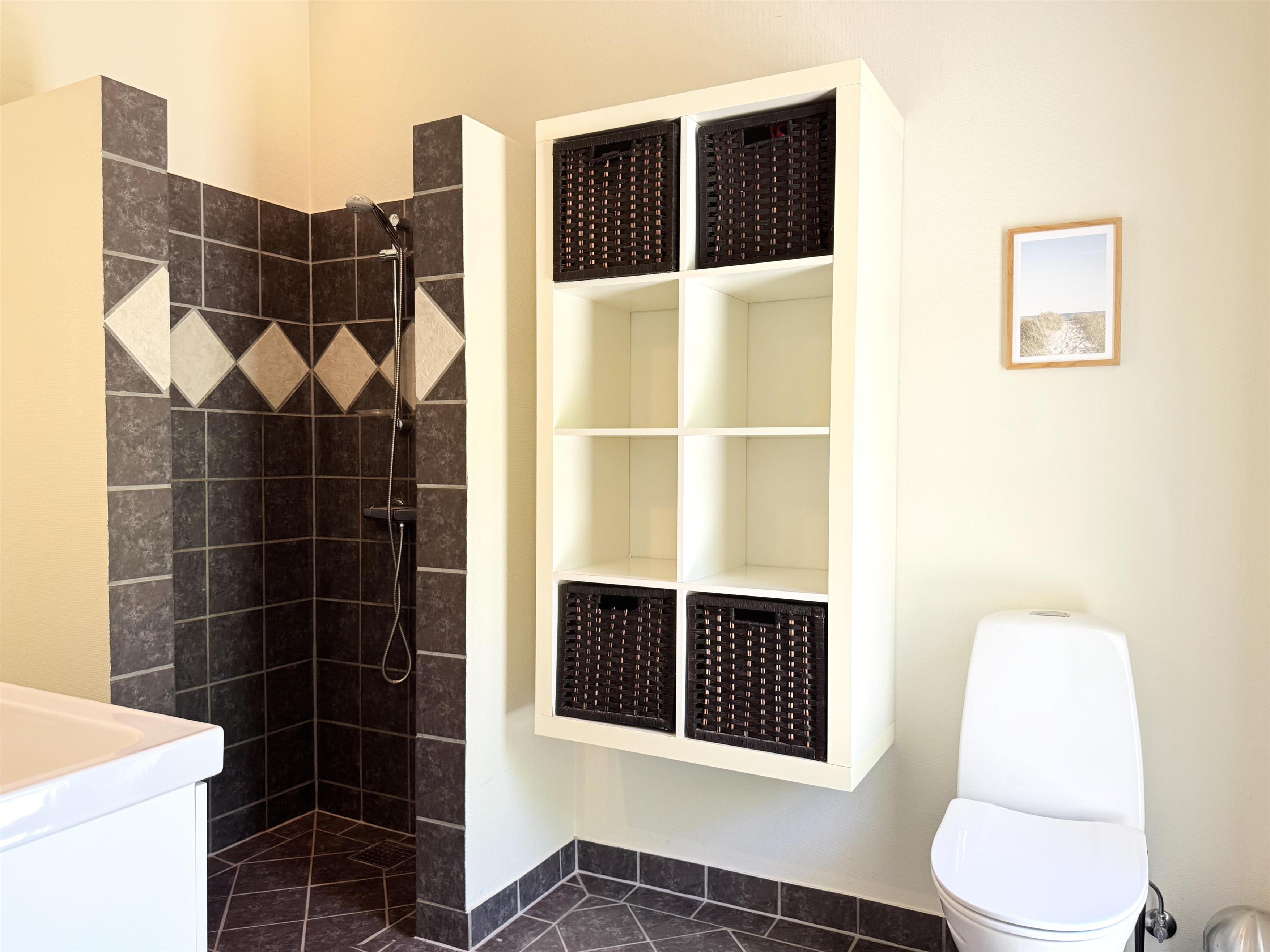 Huset har et skønt, moderne køkken-alrum med spiseplads og hyggeligt sofaarrangement, hvor der er plads til den store familie. Der er tre gode soveværelser, hvoraf to har dobbeltsenge og det tredje har to enkeltsenge. Der er god skabsplads og yderligere en rummelig hems med to ekstra sovepladser. Der er hele to flotte, store badeværelser med brus, og et pænt bryggers med vaskemaskine og tørretumbler. Huset har også sauna i forbindelse med det største badeværelse. Der er endvidere installeret vildmarksbad pr 1. marts. På de store træterrasser kan husets dejlige solkroge og havemøbler benyttes, og der er rig mulighed for skønne grillaftener.