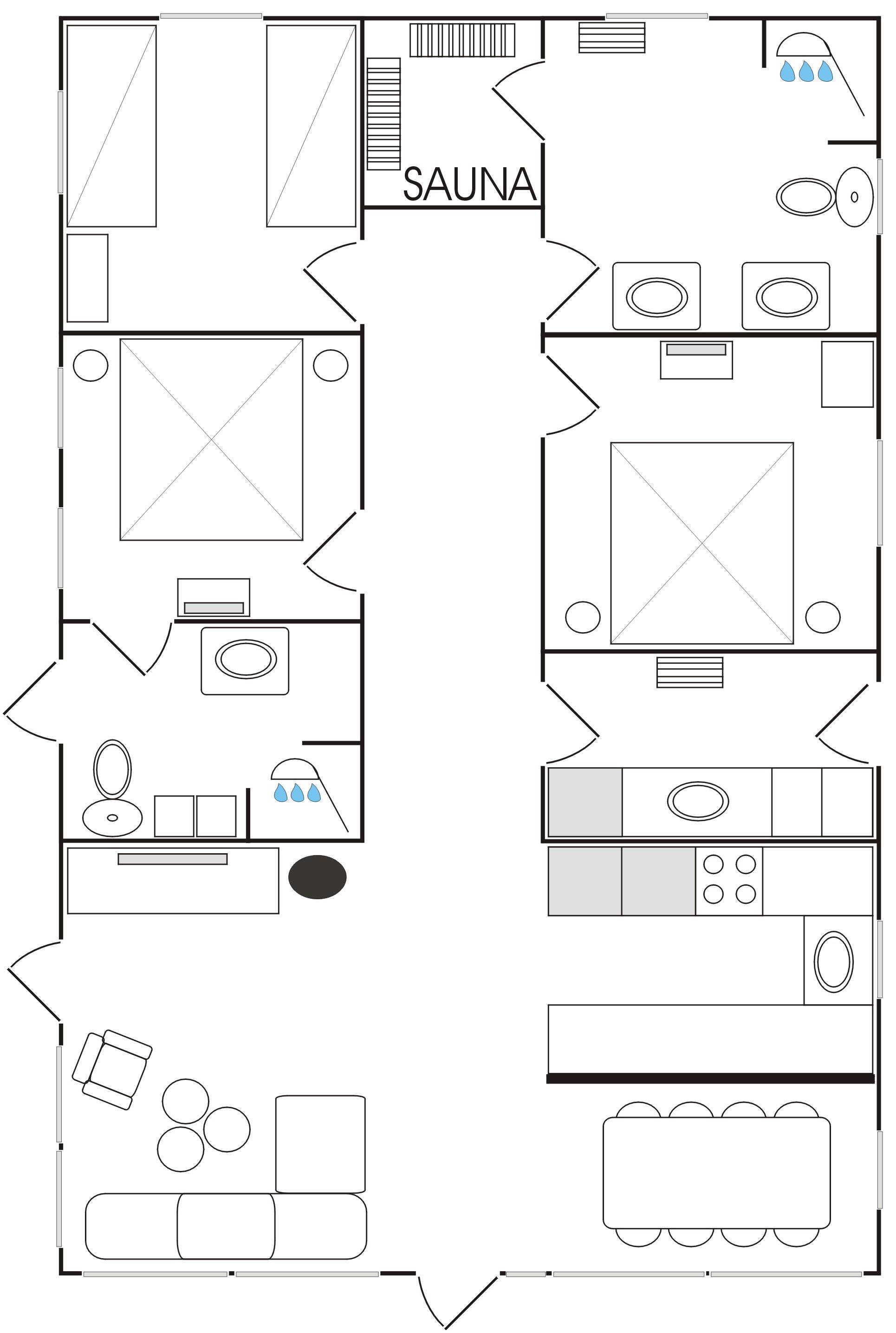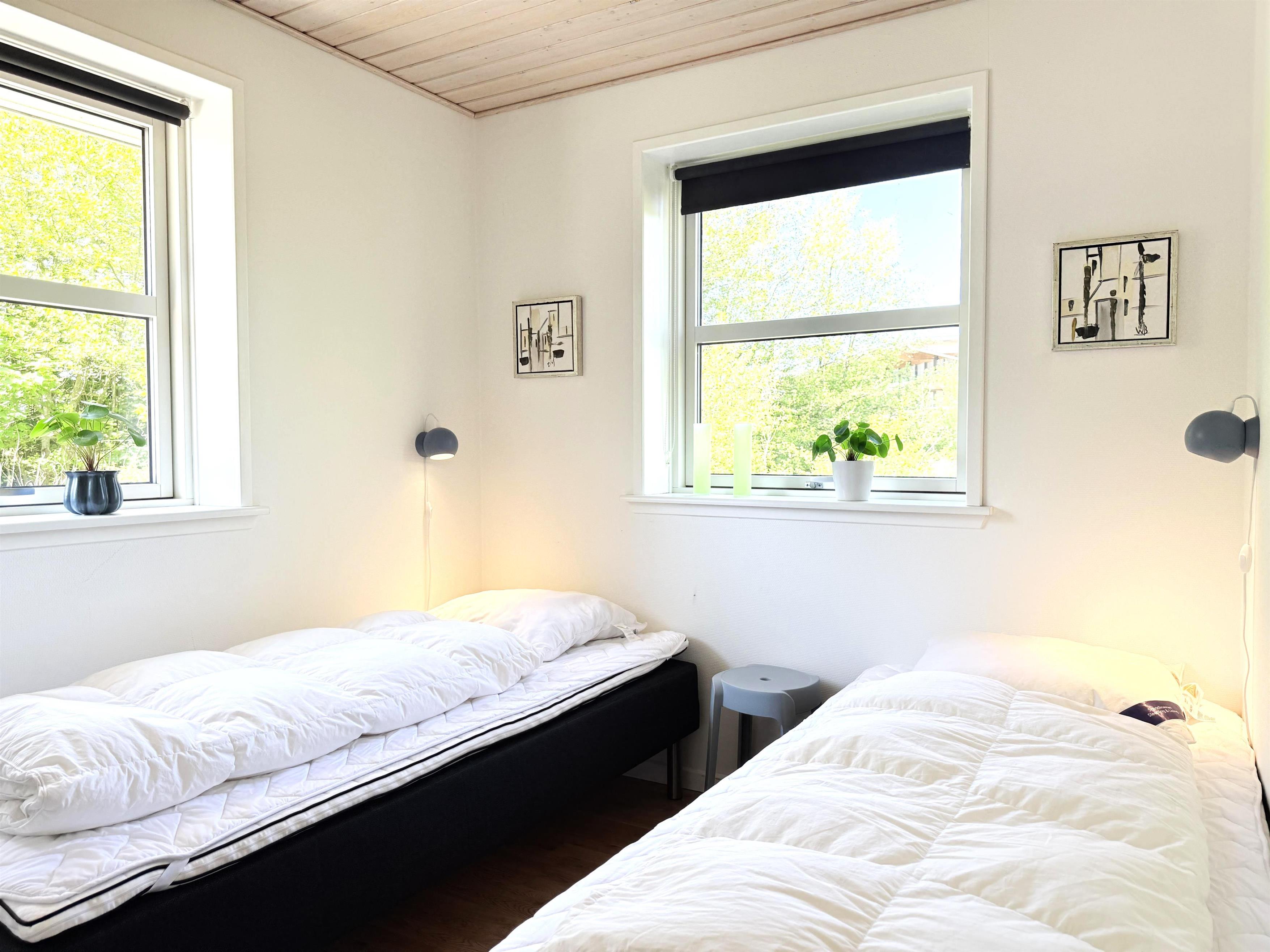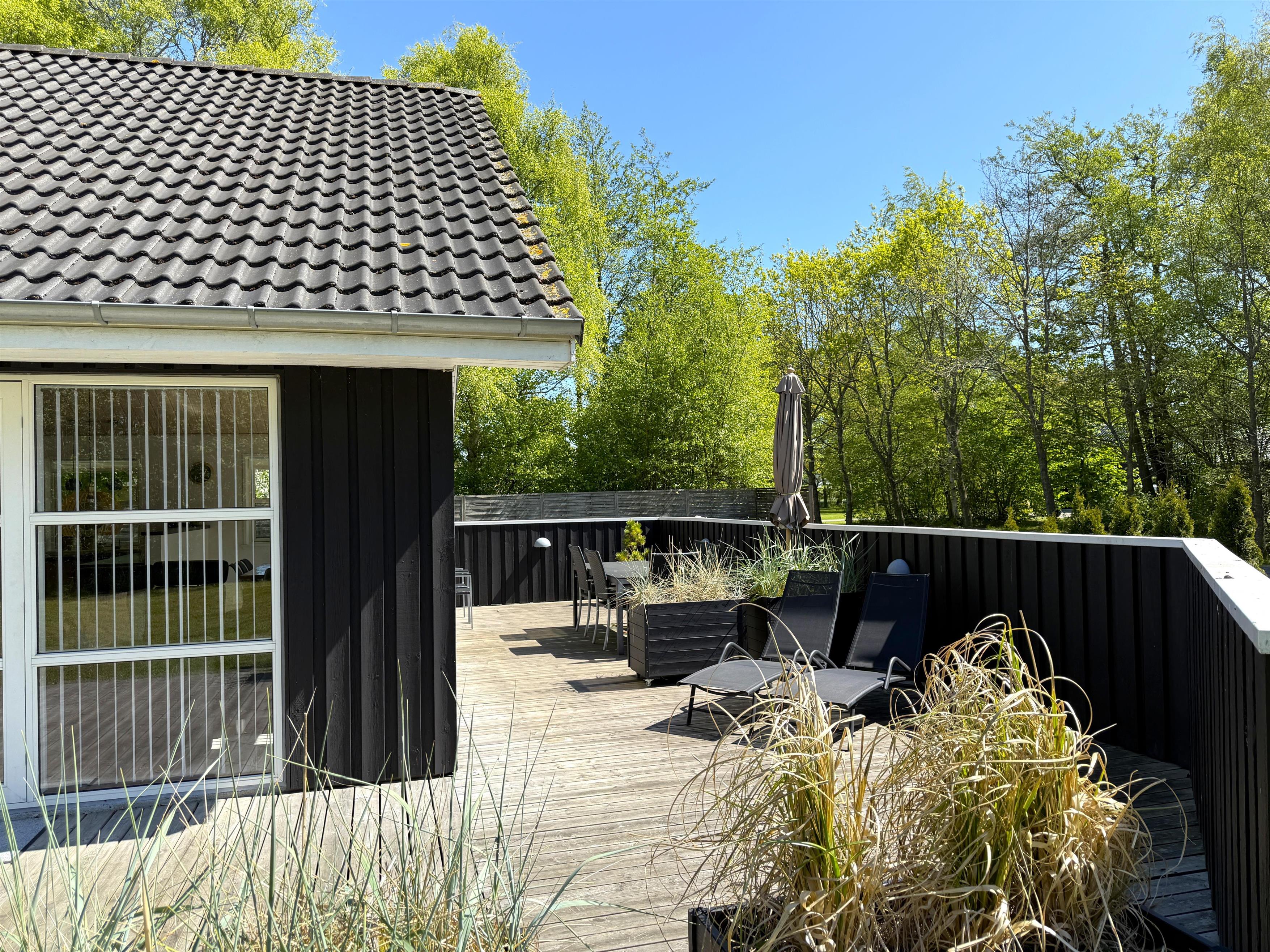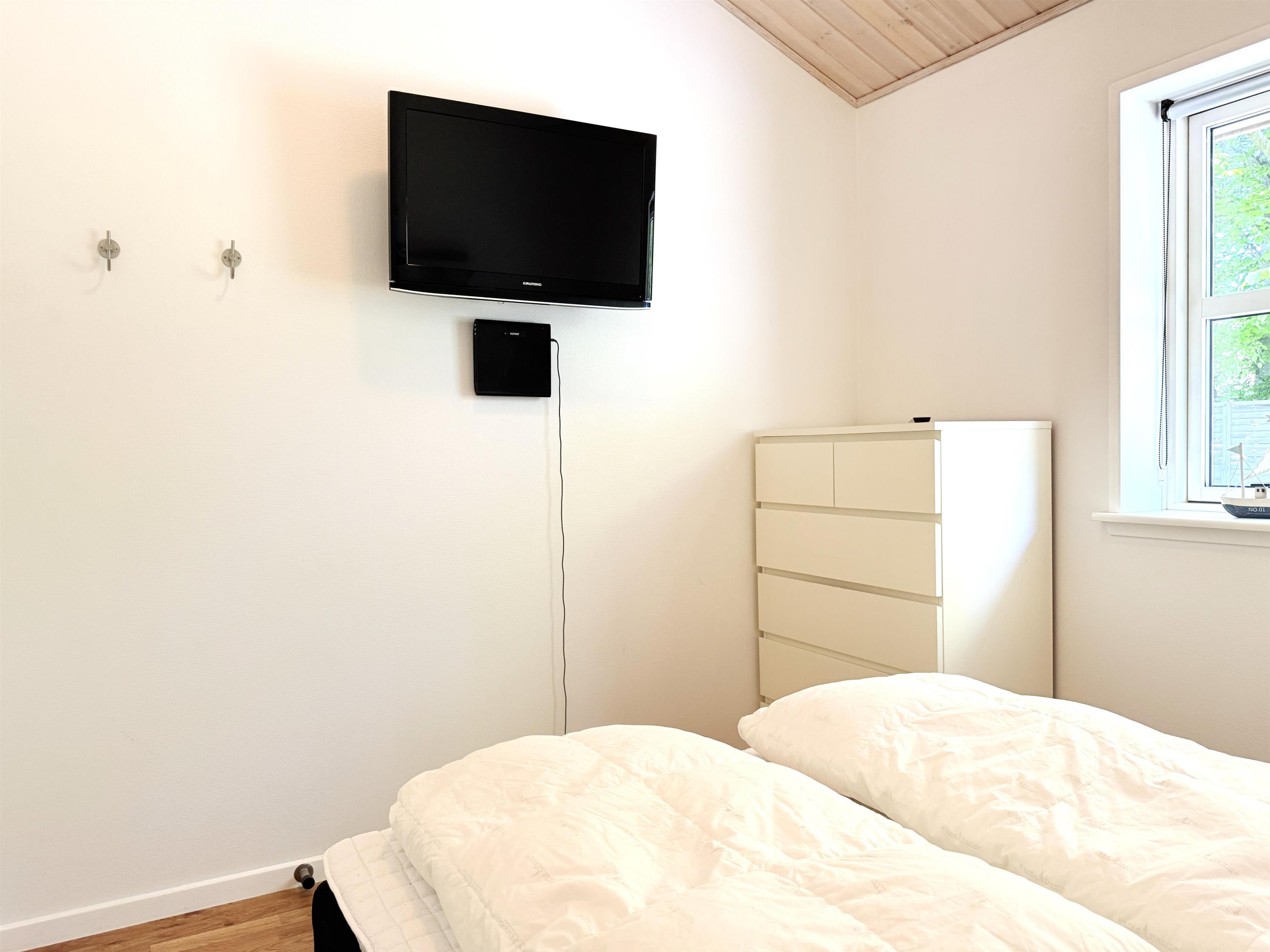 Huset har et skønt, moderne køkken-alrum med spiseplads og hyggeligt sofaarrangement, hvor der er plads til den store familie. Der er tre gode soveværelser, hvoraf to har dobbeltsenge og det tredje har to enkeltsenge. Der er god skabsplads og yderligere en rummelig hems med to ekstra sovepladser. Der er hele to flotte, store badeværelser med brus, og et pænt bryggers med vaskemaskine og tørretumbler. Huset har også sauna i forbindelse med det største badeværelse. Der er endvidere installeret vildmarksbad pr 1. marts. På de store træterrasser kan husets dejlige solkroge og havemøbler benyttes, og der er rig mulighed for skønne grillaftener.