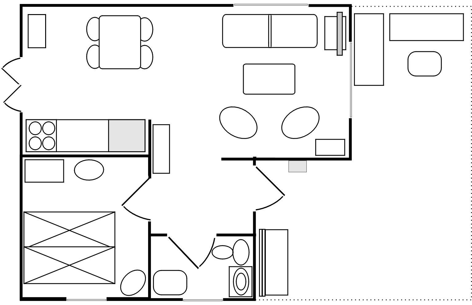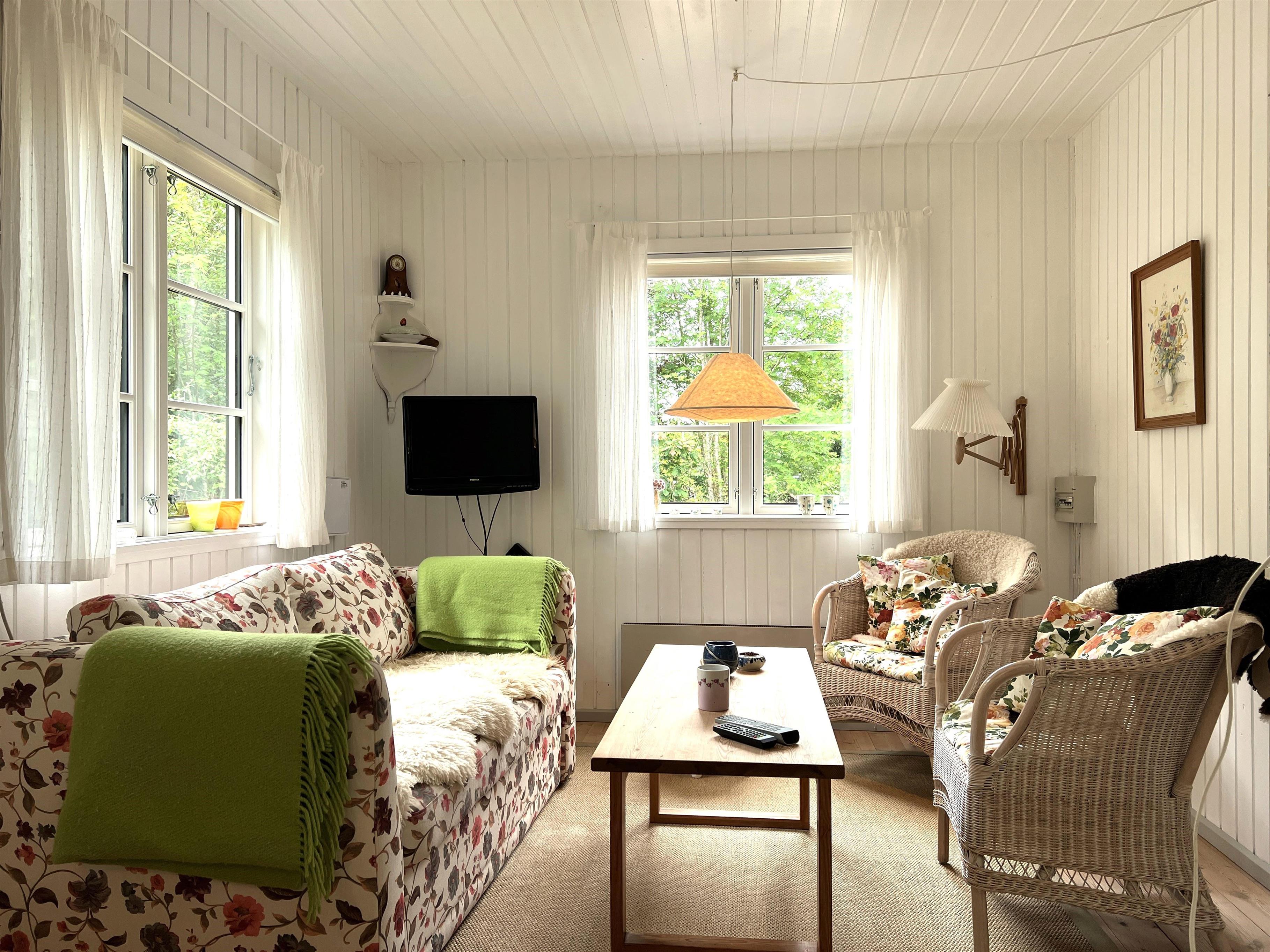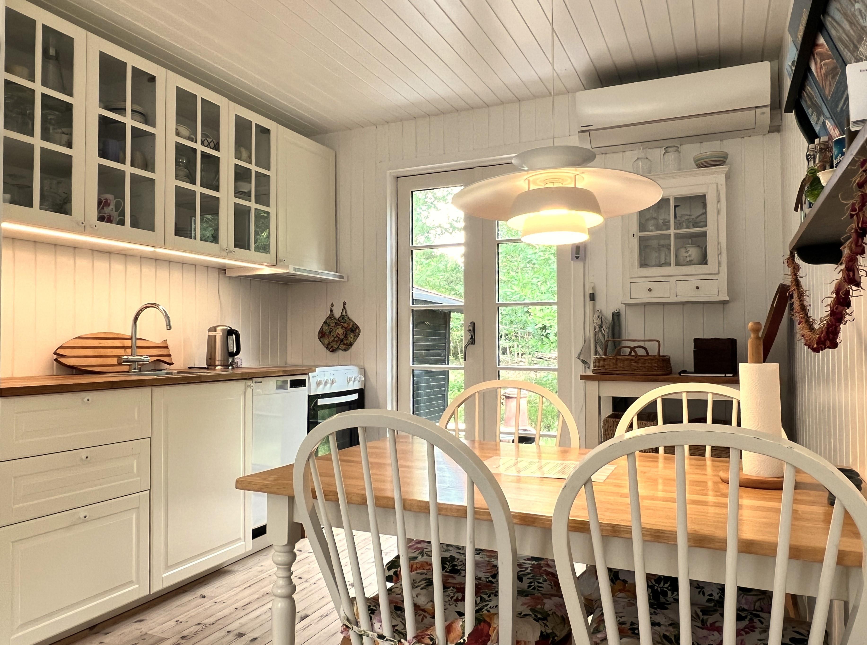 Dejligt lille charmerende feriehus med fint nyt køkken og hyggelig stue med behagelige møbler. Soveværelse med dobbeltseng og badeværelse med toilet og brus.