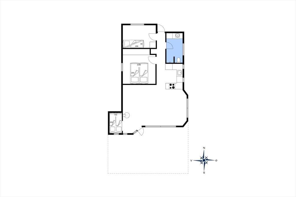 Sommerhuset er indrettet med kombineret køkken og ophold – og spisestue. Køkken med køleskab, fryser, elkomfur/ovn og opvaskemaskine. Lys opholdsstue med udgang til terrassen. I opholdsstuen er der brændeovn samt tv og dvd. Badeværelse med bruseniche, toilet, håndvask, vaskemaskine og gulvvarme. 2 soverum. 1 med dobbeltseng, 1 med 1 køjeseng (190 x 70 cm.) Desuden alkove i stuen med mulighed for 1-2 sovepladser. Huset opvarmes med brændeovn, elvarme og varmepumpe som også har køl.