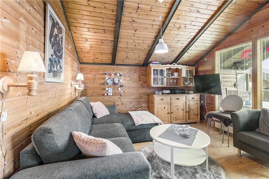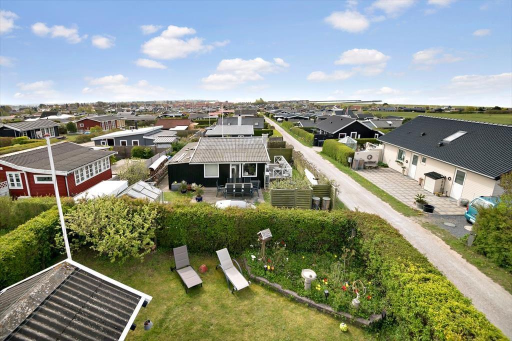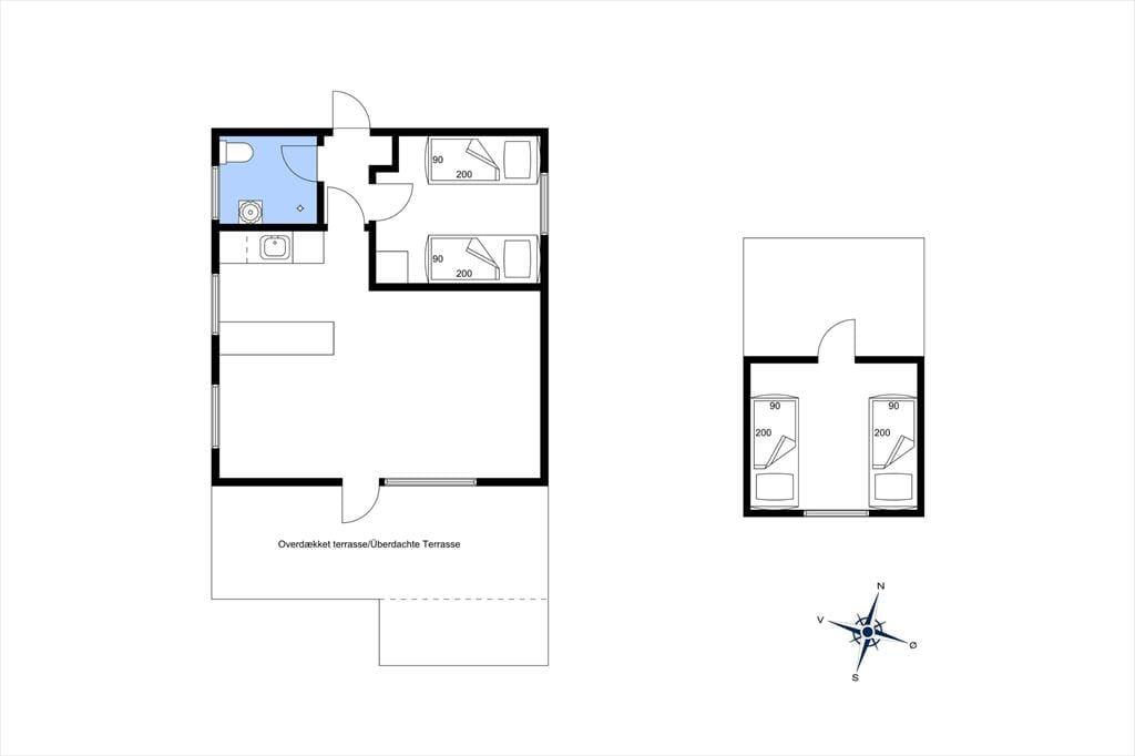 Træhus, beliggende på lukket stikvej og delvis udsigt til havet. Entré, komb. opholds-/spisetue med udgang til terrasse. Åbent køkken med køleskab inkl. frostboks, ovn, 2 kogeplader. 1 soverum med 2 enkeltsenge. Bad med bruseniche, håndvask, toilet. Endvidere anneks med 2 enkeltsenge. Annex kan kun anvendes maj-sept.