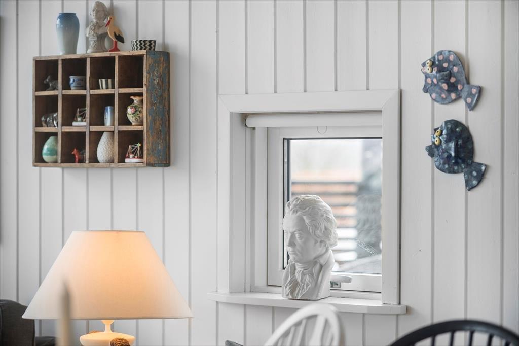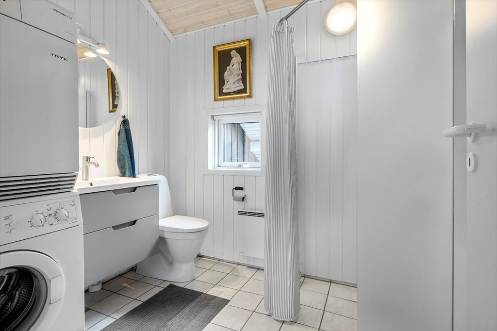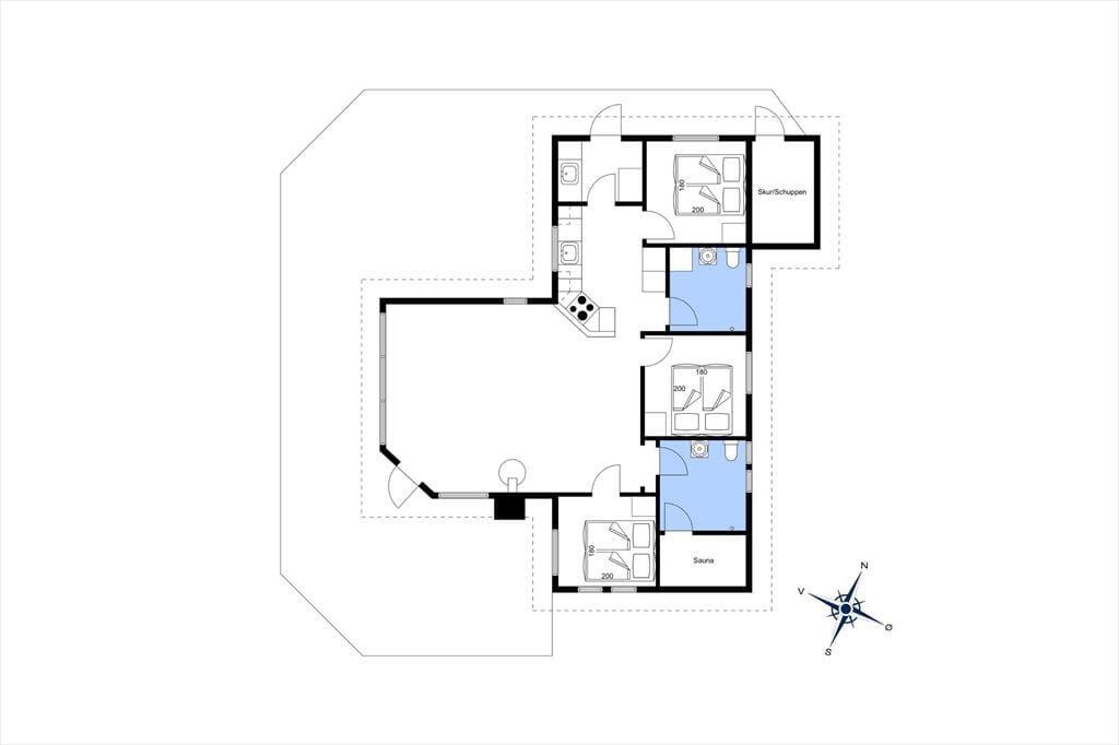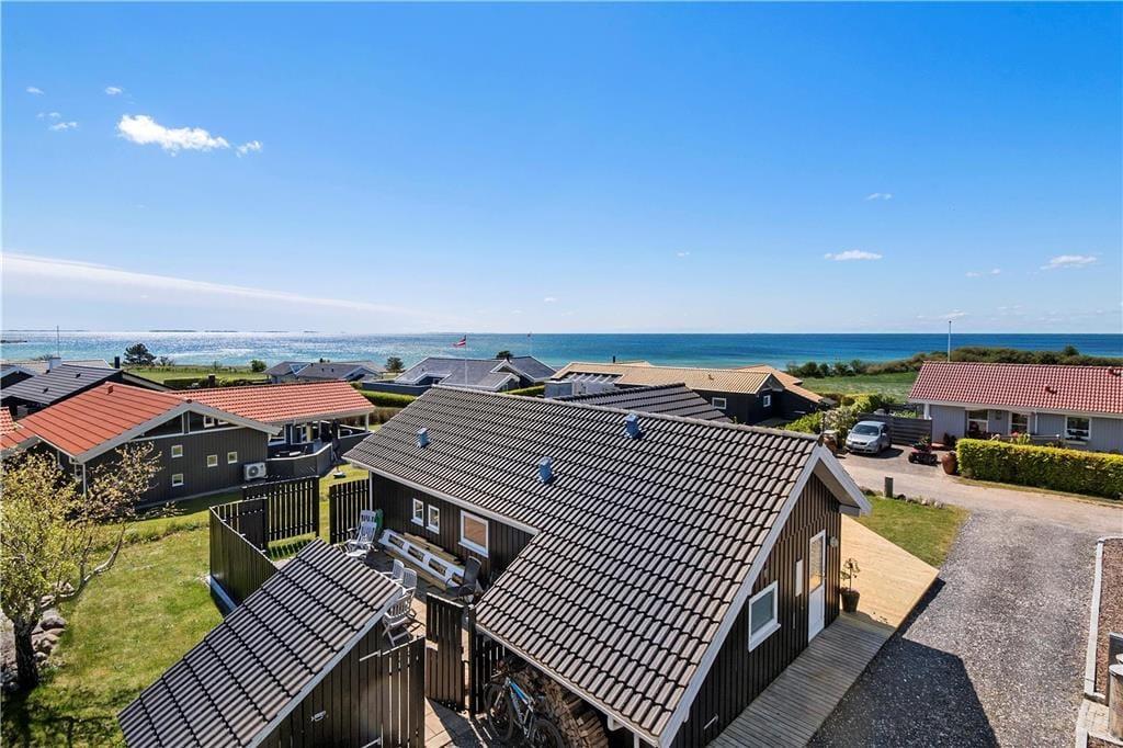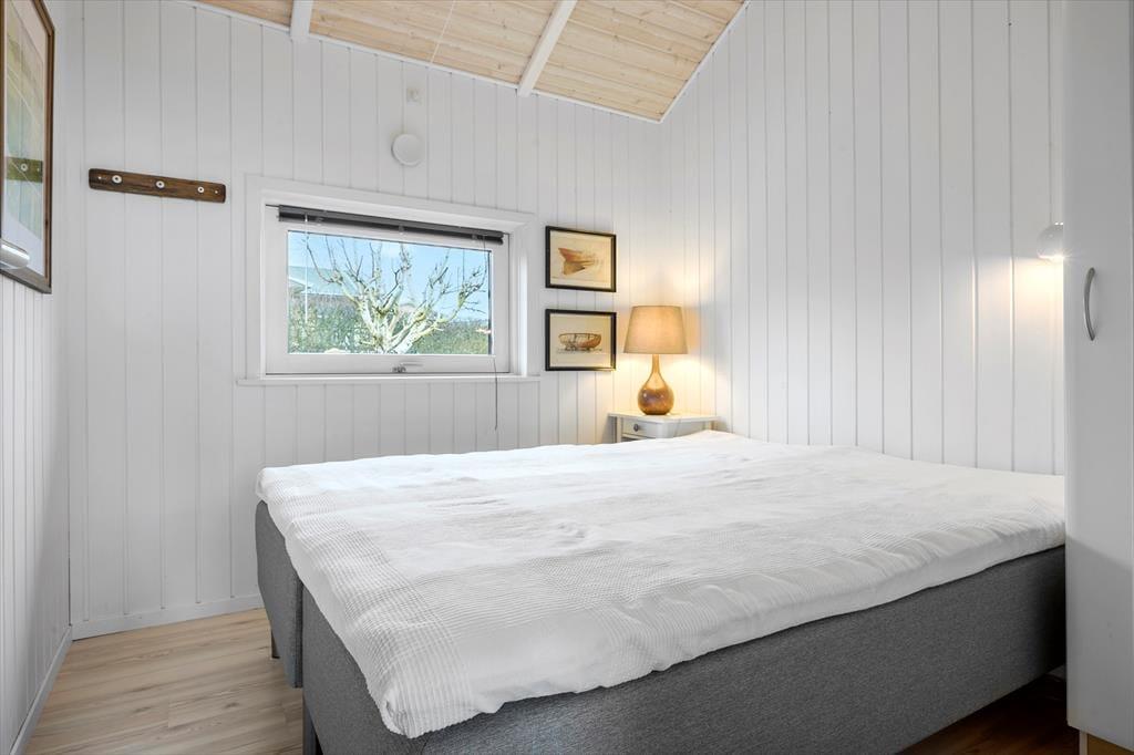 Rummeligt feriehus med havudsigt og tæt på badestrand og indkøb. Indgangsparti/bryggers, stor kombi opholds/-spisestue med brændeovn og udgang til solrig terrasse. Køkken-alrum med køleskab, fryser, microovn, opvaskemaskine, komfur m/ovn. 3 soverum, hver med 1 dobbeltseng. (2 180x200 og 1 140x200) 2 badeværelser, hver med bruseniche, håndvask/skabsarrangement, toilet. Vaskemaskine, tørretumbler samt sauna i det ene badeværelse.