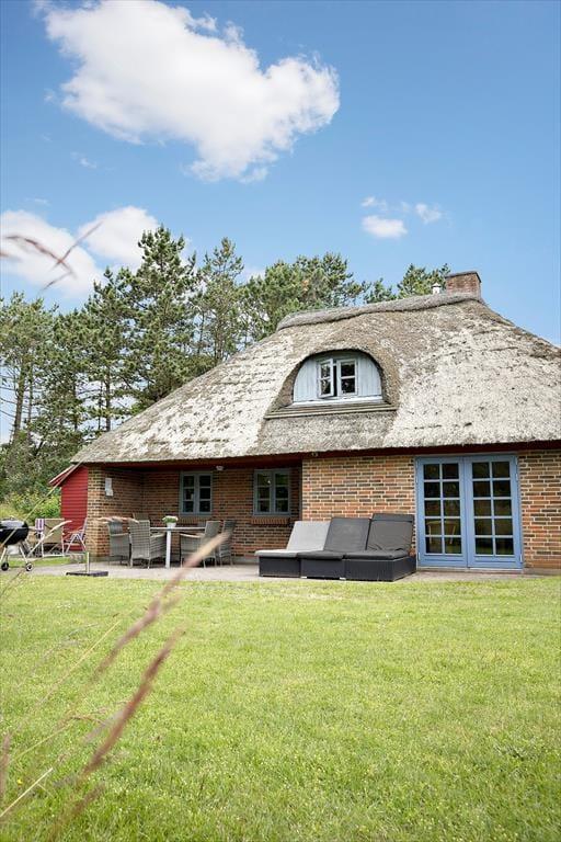 Dette charmerende stråtækte sommerhus i Vesterhede byder på en hyggelig atmosfære og plads til hele familien. Med 118 m² fordelt på to etager er der godt med plads til afslapning og hyggeligt samvær. Sommerhuset er indrettet med tre soveværelser og to badeværelser, hvoraf det ene har sauna, hvilket giver ekstra luksus og velvære.