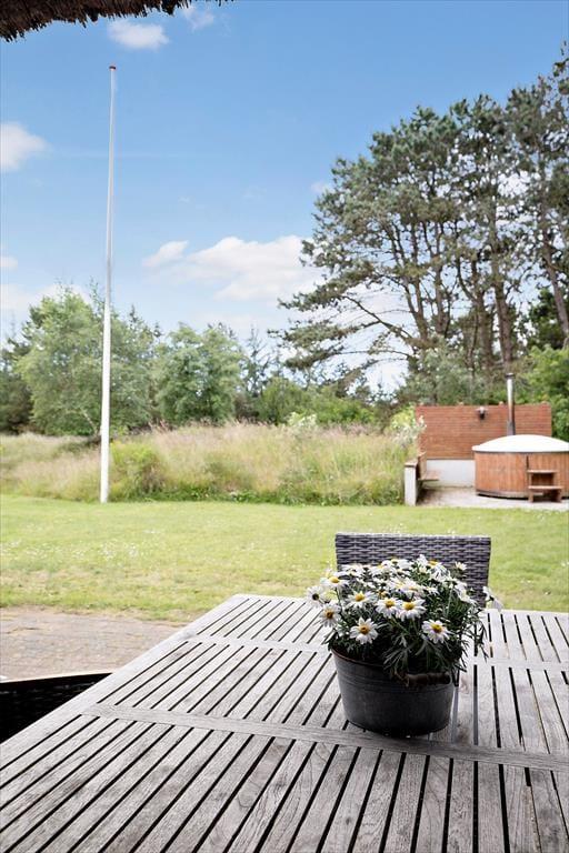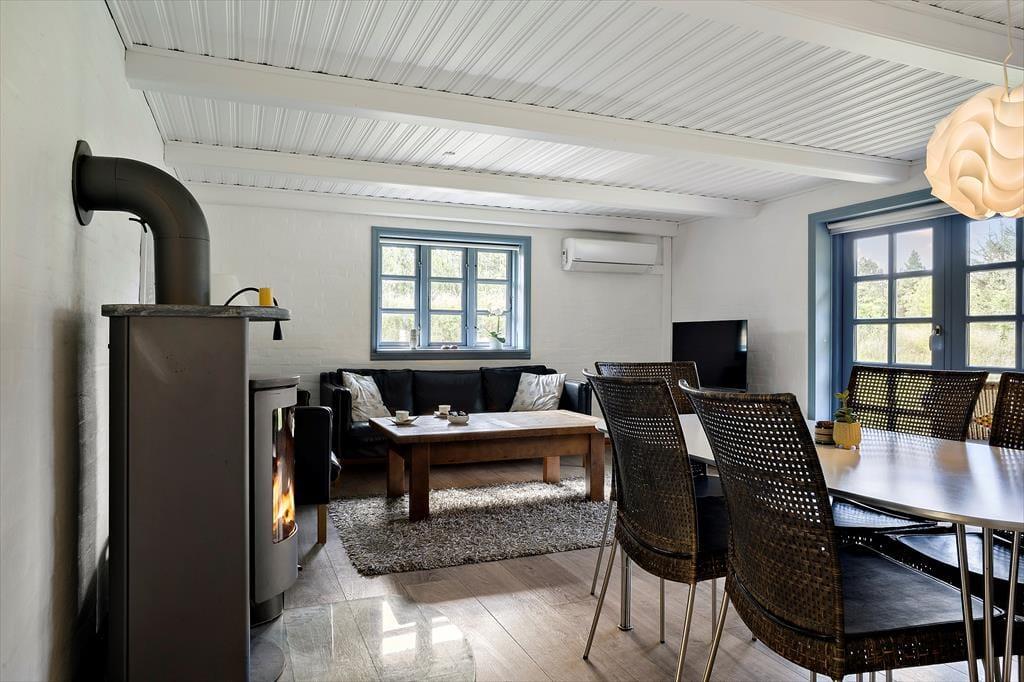 Udenfor kan du nyde den store naturgrund med trampolin, gynger og et vildmarksbad, der sikrer skøn afslapning efter en dag med udflugter. Den åbne stue/køkkenløsning inviterer til hyggelige stunder, mens brændeovnen spreder varme på køligere dage. Beliggenheden i Vesterhede er rolig og fredelig, tæt på Vesterhavet og Sønderstrand, og giver let adgang til Nationalpark Vadehavet og lokale oplevelser som østerssafari.