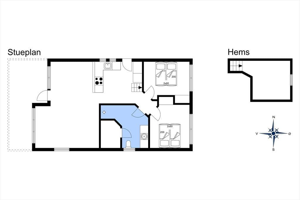 Selvom der er tale om et moderne byggeri fra 2007, er den klassiske sommerhusstil helt i top: Set udefra charmerer huset med stråtag og rød træfacade, og inden døre er der lyse trævægge og loft til kip, der bidrager til den gode rumfornemmelse. Lysindfaldet er også godt, ikke mindst i det skønne opholdsrum, hvor et stort glasparti går fra gulv til loft i den vestvendte gavl. Det betyder også, at du har frit udsyn til den flotte naturgrund, når du hygger dig i sofaafdelingen, sidder omkring spisebordet eller ligefrem kokkererer i det åbne og veludstyrede køkken. Fra opholdsrummet har du direkte adgang til husets badeværelse, der er udstyret med vaskemaskine, gulvvarme og endda en dejlig sauna. To soveværelser, der begge er indrettet med dobbeltseng, ligger side om side, mens husets hems byder på to ekstra sovepladser i form af to enkeltmadrasser.