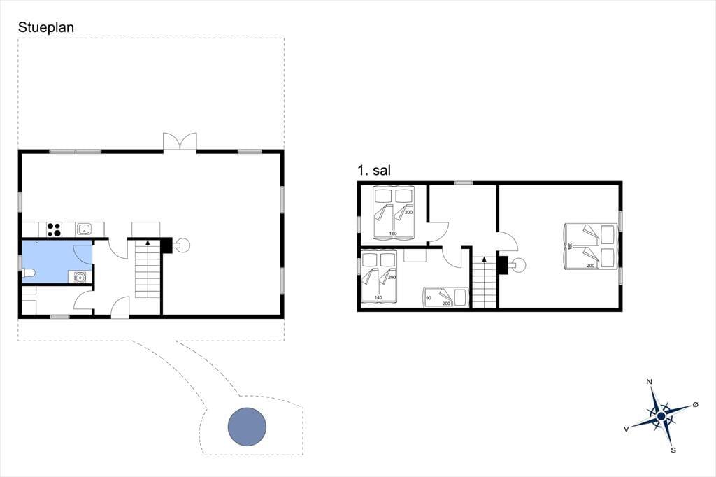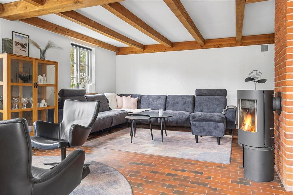 Sommerhuset fremstår solidt og indbydende med sin stilrene indretning, hvor moderne komfort går hånd i hånd med charmerende detaljer. De synlige loftsbjælker i næsten alle rum tilfører varme og atmosfære, mens de lyse farver og flotte materialer giver boligen et elegant udtryk. I stuen kan du samle familien foran den knitrende brændeovn på kølige aftener, eller du kan lade solens stråler strømme ind gennem de store vinduer, der giver en smuk kontakt til naturen udenfor. Køkkenet ligger i åben forbindelse med stuen, så madlavningen bliver en hyggelig del af samværet. På førstesalen finder du endnu en brændeovn i et af soveværelserne, så du kan nyde flammernes spil også heroppe – perfekt når du ønsker ekstra hygge, inden natten falder på.