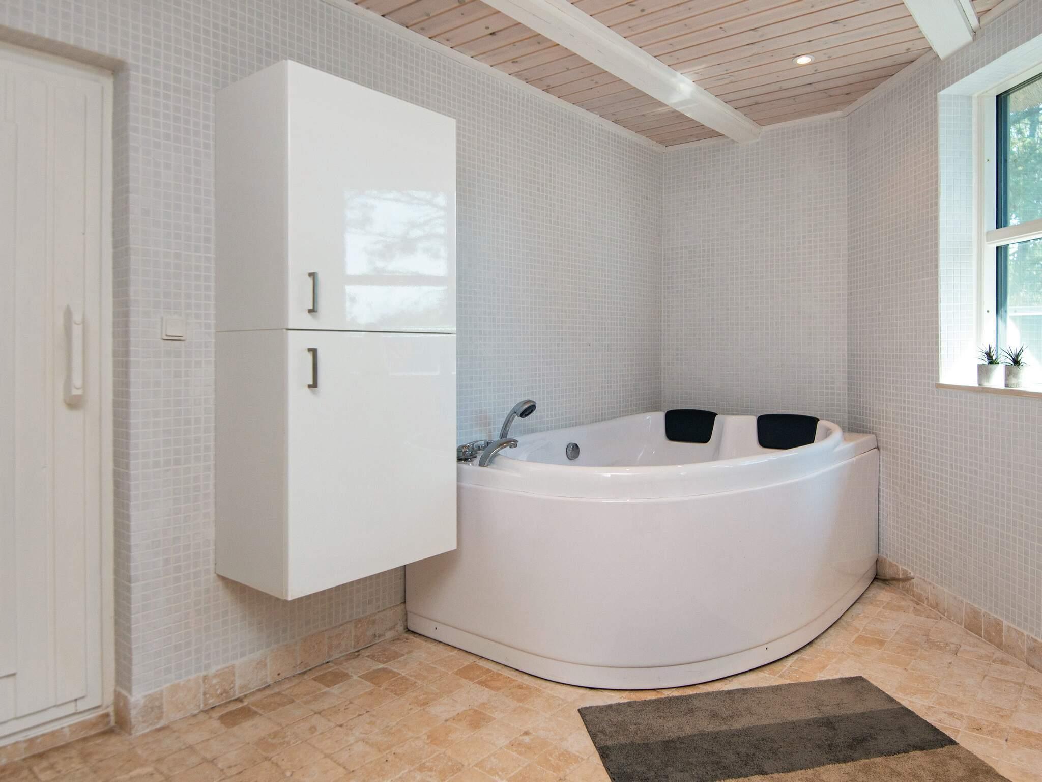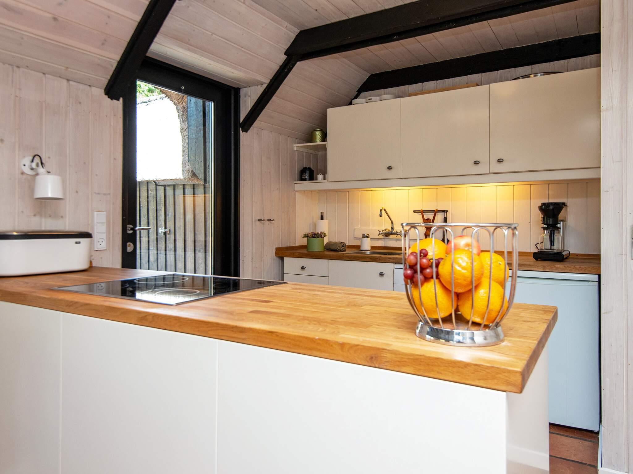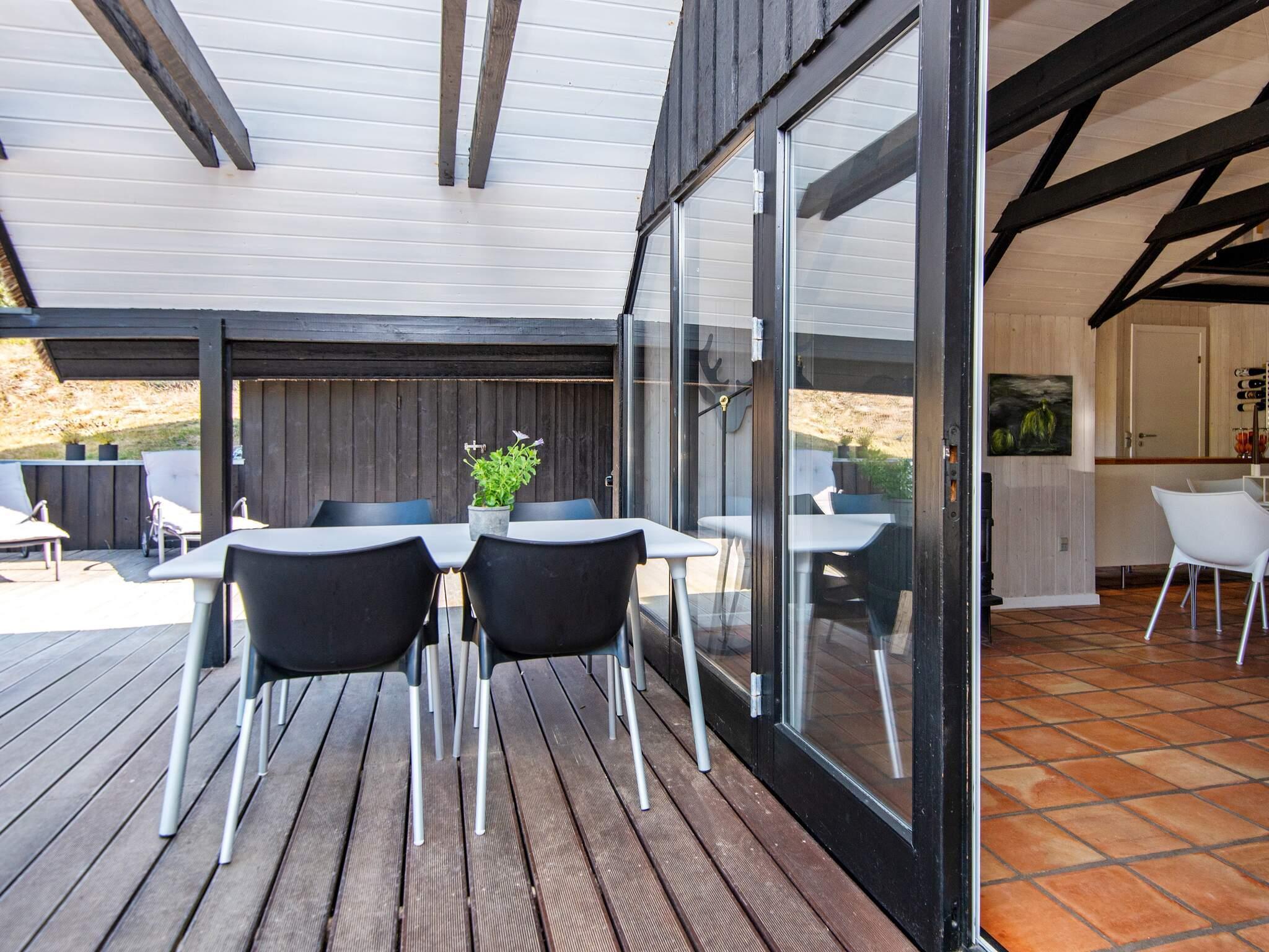 Huset er moderne indrettet med lofter til kip og stort, åbent køkken i direkte forbindelse med opholdsstuen, hvor der er brændeovn samt udgang til overdækket terrasse. Der er stort badeværelse med gulvvarme, spabad og sauna, to soveværelser med dobbeltsenge, et værelse med enkeltseng samt køjesenge og et gæstebadeværelse. Udlejes ikke til ungdomsgrupper.