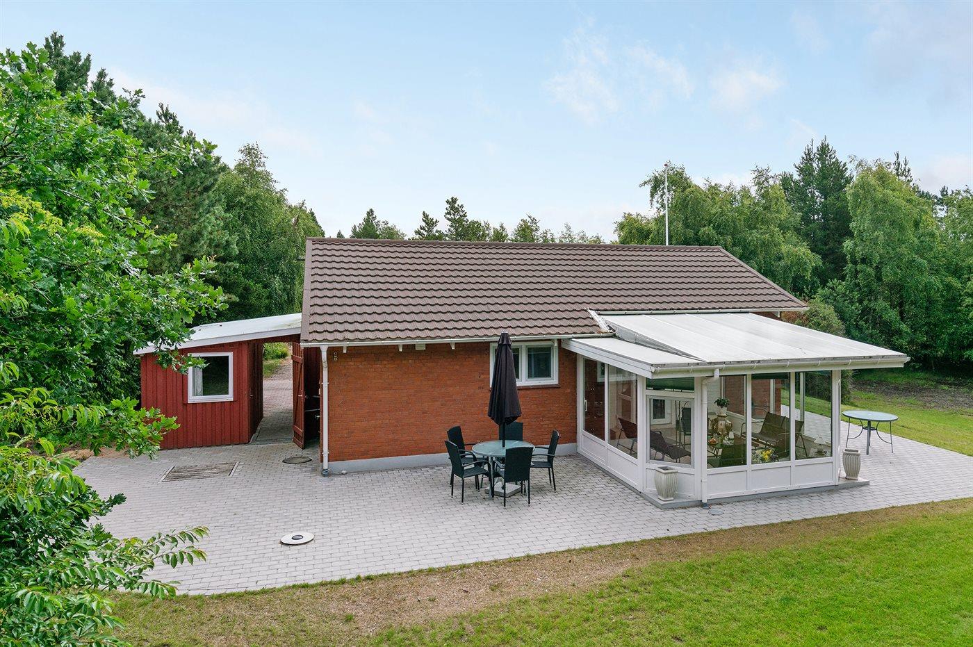 Et pænt og lyst indrettet sommerhuset beliggende på en meget stor og ugenert grund med træer og buske. Rundt om huset befinder sig små stier, hvor man kan nyde synet af den flotte lyng.