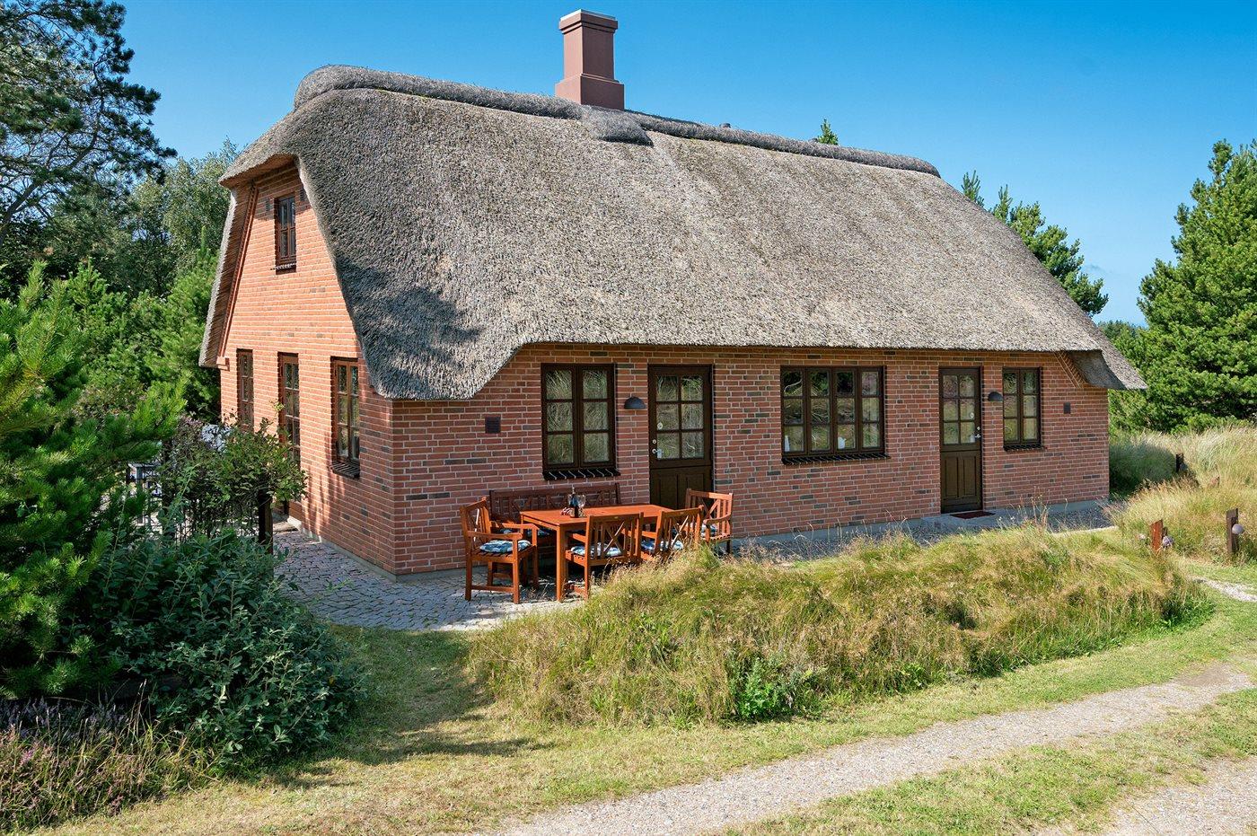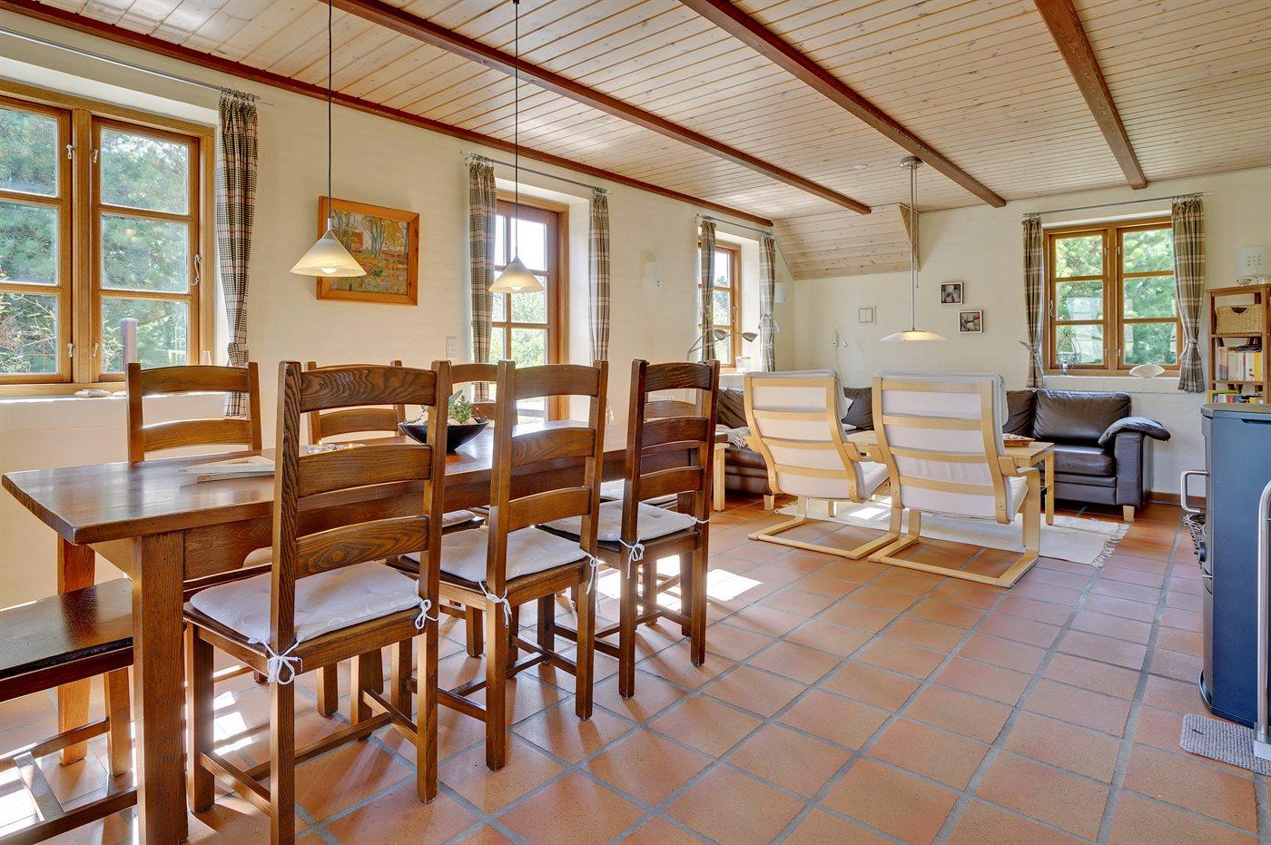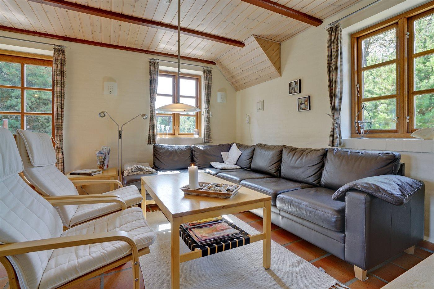 Virkelig lækkert sommerhus i sten med sauna, bygget i 2003, beliggende på en stor naturgrund i området Vesterhede, der er en del af de mindste sommerhusområder på øen. Bemærk: Reducerede varmeomkostninger, da huset opvarmes vha. jordvarme. Til huset hører 3 åbne terrasser med diverse havemøbler. Indvendigt er der klinkegulv med gulvvarme i alle rum. Væggene er malet i lyse farver, og lofterne er beklædt med lyst træ. Skønt, lyst badeværelse med bruseniche samt direkte adgang til husets sauna. Bryggers med vaskemaskine og tørretumbler. Køkkenet, som er kombineret med stuen, er udstyret med bl.a. fryser, mikrobølgeovn og opvaskemaskine. Den dejlige opholdsstue er udstyret med bl.a. brændeovn, TV med parabolantenne, DVD-afspiller samt stereoanlæg med CD-afspiller. Desuden gratis, trådløs internetforbindelse til rådighed (computer skal medbringes). Sovepladserne er fordelt på 2 værelser; 1 med dobbeltseng og 1 med køjeseng. Til de små feriegæster er der barneseng, høj barnestol, sandkasse og gynge til rådighed. Hobbyrum med bordtennis.
